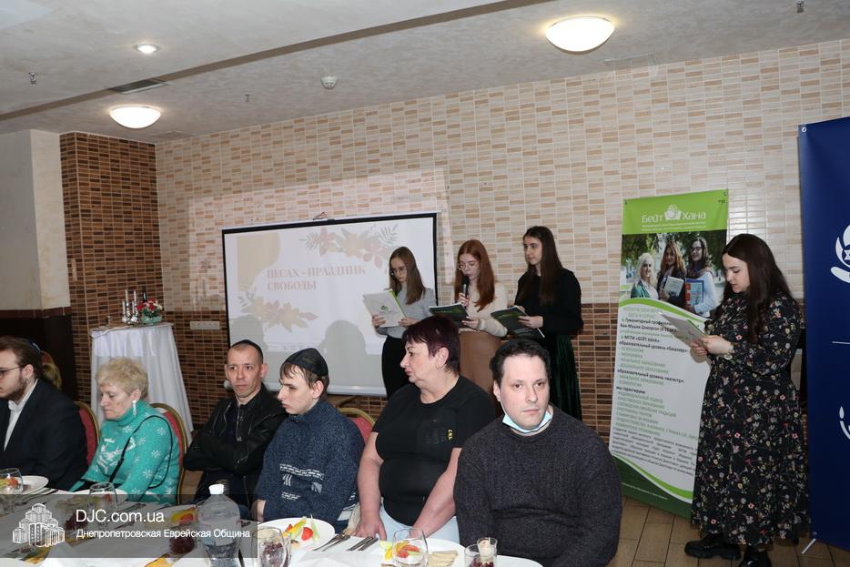 В Еврейской общине Днепра прошел интеграционный модельный седер для людей с особыми потребностями и ограниченными возможностями в помещении «Menorah Cafe», который был организован Благотворительным фондом «Хесед Менахем» совместно с Международным гуманитарно-педагогическим институтом «Бейт Хана» с участием представителей Образовательного Ресурсного Центра «Маале» и проекта Еврейской общины Днепра «Тнуат а-Нефеш».