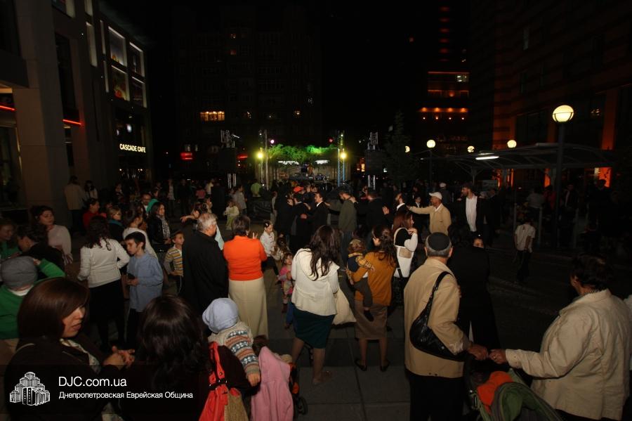 Шломо Низин исполнил как хасидские песни, так и традиционные еврейские композиции, такие как «7:40» и, разумеется, днепропетровские евреи поддержали исполнителя веселыми танцами – ведь Суккот не зря называют «временем нашей радости».