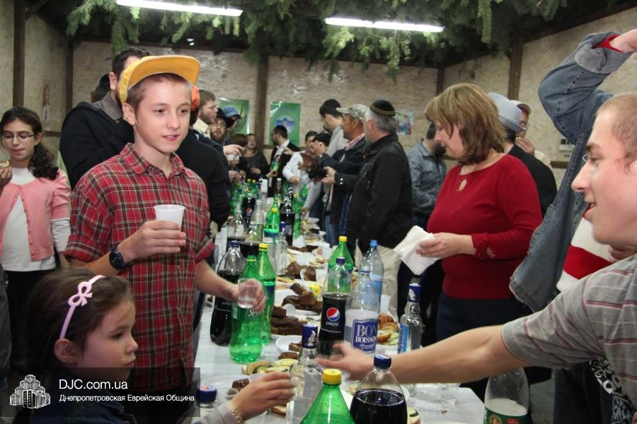 Ну, а в сукке тем временем был накрыт праздничный фуршет, куда были приглашены, все от мала до велика, и много раз здесь звучал «лехаим», и поднимали бокалы за нашу общину, за еврейский народ, за то, чтобы поскорее пришел праведный Мошиах и чтобы Вс-вышний благословил всех, кто подарил этот чудесный праздник всему городу, кто заботится о еврейском возрождении и развитии общины.