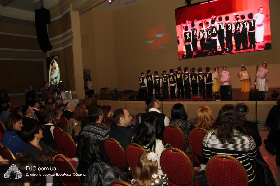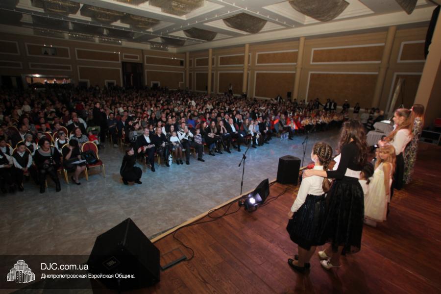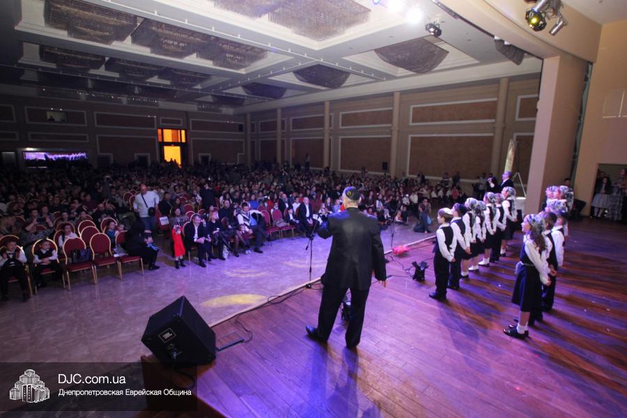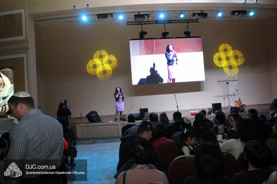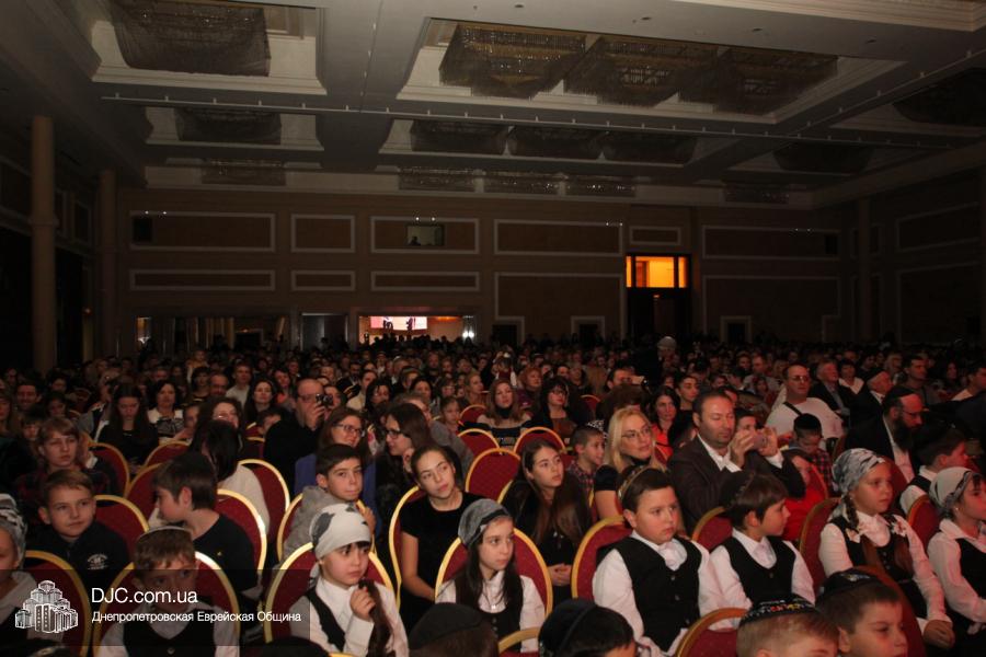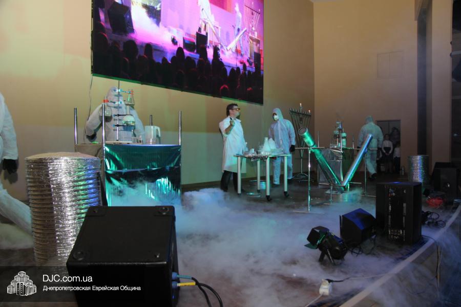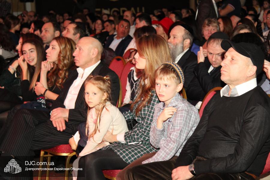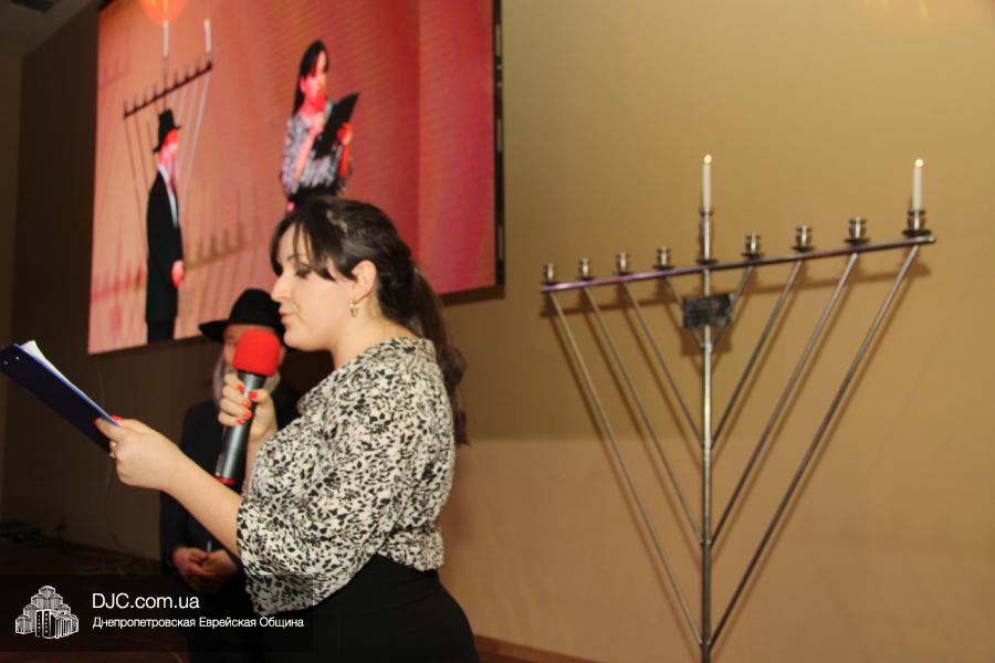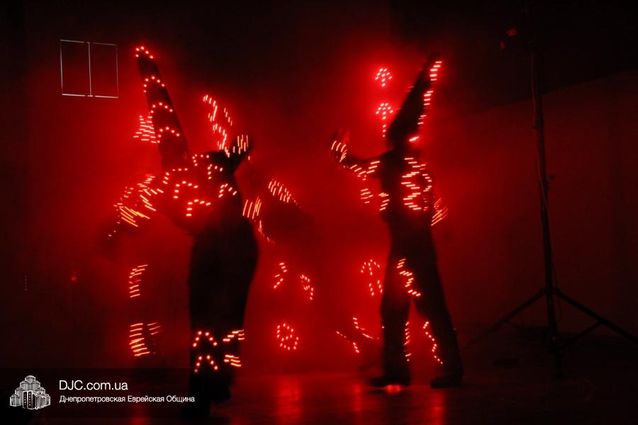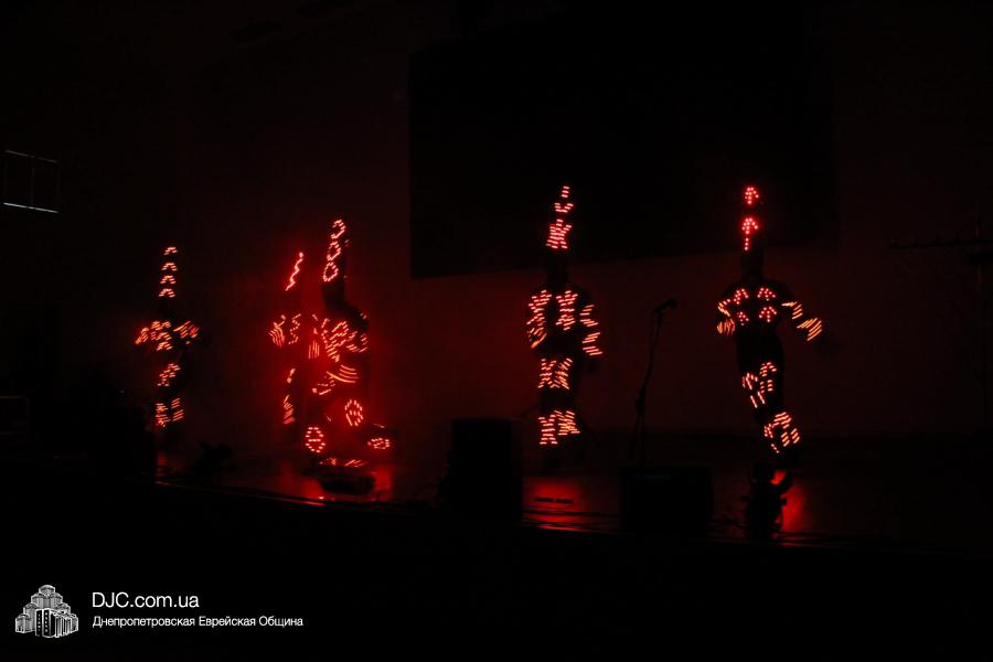 Но на самом деле, это был всего лишь пролог. В главном зале общины стулья были расставлены в концертном варианте – 1200 посадочных мест, и когда прозвучали фанфары, все затаили дыхание, ибо со сцены повалил дым, и началось «шоу неоновых человечков». После того как «танец огней» закончился, на сцену вышли ведущие – четыре тройки – ученики еврейской школы и воспитанники «Бейт Циндлихта», которые очень точно воспроизвели весьма сложный сценарий всего праздника, но началом, конечно же, было зажжение первой Ханукальной свечи, которое провел Главный раввин Днепропетровска и региона Шмуэль Каминецкий, и выступления официальных гостей: Вячеслава Смоткина, второго секретаря Посольства государства Израиль в Украине, директора Израильского Культурного Центра в Днепропетровске; Йонатана Лейфера, председателя правления «Джойнт» в юго-восточной Украине; Натали Набитовски, главы представительства днепропетровского филиала «Сохнут-Украина».