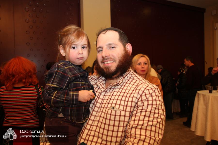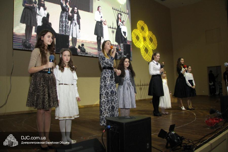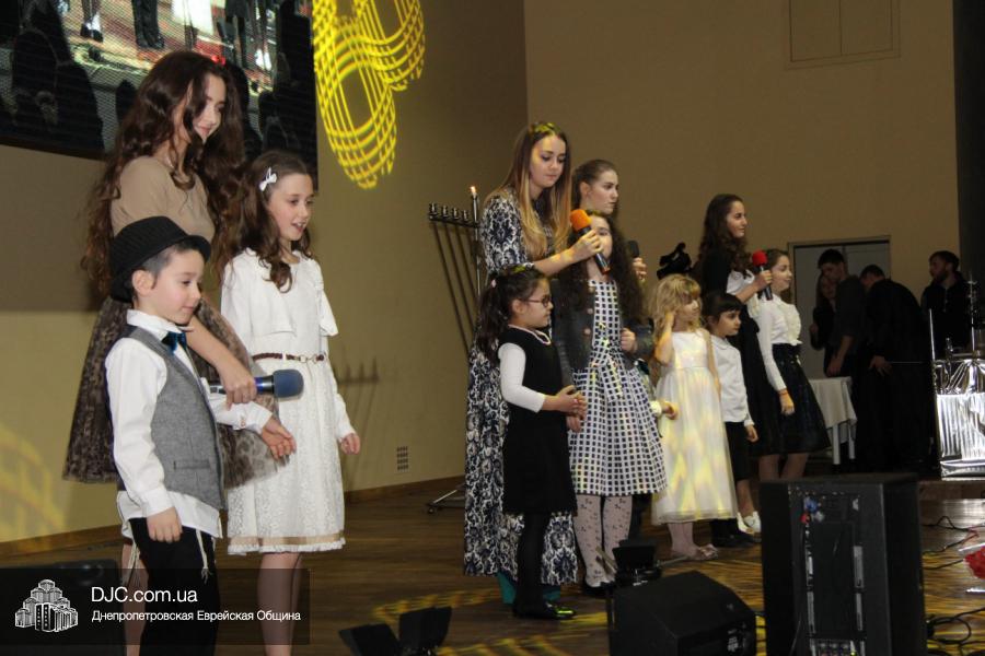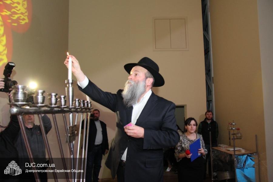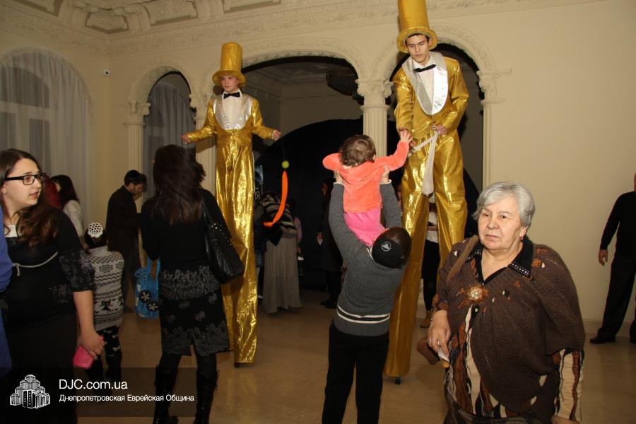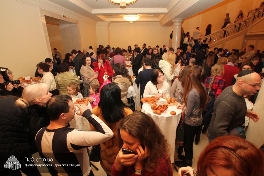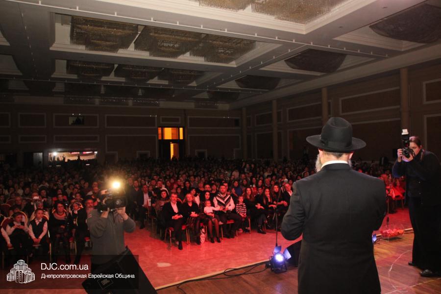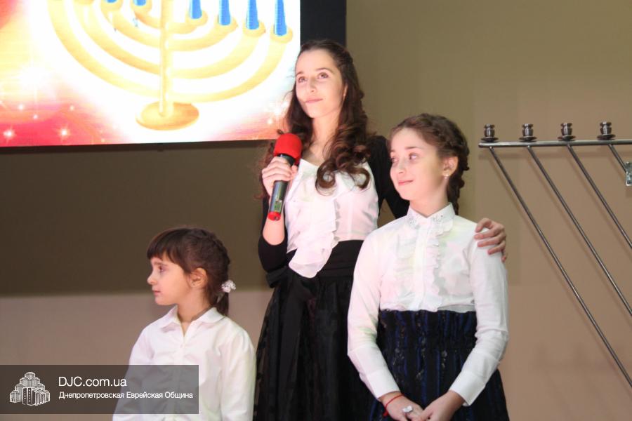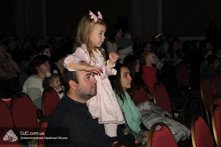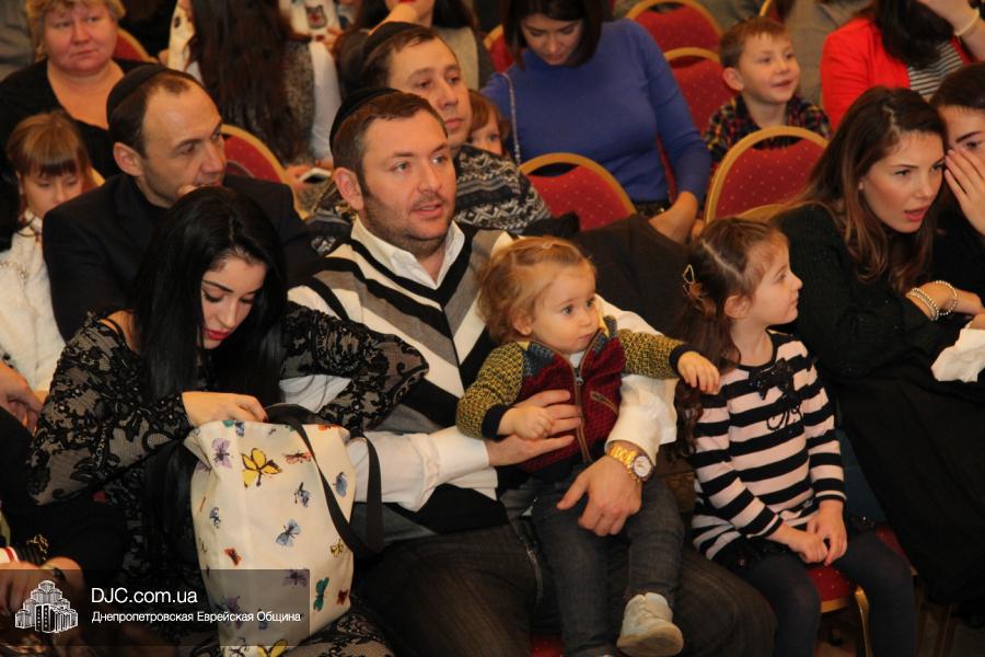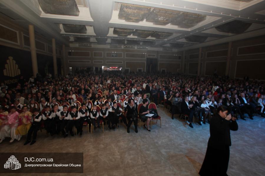 Но на самом деле, это был всего лишь пролог. В главном зале общины стулья были расставлены в концертном варианте – 1200 посадочных мест, и когда прозвучали фанфары, все затаили дыхание, ибо со сцены повалил дым, и началось «шоу неоновых человечков». После того как «танец огней» закончился, на сцену вышли ведущие – четыре тройки – ученики еврейской школы и воспитанники «Бейт Циндлихта», которые очень точно воспроизвели весьма сложный сценарий всего праздника, но началом, конечно же, было зажжение первой Ханукальной свечи, которое провел Главный раввин Днепропетровска и региона Шмуэль Каминецкий, и выступления официальных гостей: Вячеслава Смоткина, второго секретаря Посольства государства Израиль в Украине, директора Израильского Культурного Центра в Днепропетровске; Йонатана Лейфера, председателя правления «Джойнт» в юго-восточной Украине; Натали Набитовски, главы представительства днепропетровского филиала «Сохнут-Украина».