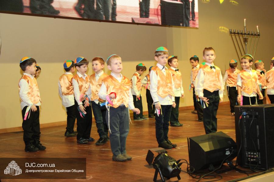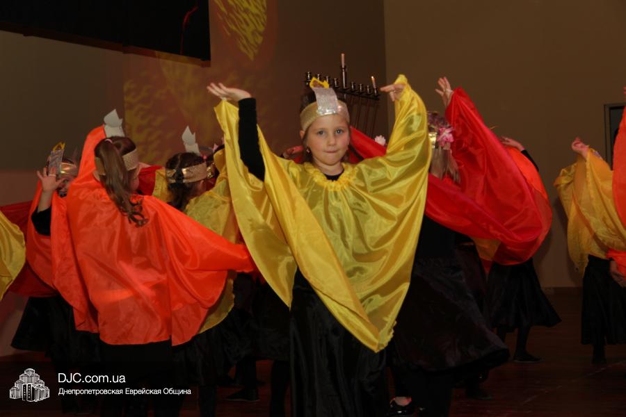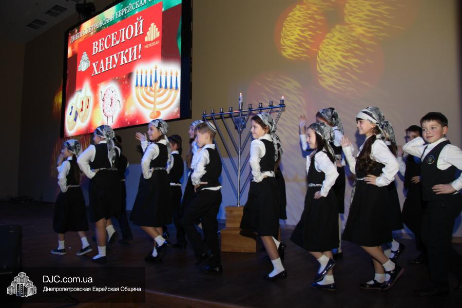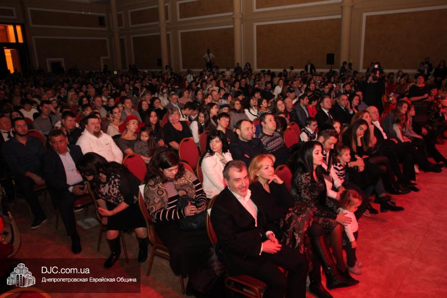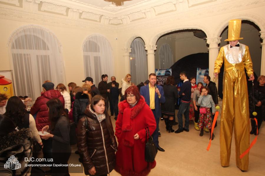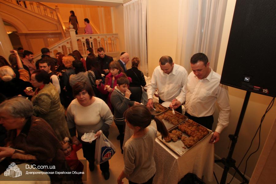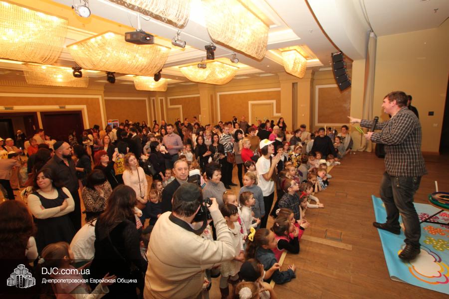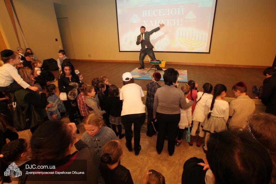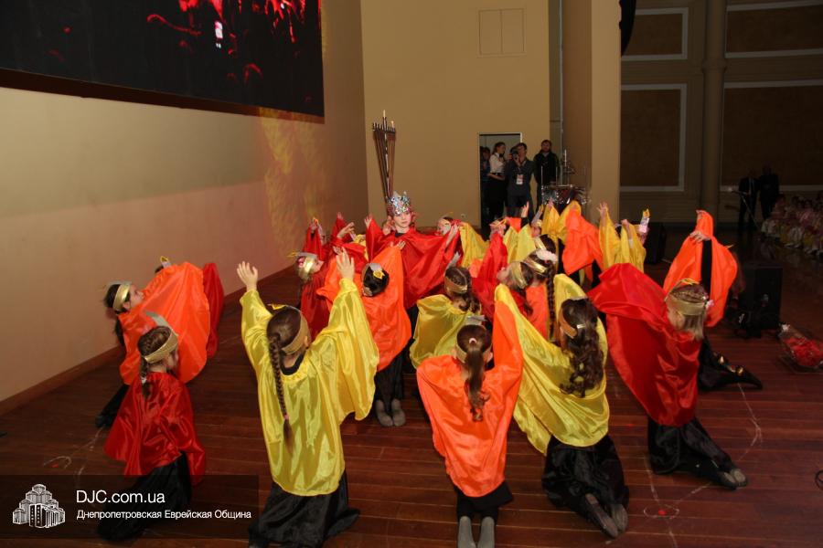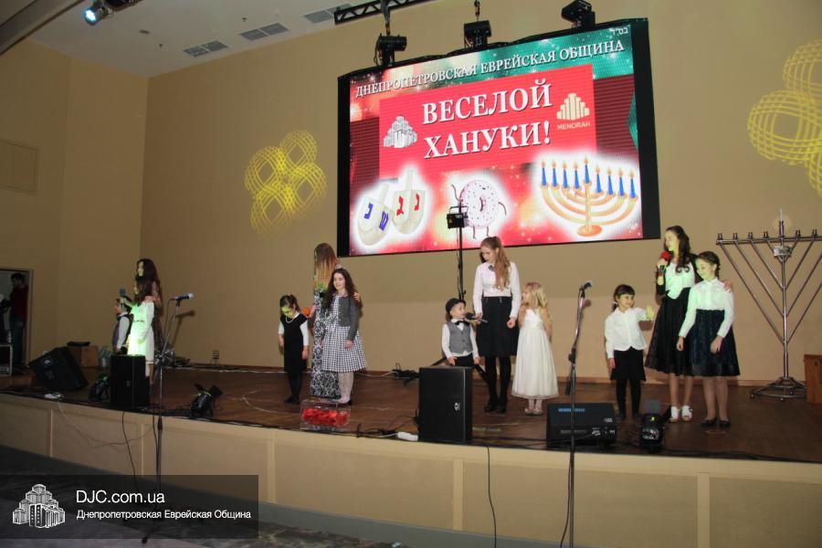 Но на самом деле, это был всего лишь пролог. В главном зале общины стулья были расставлены в концертном варианте – 1200 посадочных мест, и когда прозвучали фанфары, все затаили дыхание, ибо со сцены повалил дым, и началось «шоу неоновых человечков». После того как «танец огней» закончился, на сцену вышли ведущие – четыре тройки – ученики еврейской школы и воспитанники «Бейт Циндлихта», которые очень точно воспроизвели весьма сложный сценарий всего праздника, но началом, конечно же, было зажжение первой Ханукальной свечи, которое провел Главный раввин Днепропетровска и региона Шмуэль Каминецкий, и выступления официальных гостей: Вячеслава Смоткина, второго секретаря Посольства государства Израиль в Украине, директора Израильского Культурного Центра в Днепропетровске; Йонатана Лейфера, председателя правления «Джойнт» в юго-восточной Украине; Натали Набитовски, главы представительства днепропетровского филиала «Сохнут-Украина».