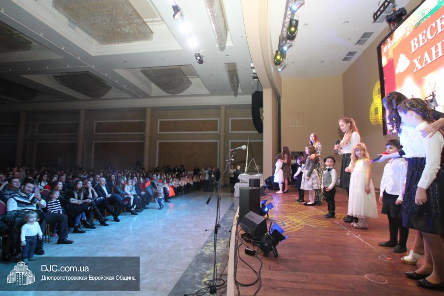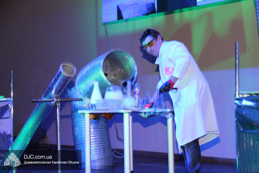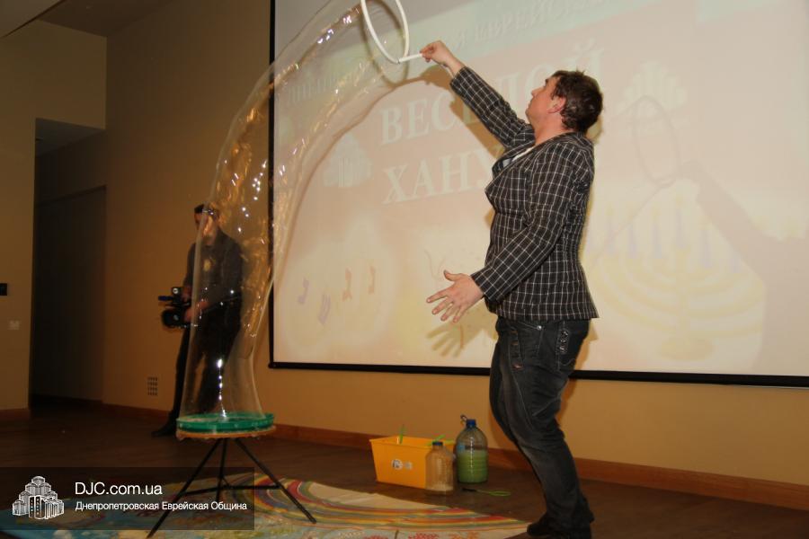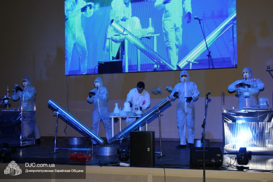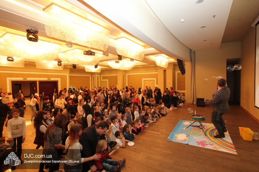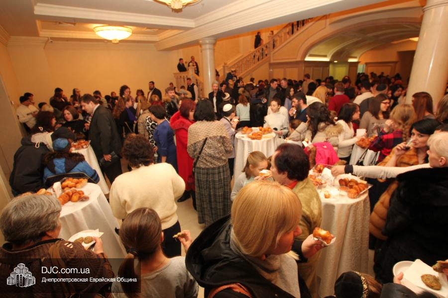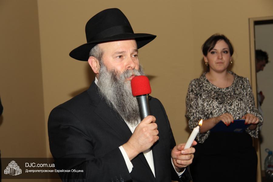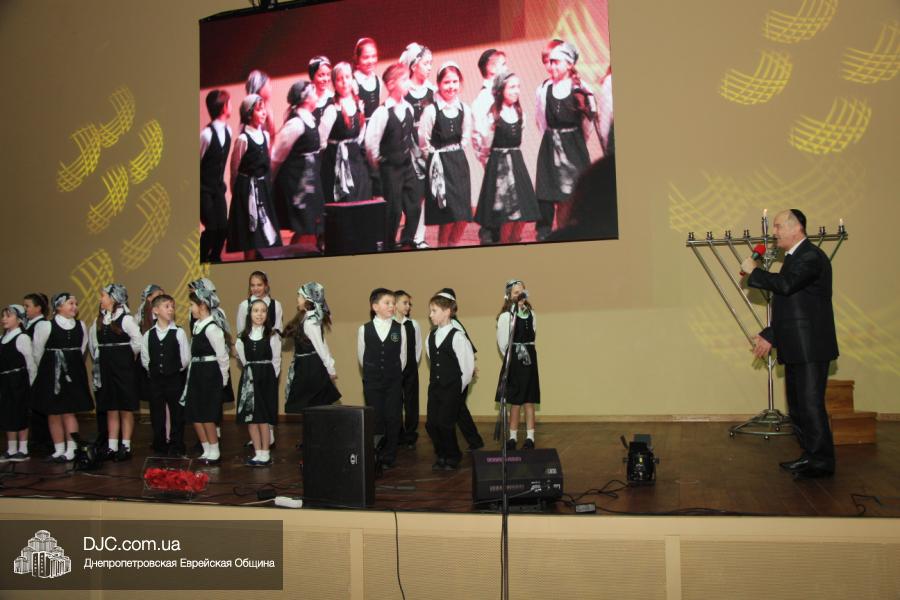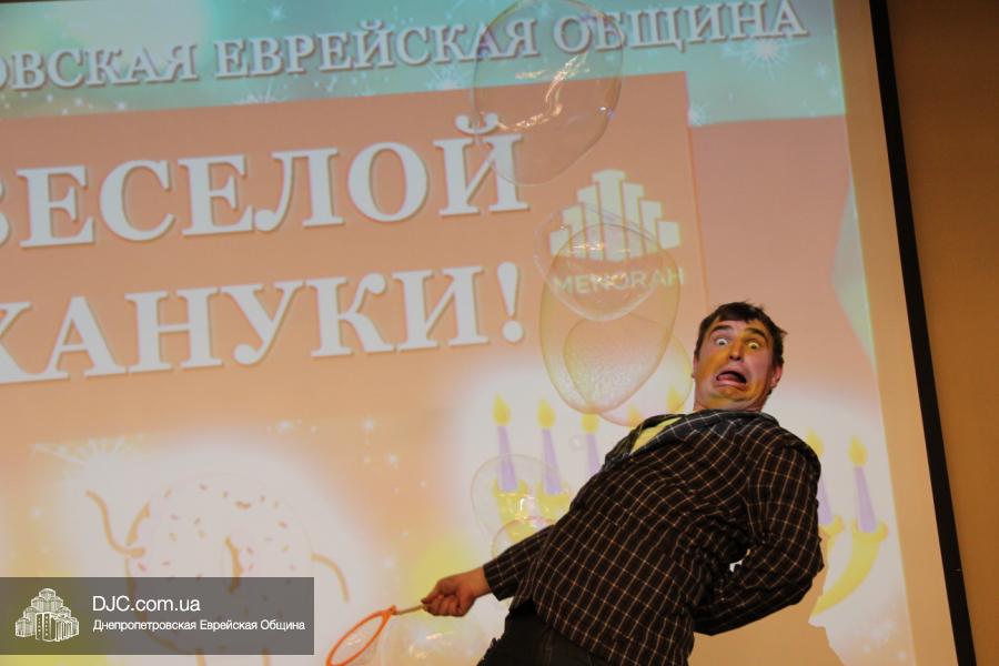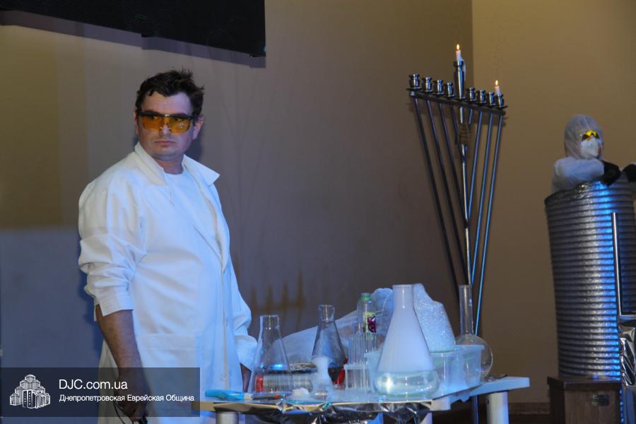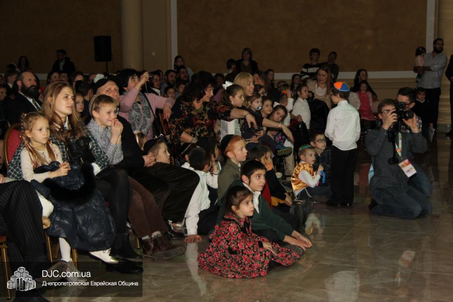 Но на самом деле, это был всего лишь пролог. В главном зале общины стулья были расставлены в концертном варианте – 1200 посадочных мест, и когда прозвучали фанфары, все затаили дыхание, ибо со сцены повалил дым, и началось «шоу неоновых человечков». После того как «танец огней» закончился, на сцену вышли ведущие – четыре тройки – ученики еврейской школы и воспитанники «Бейт Циндлихта», которые очень точно воспроизвели весьма сложный сценарий всего праздника, но началом, конечно же, было зажжение первой Ханукальной свечи, которое провел Главный раввин Днепропетровска и региона Шмуэль Каминецкий, и выступления официальных гостей: Вячеслава Смоткина, второго секретаря Посольства государства Израиль в Украине, директора Израильского Культурного Центра в Днепропетровске; Йонатана Лейфера, председателя правления «Джойнт» в юго-восточной Украине; Натали Набитовски, главы представительства днепропетровского филиала «Сохнут-Украина».