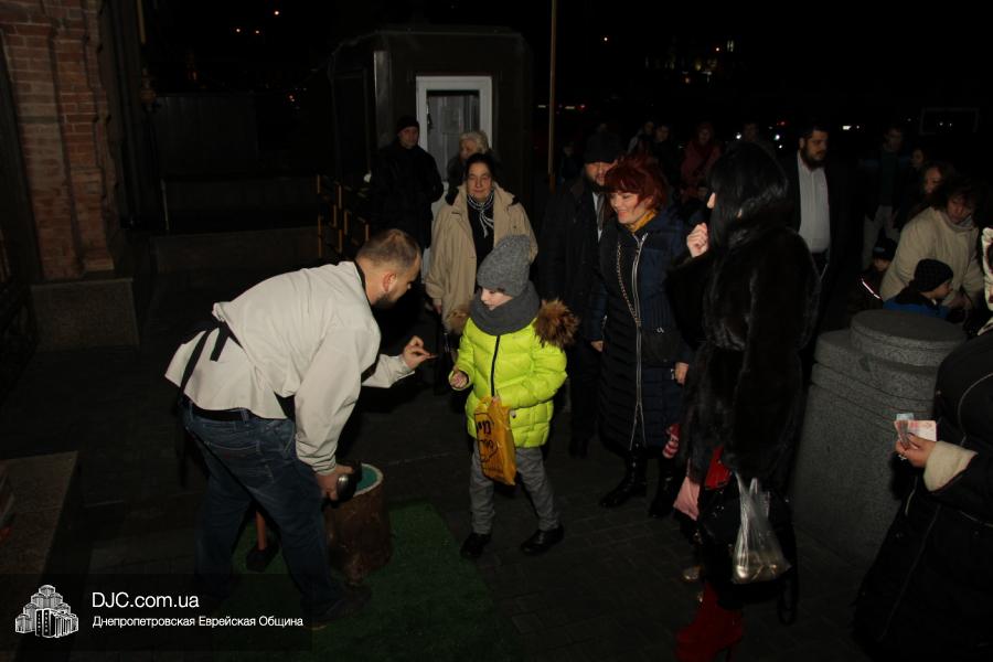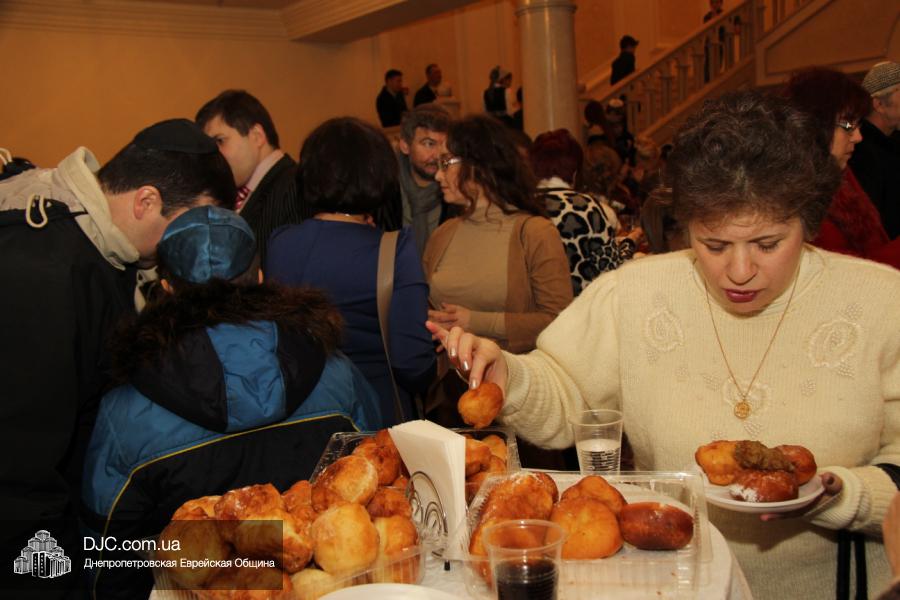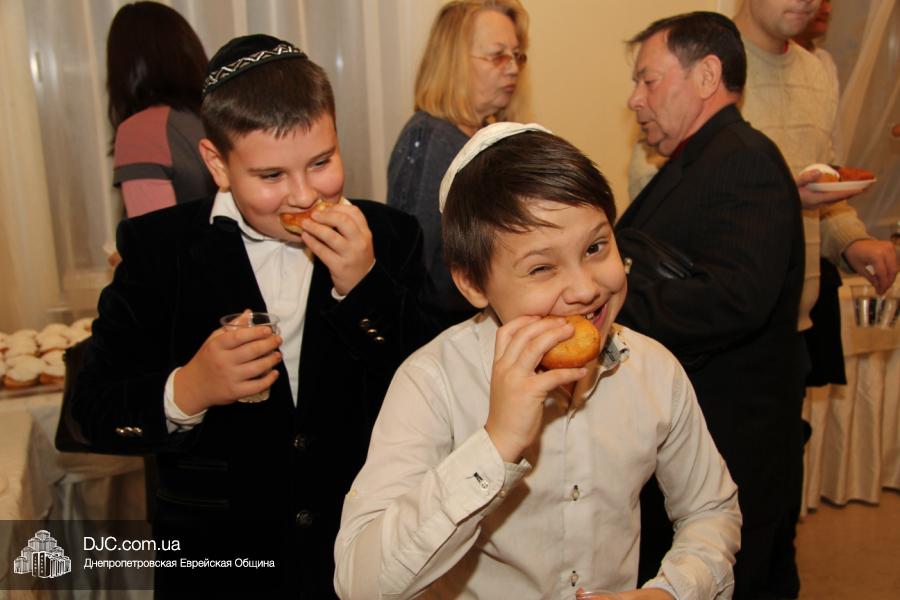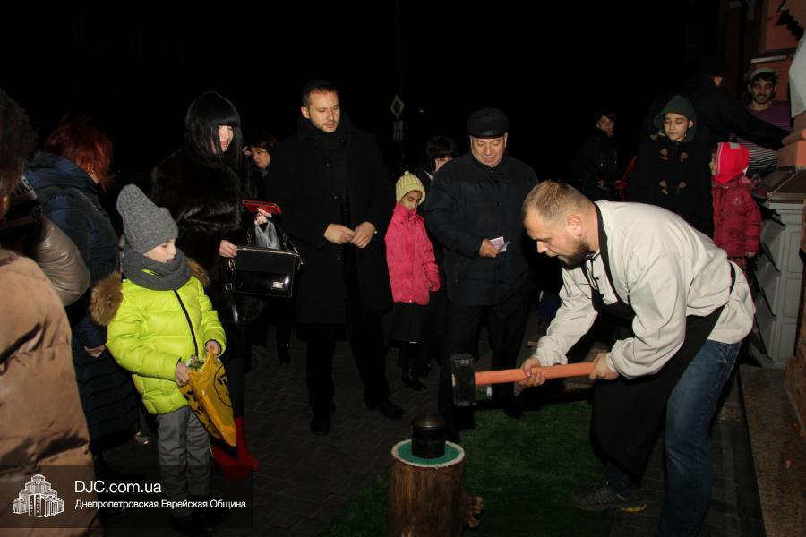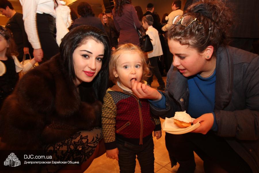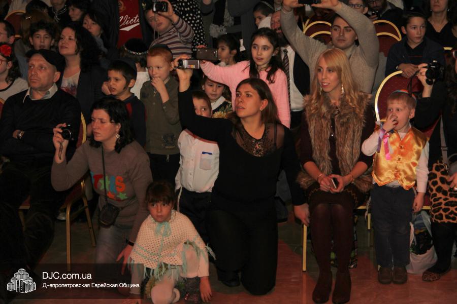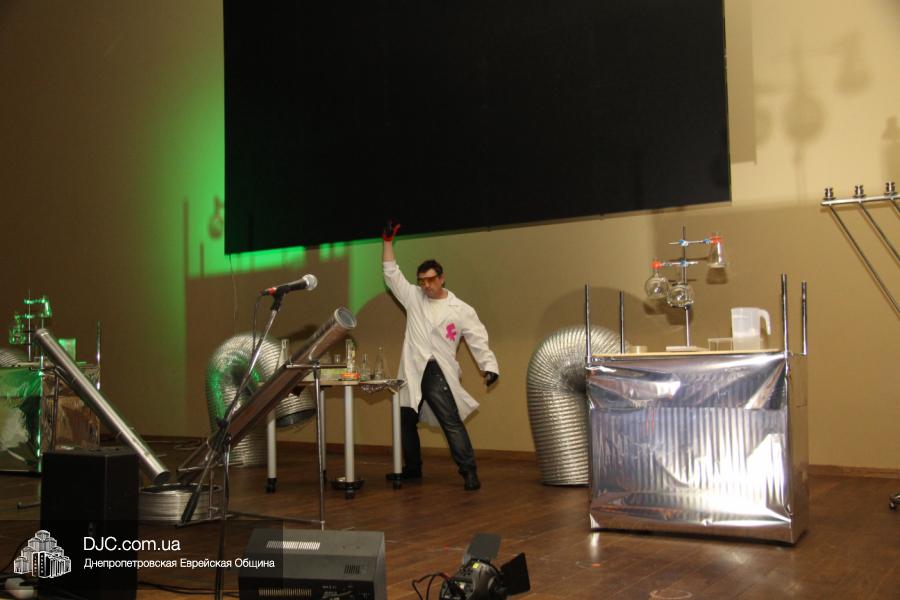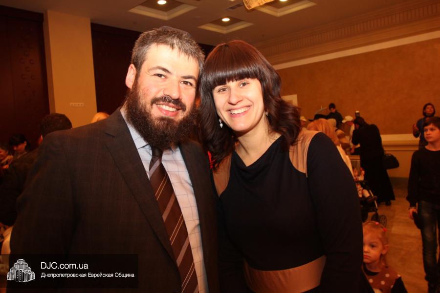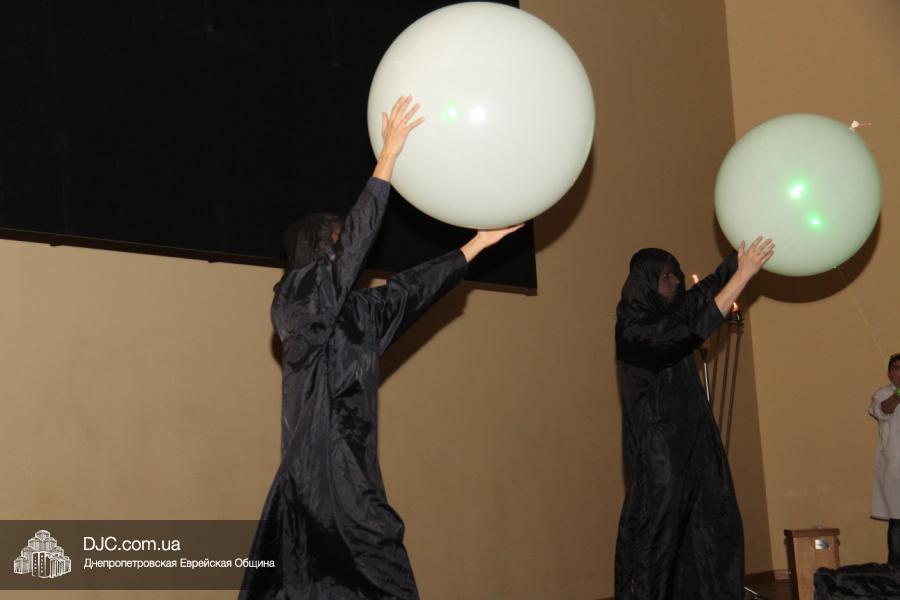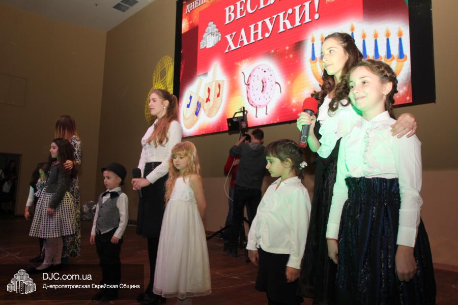 Но на самом деле, это был всего лишь пролог. В главном зале общины стулья были расставлены в концертном варианте – 1200 посадочных мест, и когда прозвучали фанфары, все затаили дыхание, ибо со сцены повалил дым, и началось «шоу неоновых человечков». После того как «танец огней» закончился, на сцену вышли ведущие – четыре тройки – ученики еврейской школы и воспитанники «Бейт Циндлихта», которые очень точно воспроизвели весьма сложный сценарий всего праздника, но началом, конечно же, было зажжение первой Ханукальной свечи, которое провел Главный раввин Днепропетровска и региона Шмуэль Каминецкий, и выступления официальных гостей: Вячеслава Смоткина, второго секретаря Посольства государства Израиль в Украине, директора Израильского Культурного Центра в Днепропетровске; Йонатана Лейфера, председателя правления «Джойнт» в юго-восточной Украине; Натали Набитовски, главы представительства днепропетровского филиала «Сохнут-Украина».