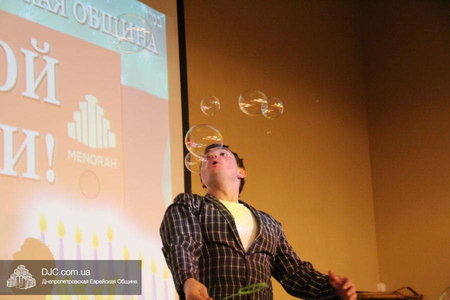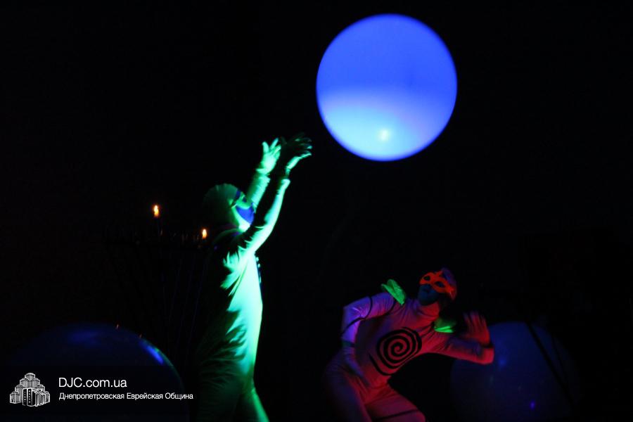 Впрочем, были и профессиональные номера – «химическое шоу сумасшедшего профессора» и танец с шарами – тоже волшебный и неоновый. Концерт всем понравился – детям чудесные выступления настоящих волшебников, а родителям – выступления их детей, которые они увлеченно снимали на телефоны, планшеты и другие устройства. Так что, получилась настоящая, семейная, общинная Ханука, которая поставила весьма высокую планку для всех остальных общинных мероприятий и доставила всем присутствующим много удовольствия.