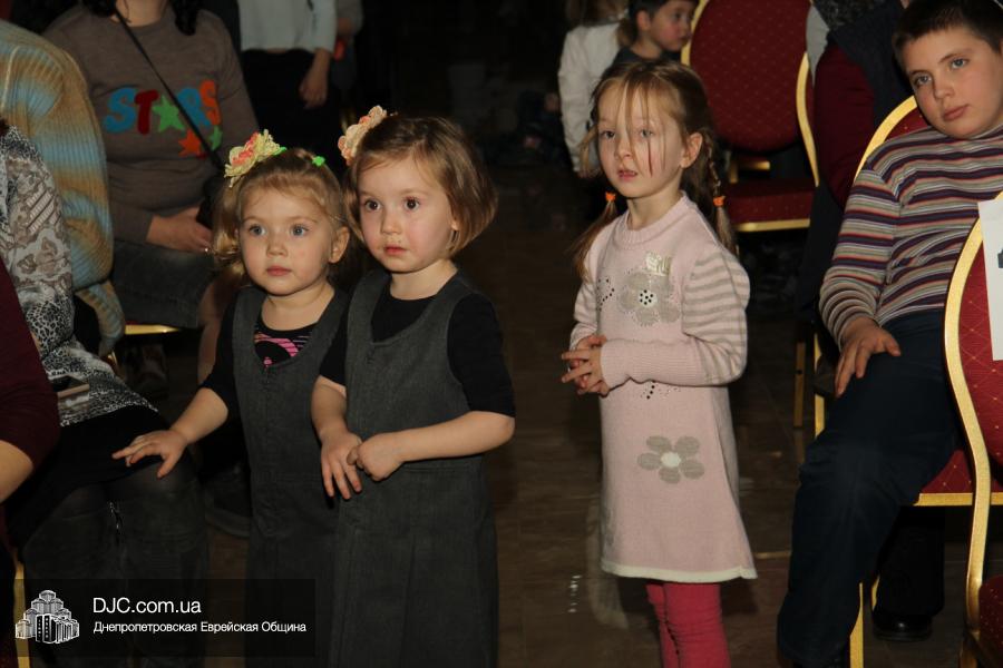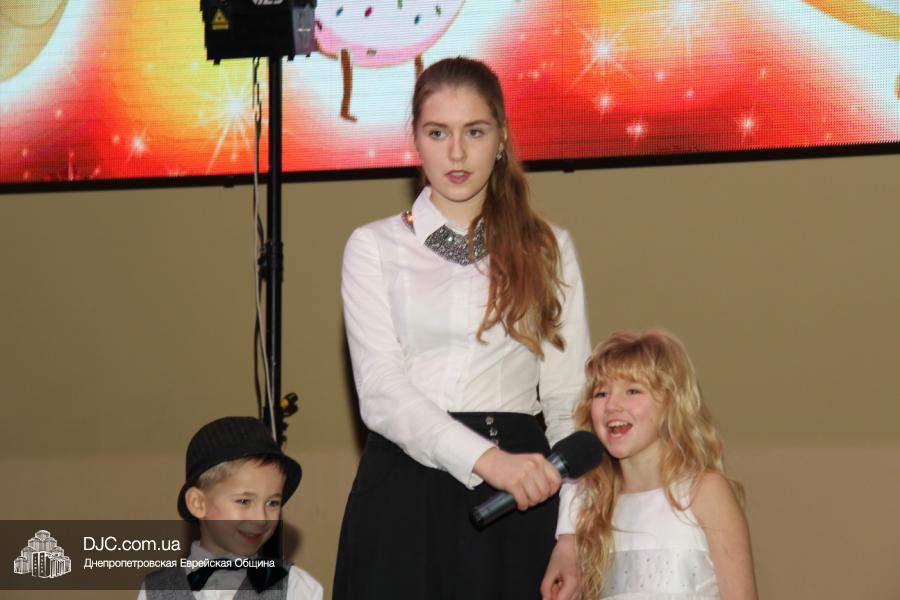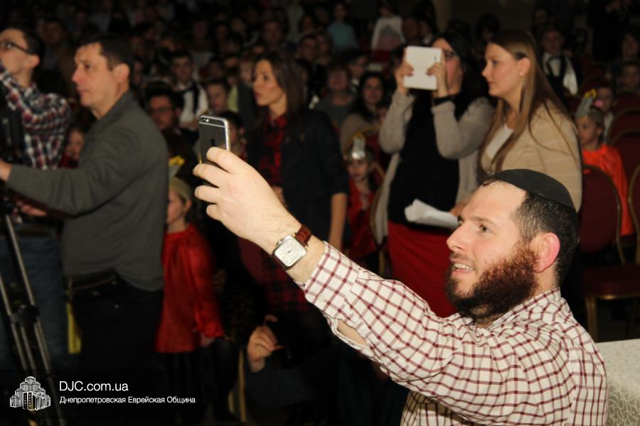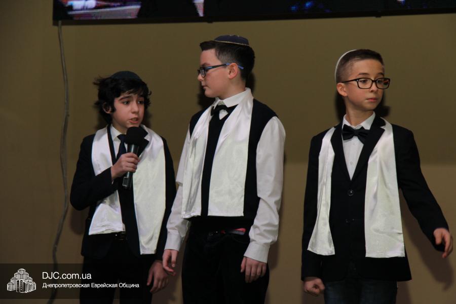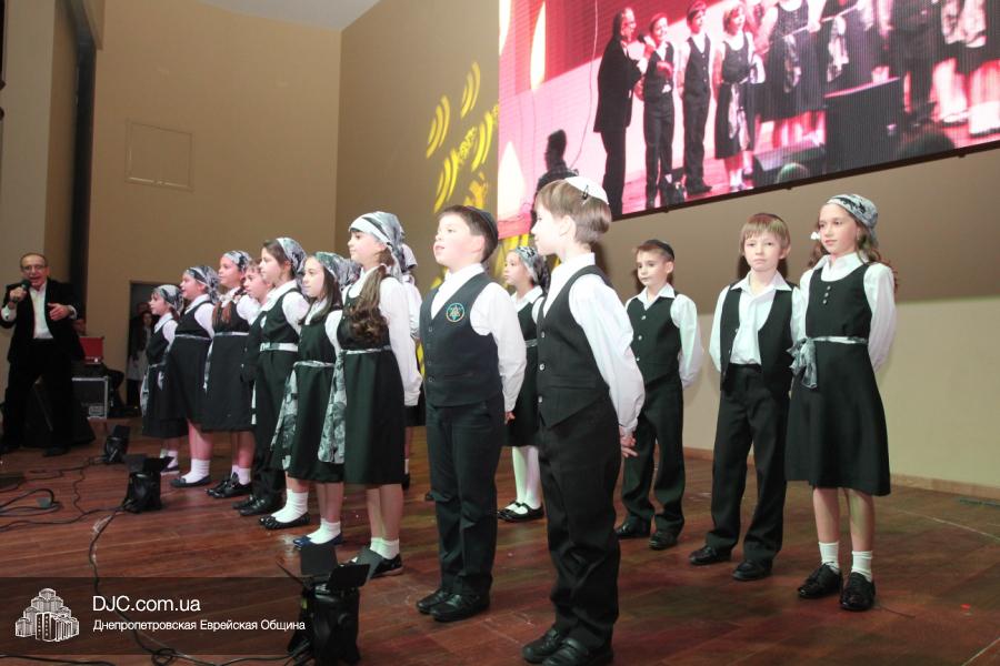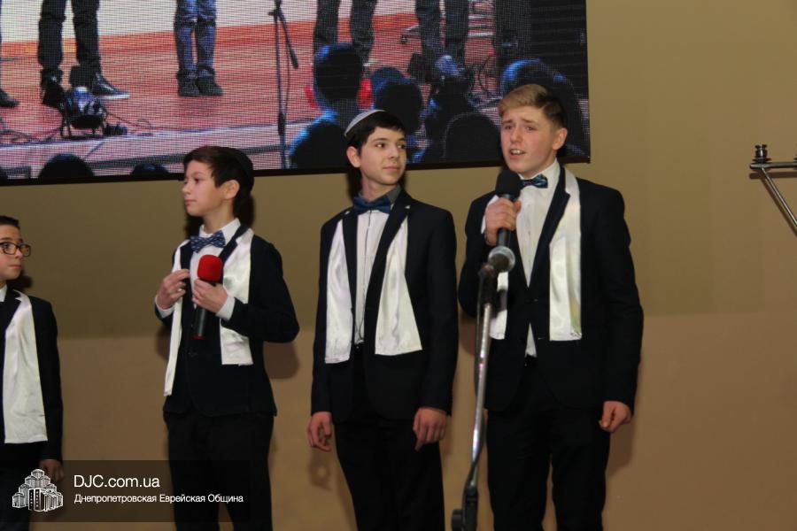 Основу концертной части составляли видеономера, снятые в еврейской школе и в «Бейт Циндлихте», а также выступления коллективов этих учебных заведений – танцевали савивончики, девочки представили танец принцесс, и, как всегда неподражаемо, выступил «Голдене Киндерлах», под руководством Яна Рогового и Михаэля Лившица.