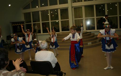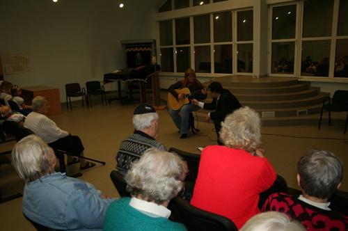 Алексей Давидсон и его воспитанники порадовали жильцов «Бейт Баруха» яркими, зажигательными хореографическими номерами, причем особенно понравился пожилым людям «Танец маленьких козачков», ну а, кроме того, были и вокальные номера – прекрасно выступила юная вокалистка Жанна Перец, исполнив несколько песен в различных образах, от «украинской Марички» до «морячки Сони». Зал долго аплодировал ей, а затем жильцы Дома для пожилых людей «Бейт Барух» с удовольствием подпевали всем известным бардовским песням, которые исполнила Яна Дыхан.