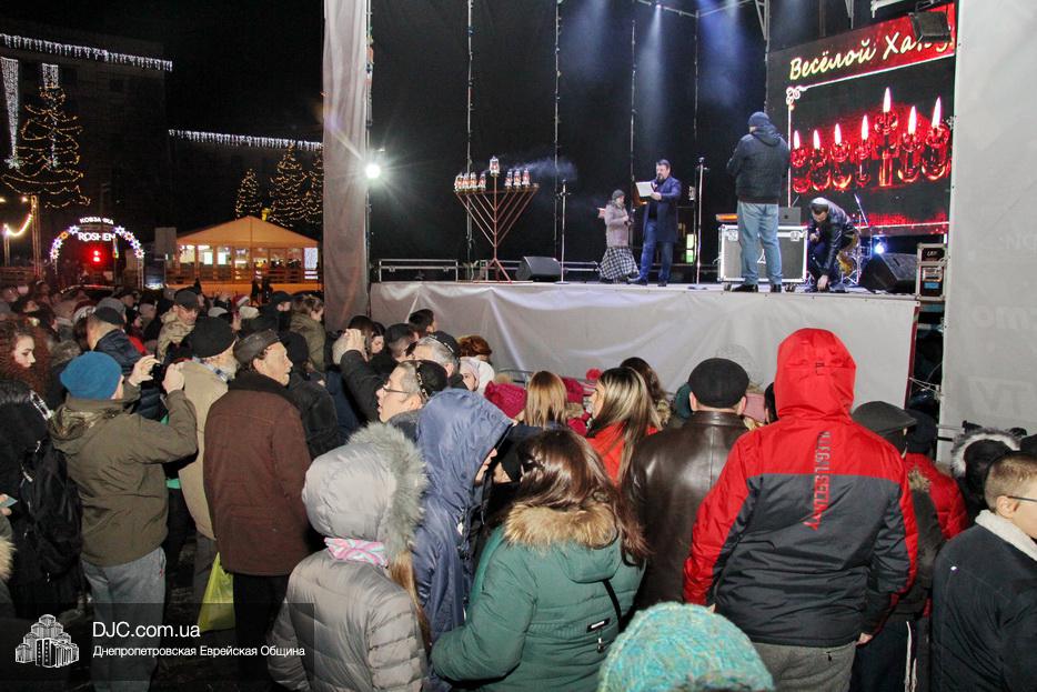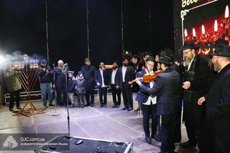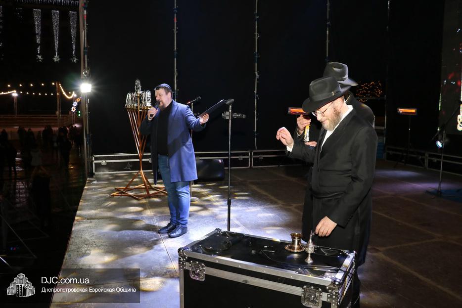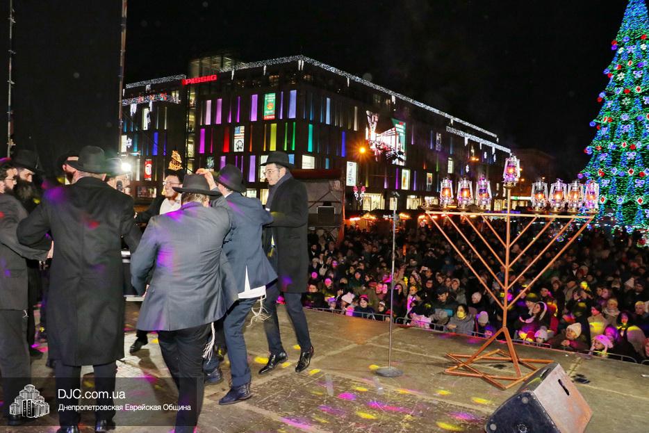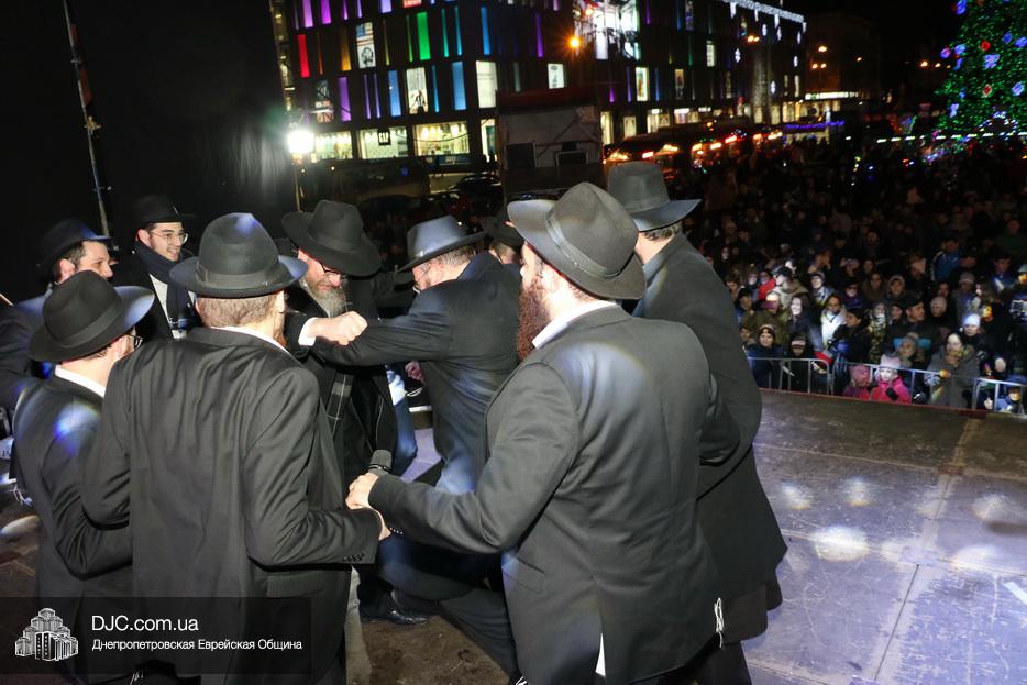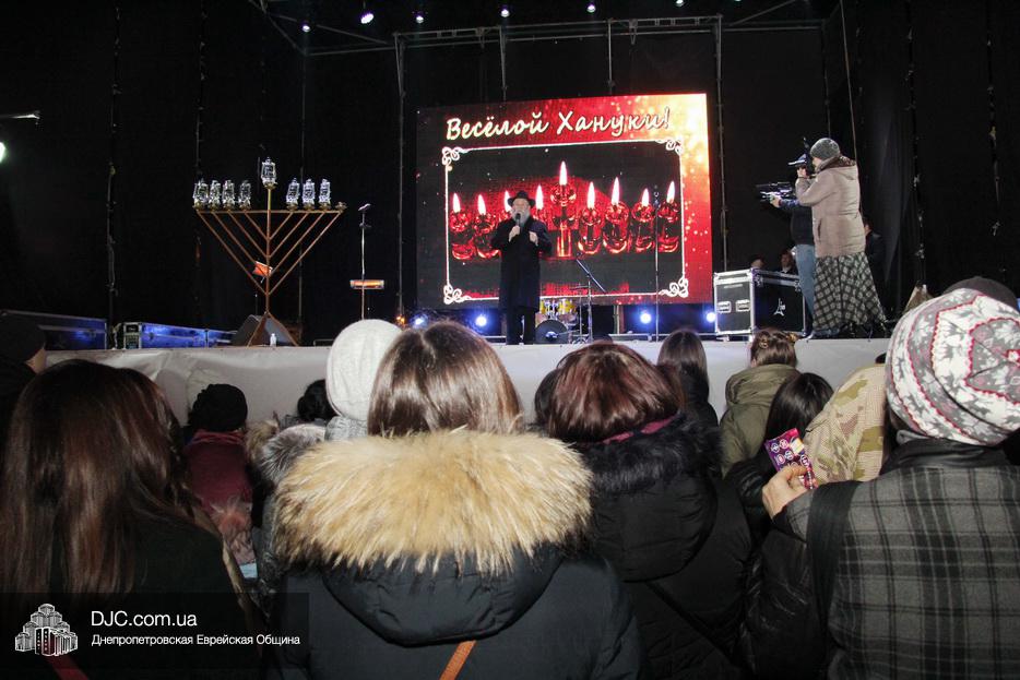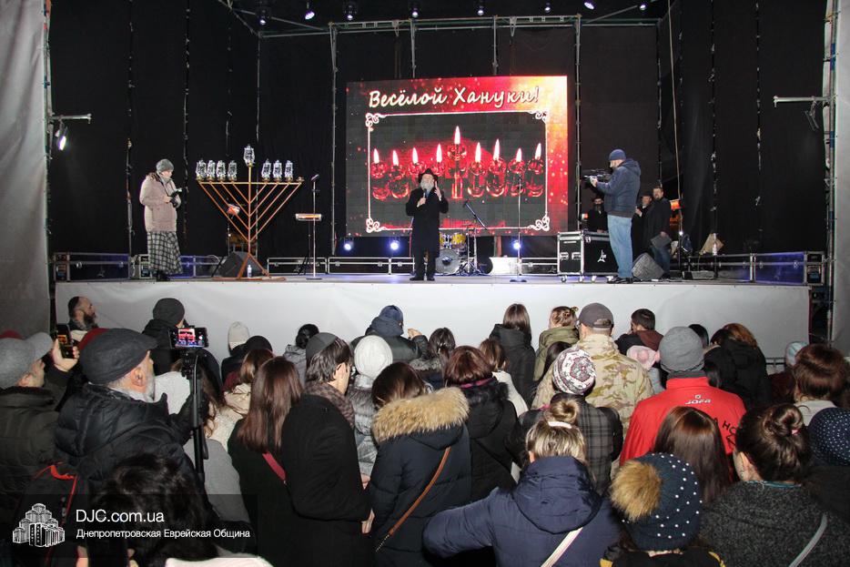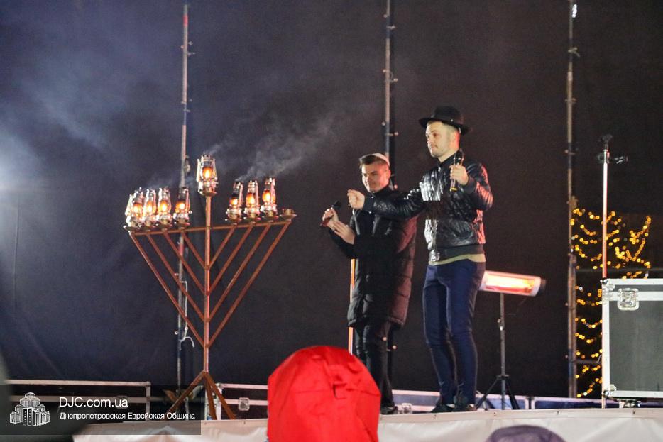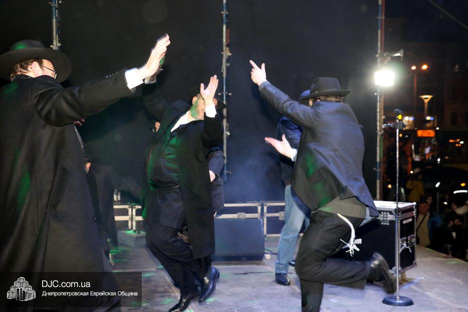 После зажжения ханукий состоялось выступление молодых посланников Ребе из Нью-Йорка, приехавших в Днепр для участия в ханукальных мероприятиях. Они исполнили ханукальный гимн «Анерот Алалу» и хасидский танец. Со сцены также прозвучали поздравления еврейской общине от местных властей и руководителей Всеукраинских еврейских организаций.
