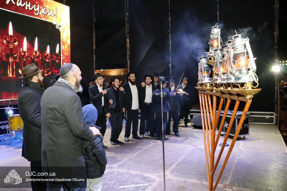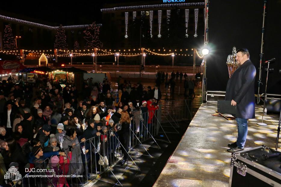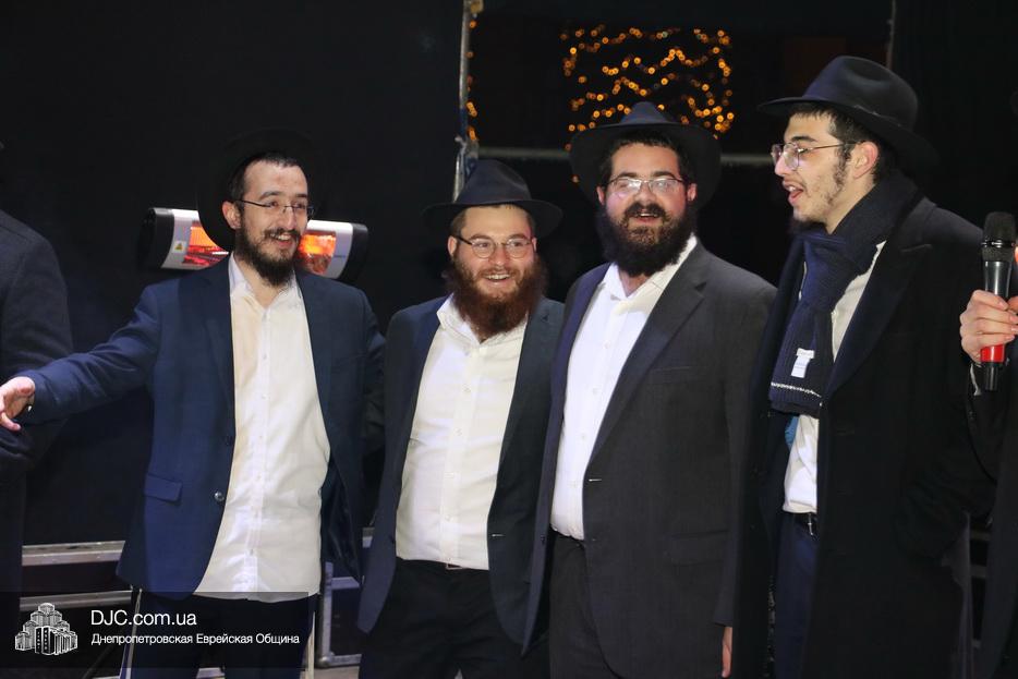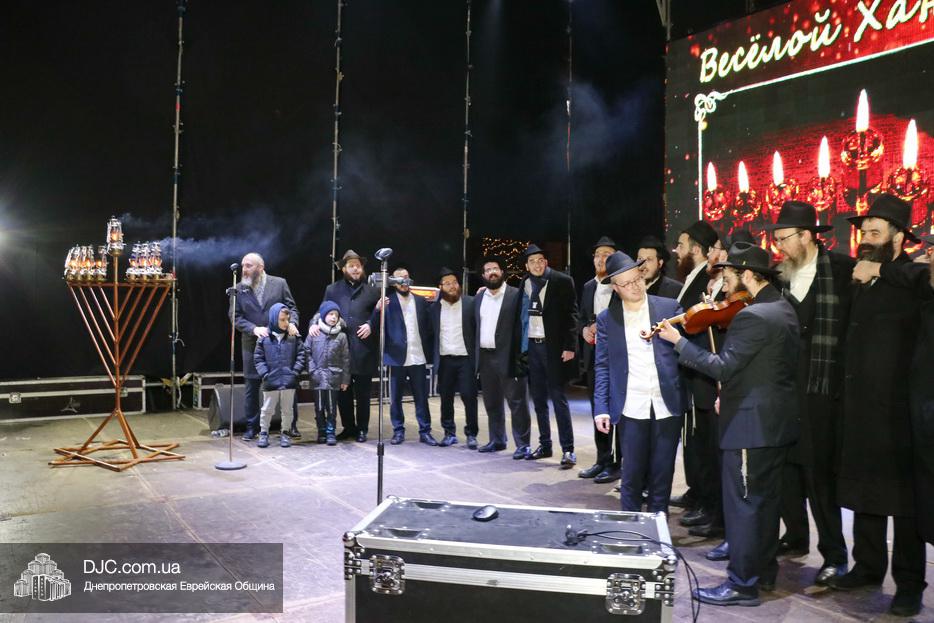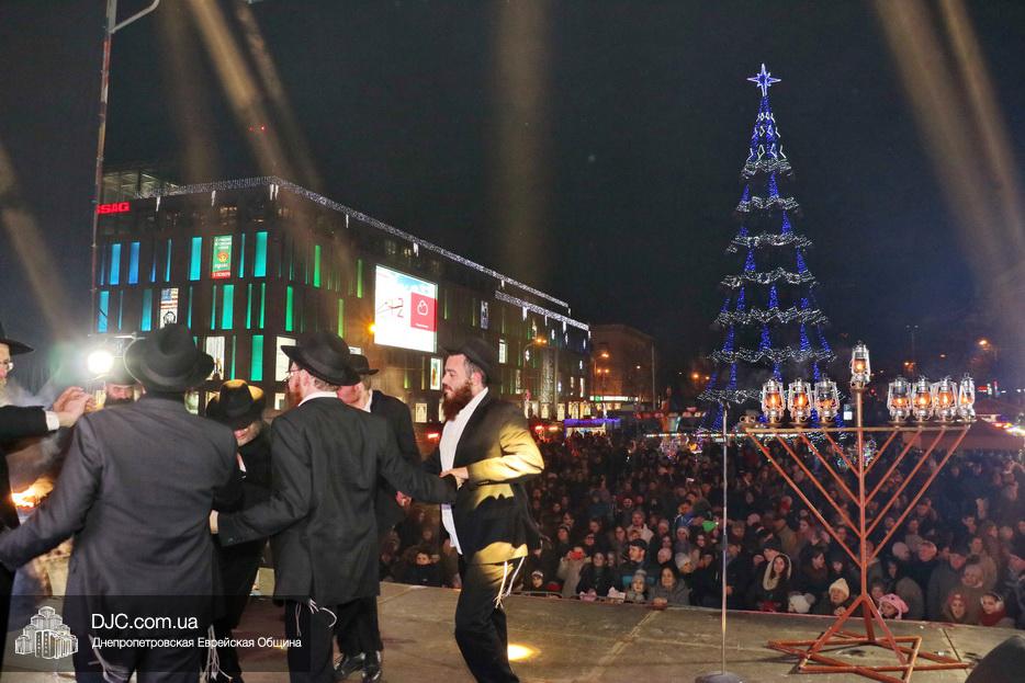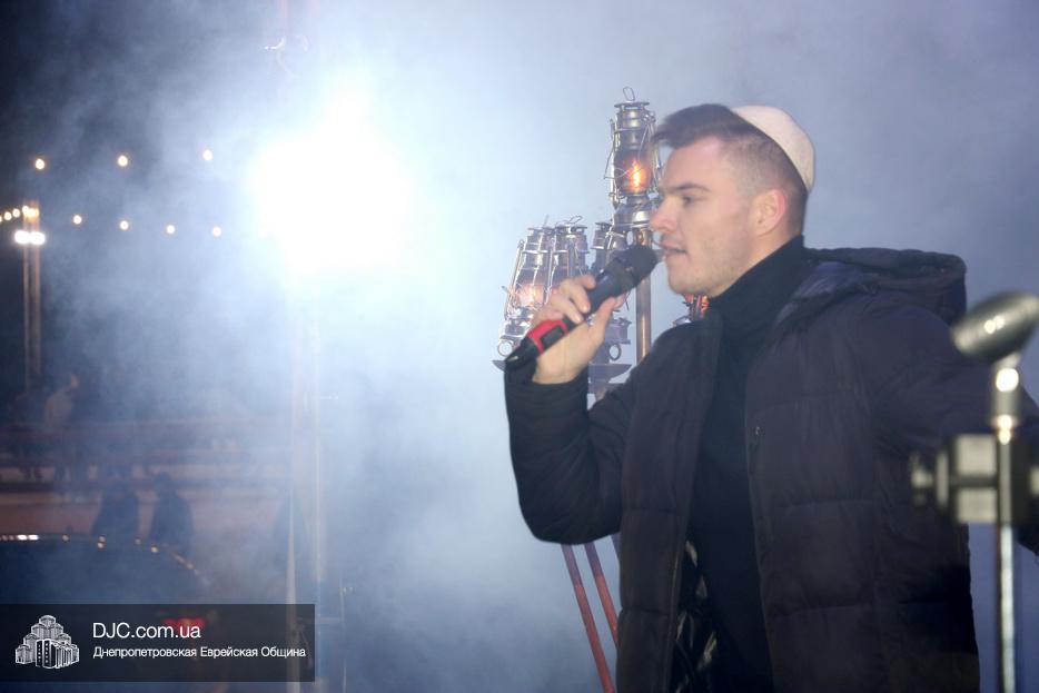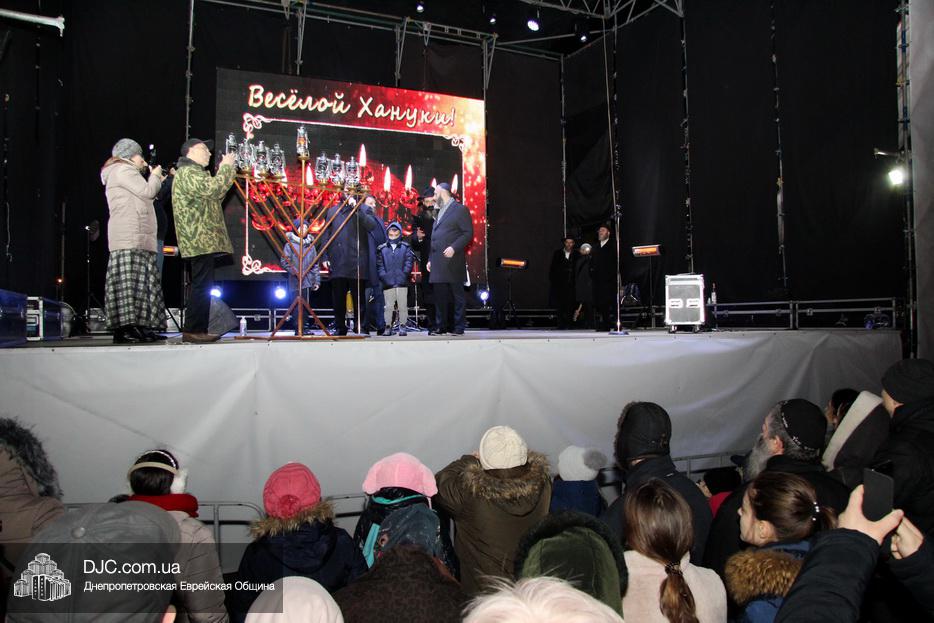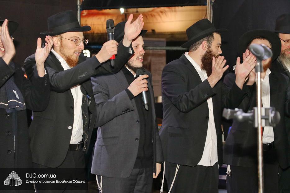После зажжения ханукий состоялось выступление молодых посланников Ребе из Нью-Йорка, приехавших в Днепр для участия в ханукальных мероприятиях. Они исполнили ханукальный гимн «Анерот Алалу» и хасидский танец. Со сцены также прозвучали поздравления еврейской общине от местных властей и руководителей Всеукраинских еврейских организаций.