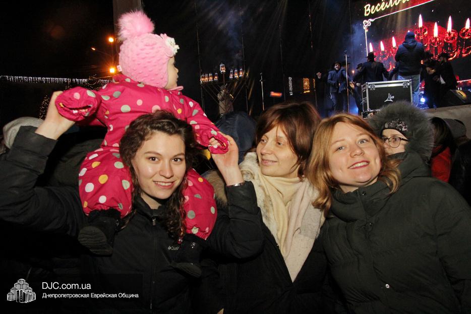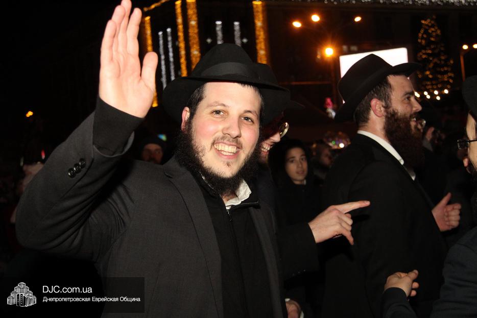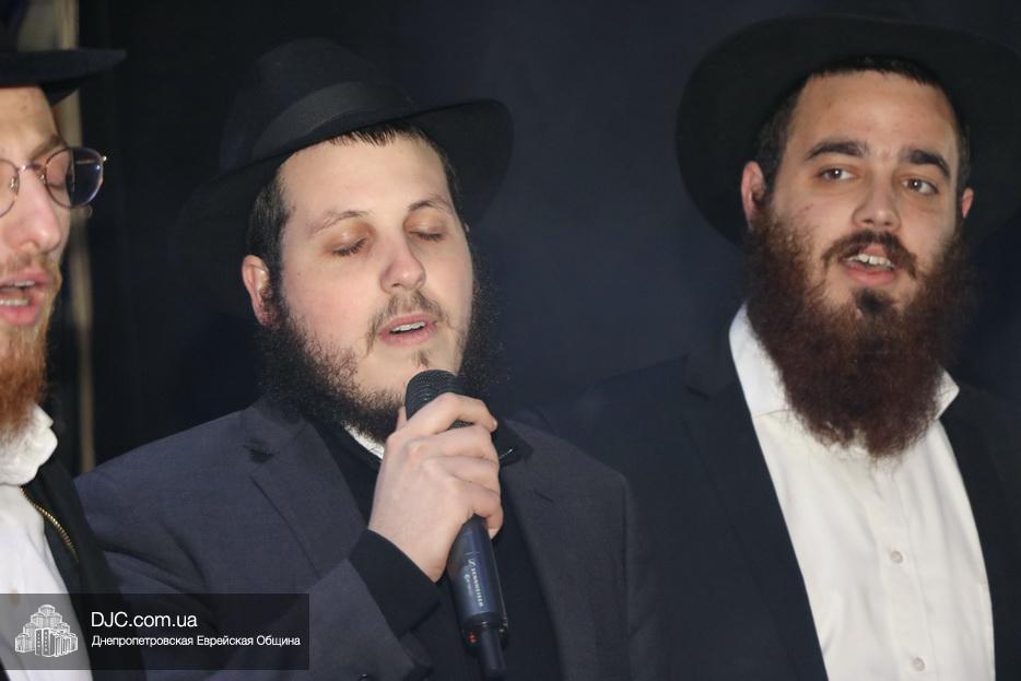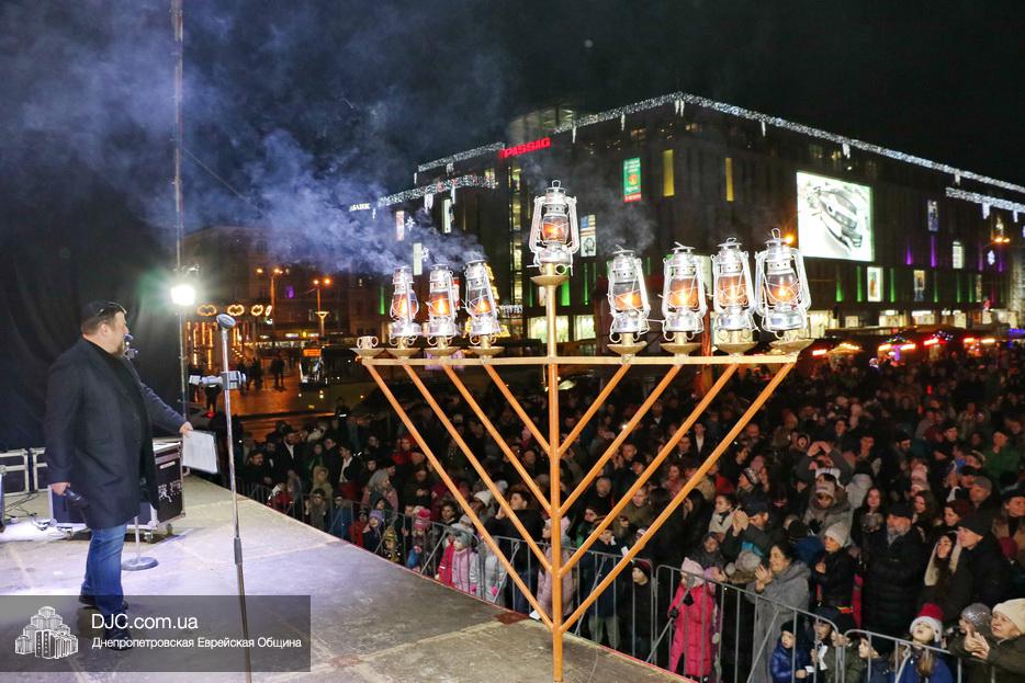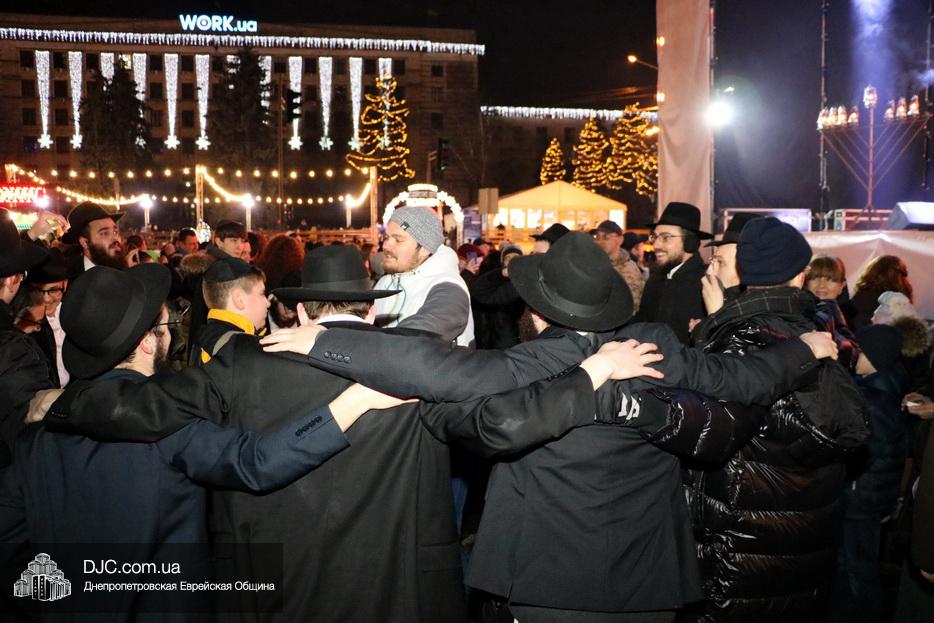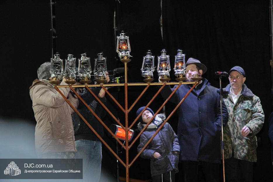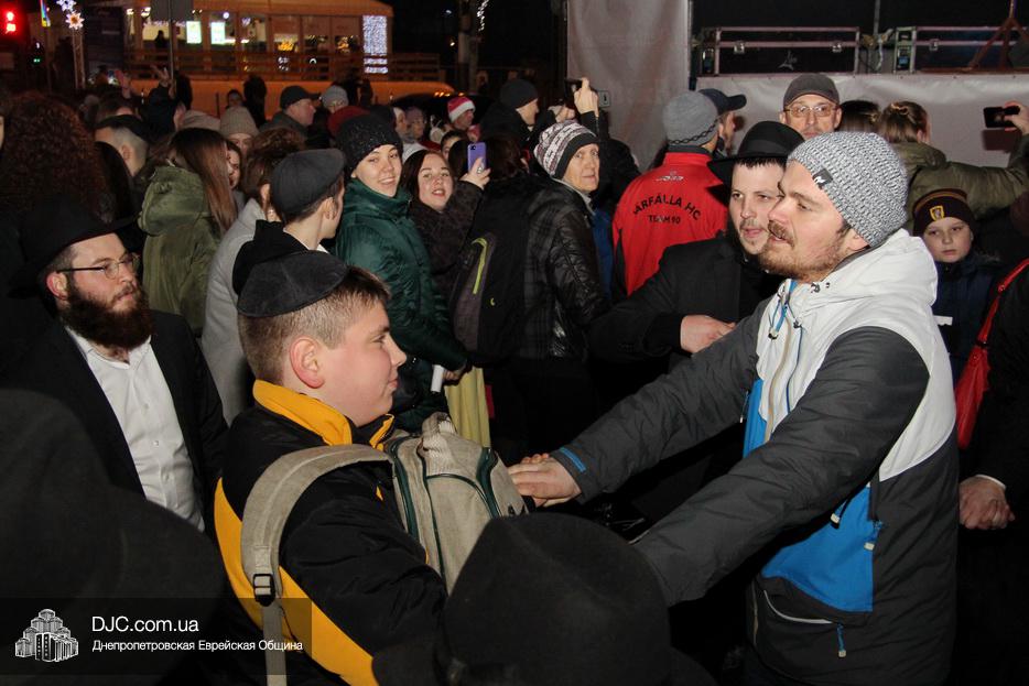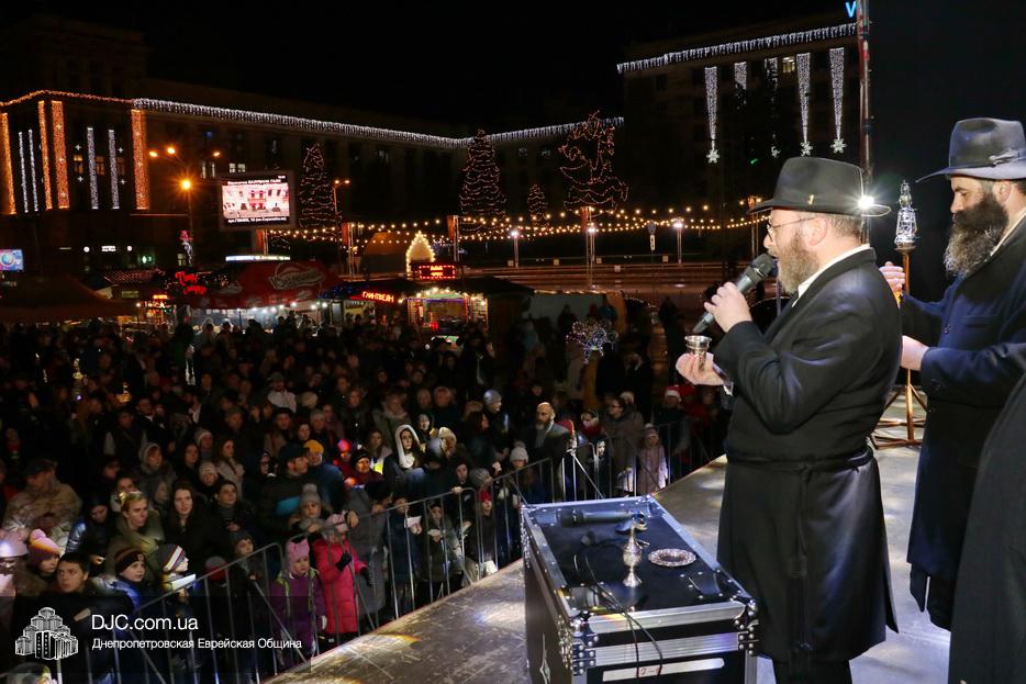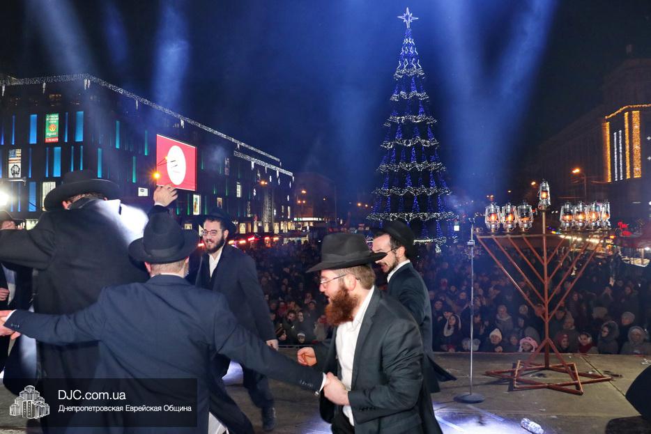 После зажжения ханукий состоялось выступление молодых посланников Ребе из Нью-Йорка, приехавших в Днепр для участия в ханукальных мероприятиях. Они исполнили ханукальный гимн «Анерот Алалу» и хасидский танец. Со сцены также прозвучали поздравления еврейской общине от местных властей и руководителей Всеукраинских еврейских организаций.
