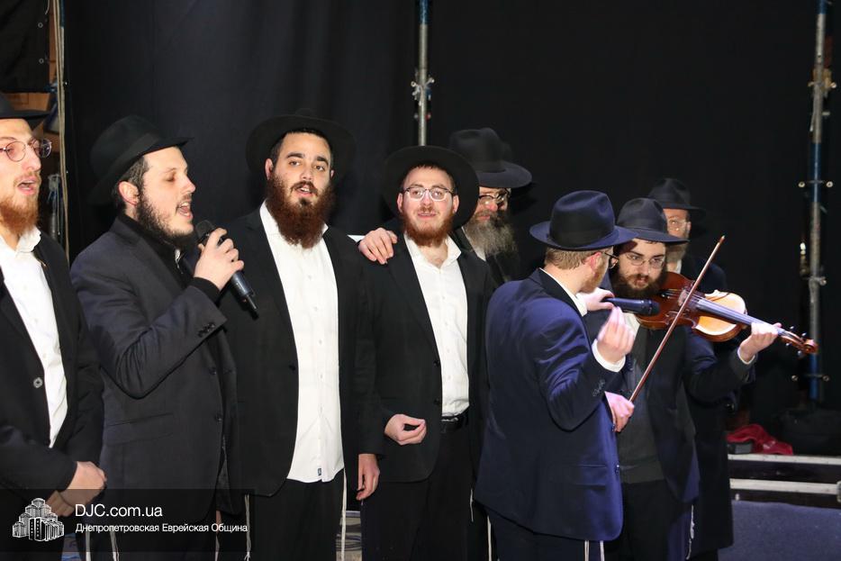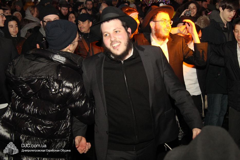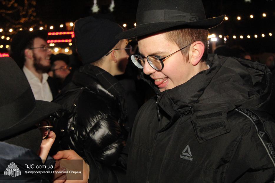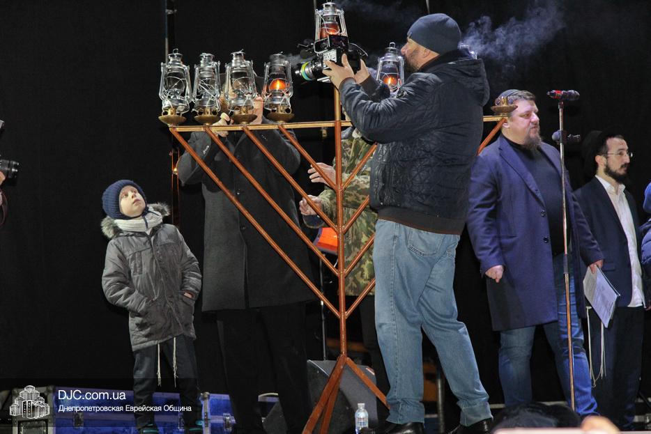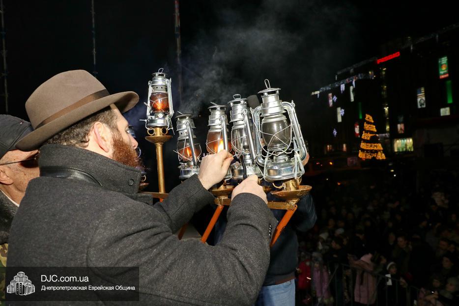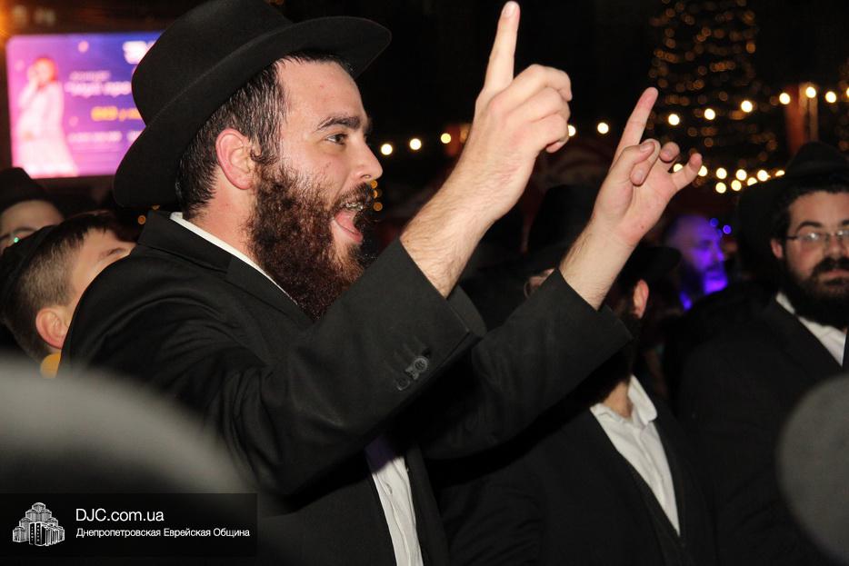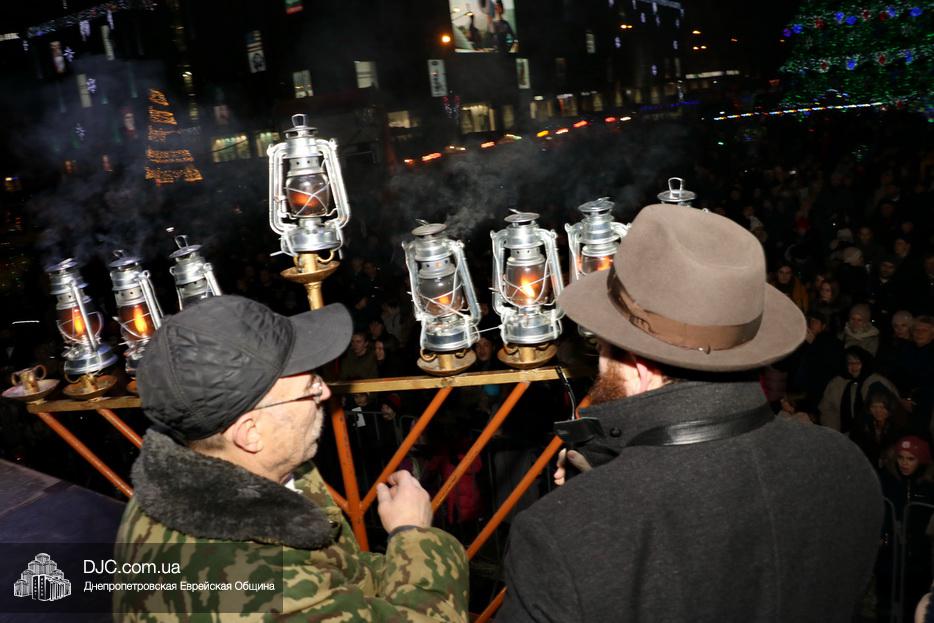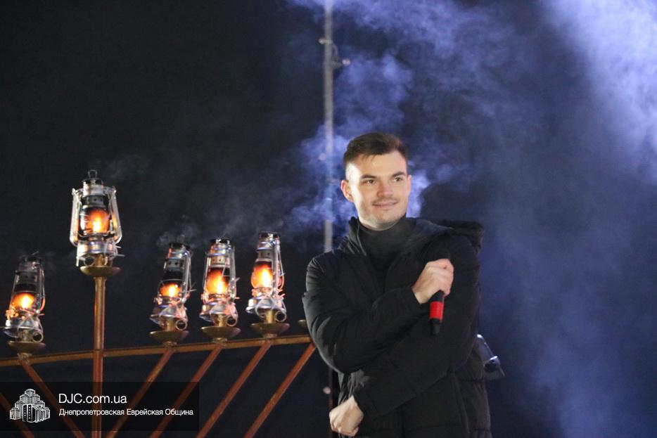 После зажжения ханукий состоялось выступление молодых посланников Ребе из Нью-Йорка, приехавших в Днепр для участия в ханукальных мероприятиях. Они исполнили ханукальный гимн «Анерот Алалу» и хасидский танец. Со сцены также прозвучали поздравления еврейской общине от местных властей и руководителей Всеукраинских еврейских организаций.