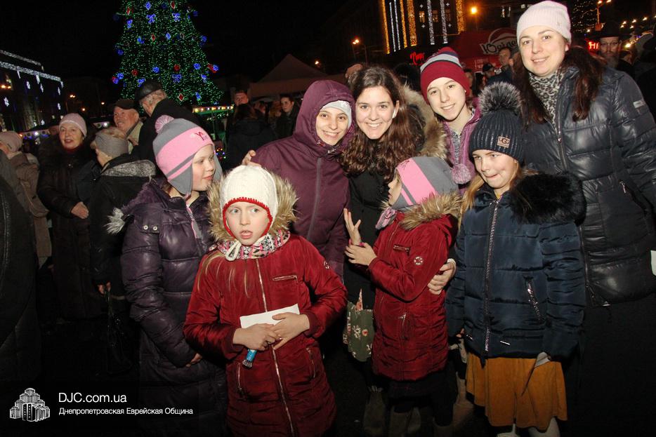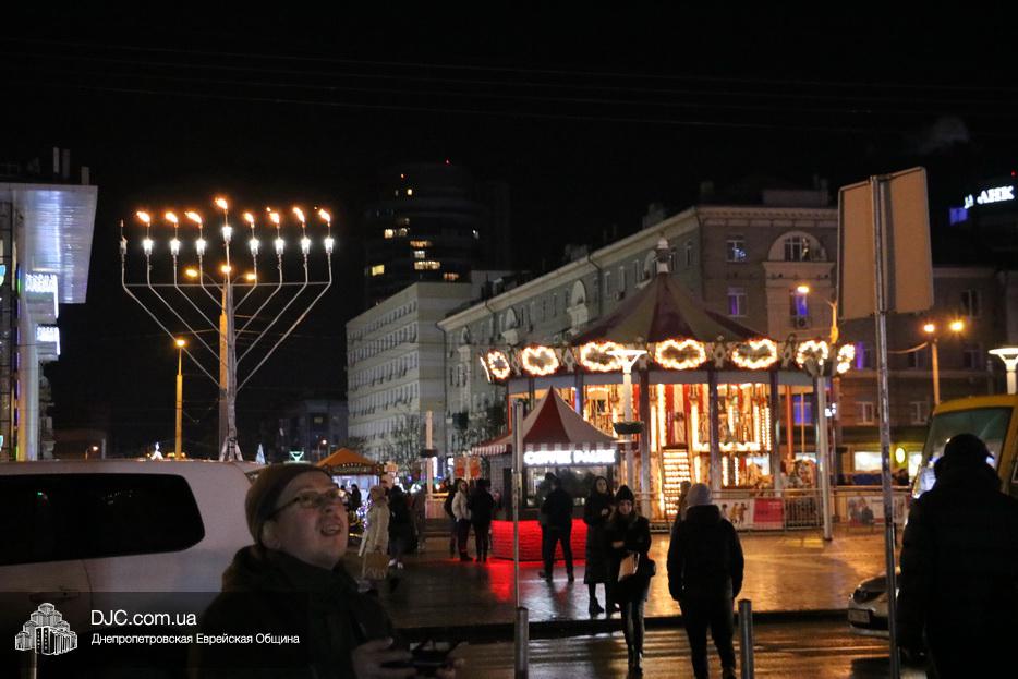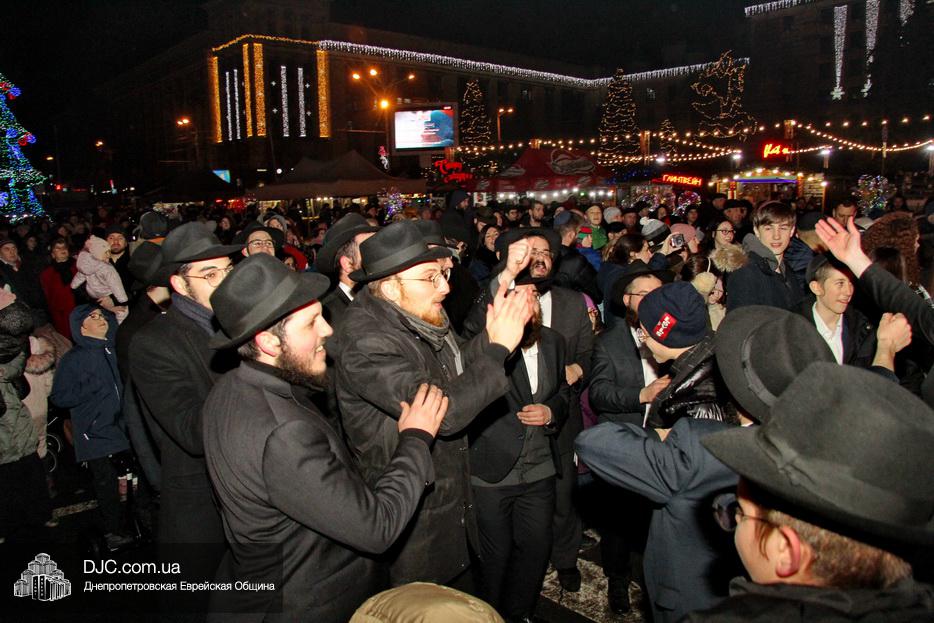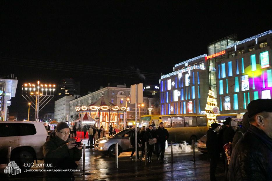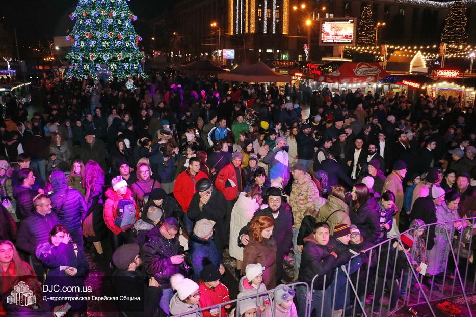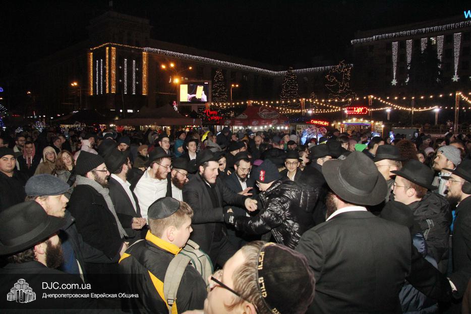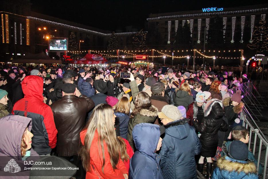 Вечером в субботу на главной площади Днепра – площади Героев Майдана – состоялось большое городское ханукальное представление – зажжение двух городских ханукий с большим концертом, танцами, угощениями и лотереей.