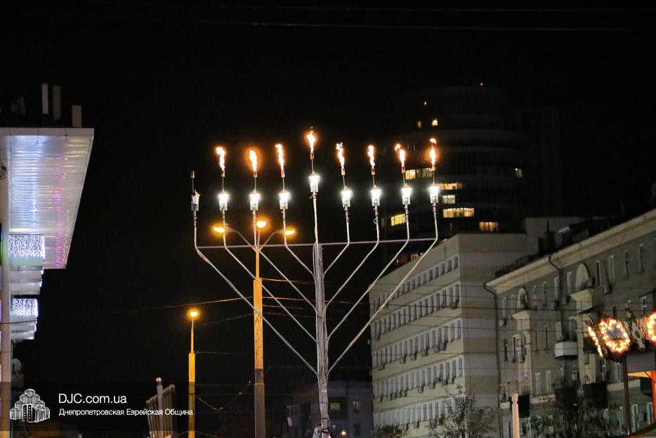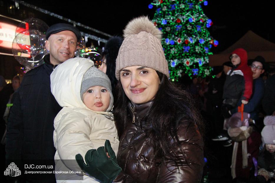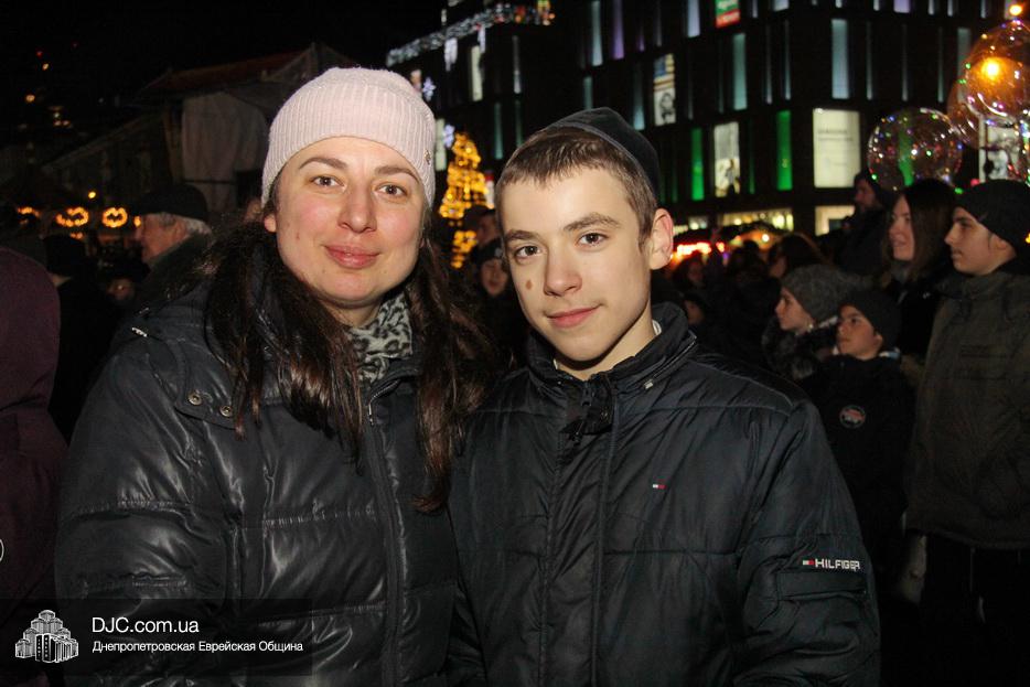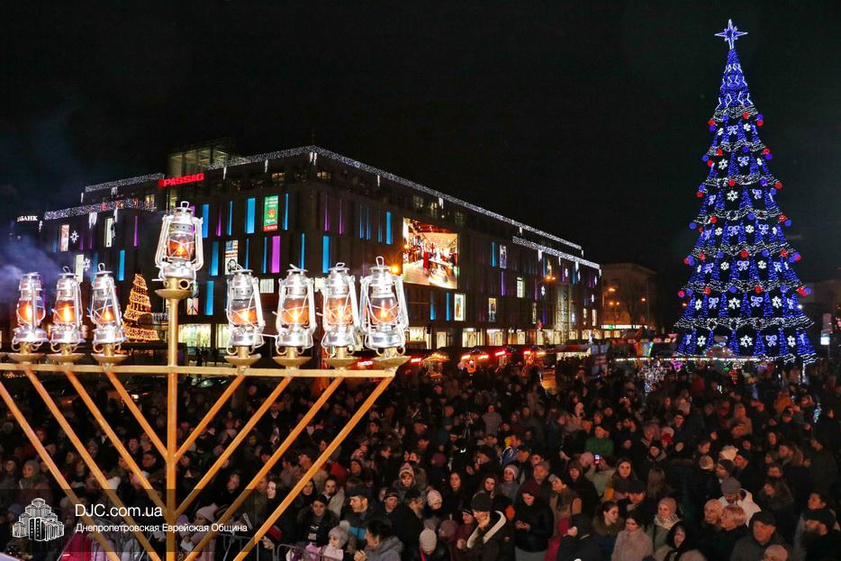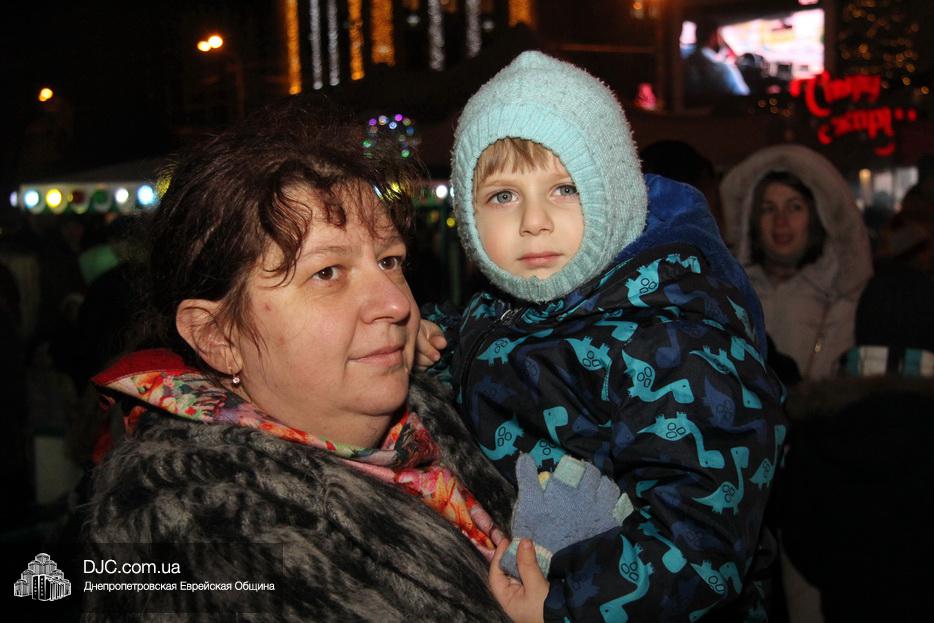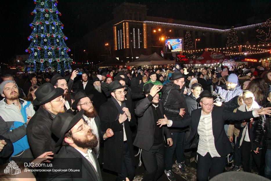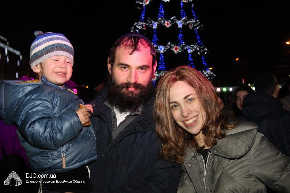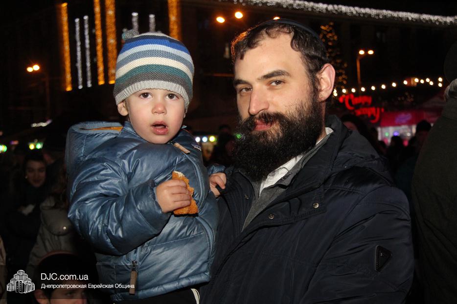 Вечером в субботу на главной площади Днепра – площади Героев Майдана – состоялось большое городское ханукальное представление – зажжение двух городских ханукий с большим концертом, танцами, угощениями и лотереей.