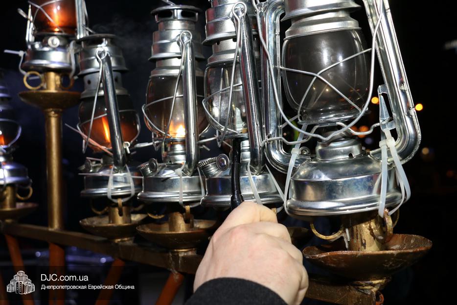 Вначале ведущий мероприятия Дан Макогон огласил проведение церемонии Авдалы, ибо мероприятие проходило после окончания Шабата. Затем были показаны видеоролики о праздновании Хануки в Днепре в прошлые годы и видео Ребе.