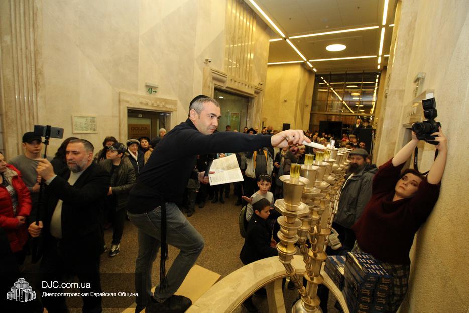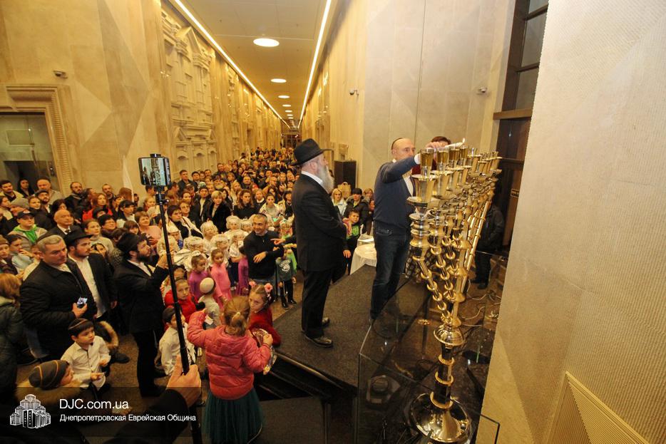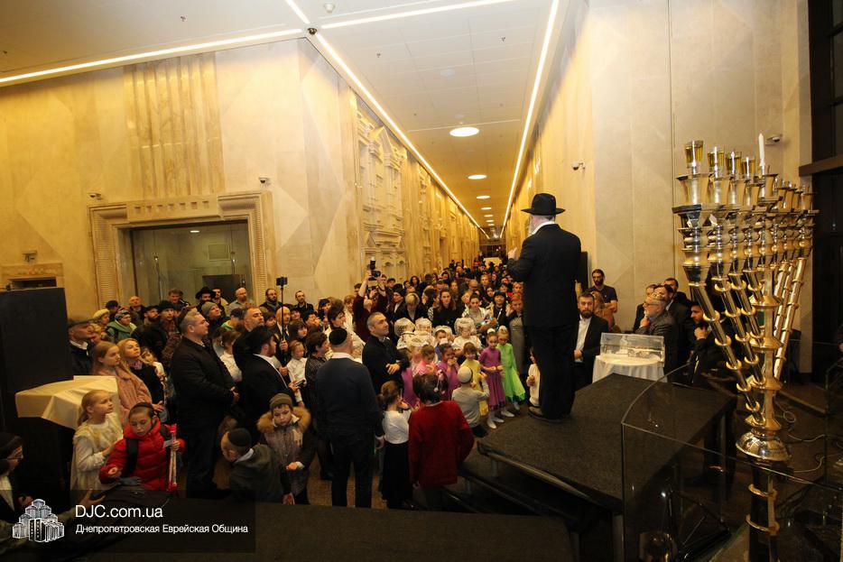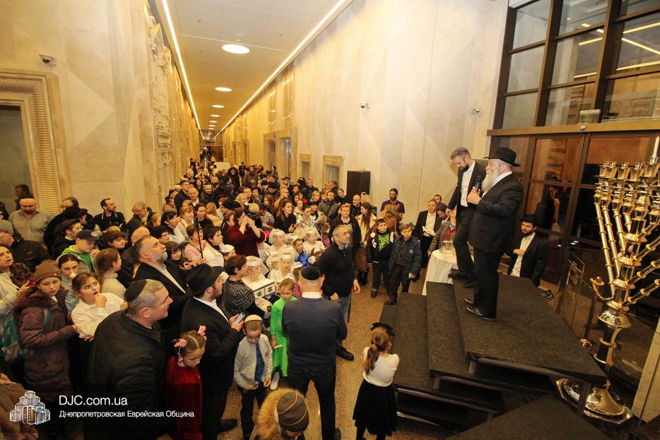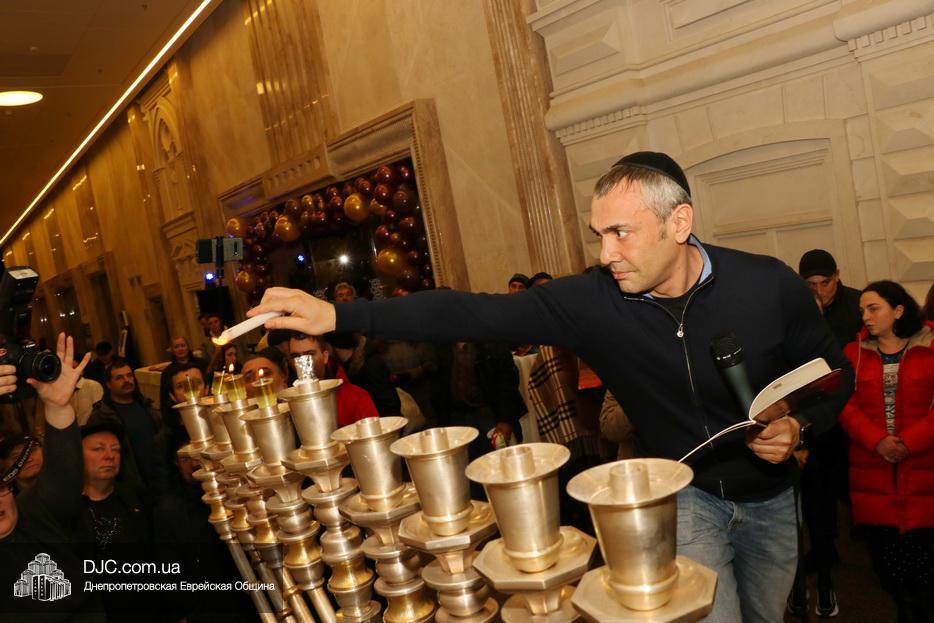 Главным событием четвертого вечера праздника Ханука в Днепре стало зажжение четырех свечей на главных ханукиях города, установленных в крупнейшем в мире еврейском центре «Менора».