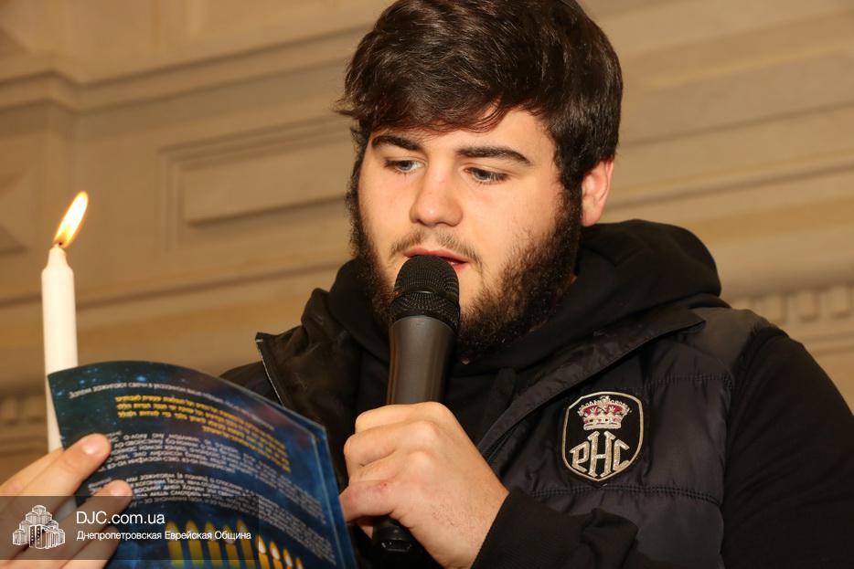 На второй серебряной Ханукие в Галерее центра зажег свечи Хануки молодой лидер еврейской общины следующего поколения Давид Сорока.