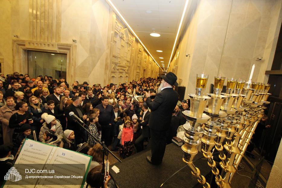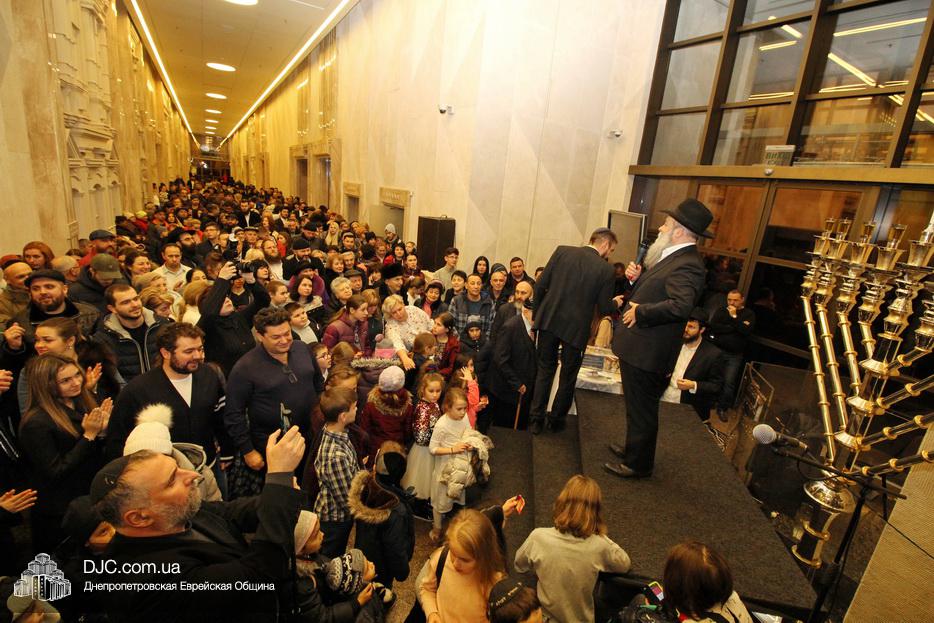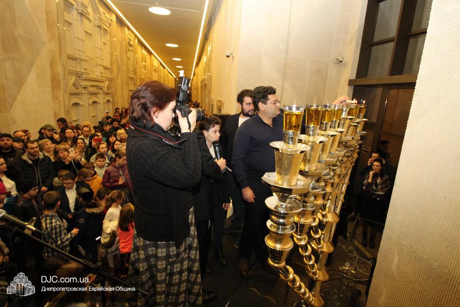 Главным событием восьмого вечера праздника Ханука в Днепре стало зажжение восьми свечей на главных ханукиях города, установленных в крупнейшем в мире еврейском центре «Менора».