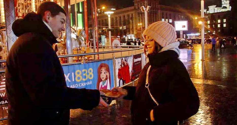 Каждый вечер ребята приходят к большой ханукие на площади Героев Майдана, чтобы рассказывать горожанам о сути праздника Ханука, делиться своей радостью, а также дарить евреям, которые еще не зажигают ханукальные свечи, праздничные ханукальные наборы.