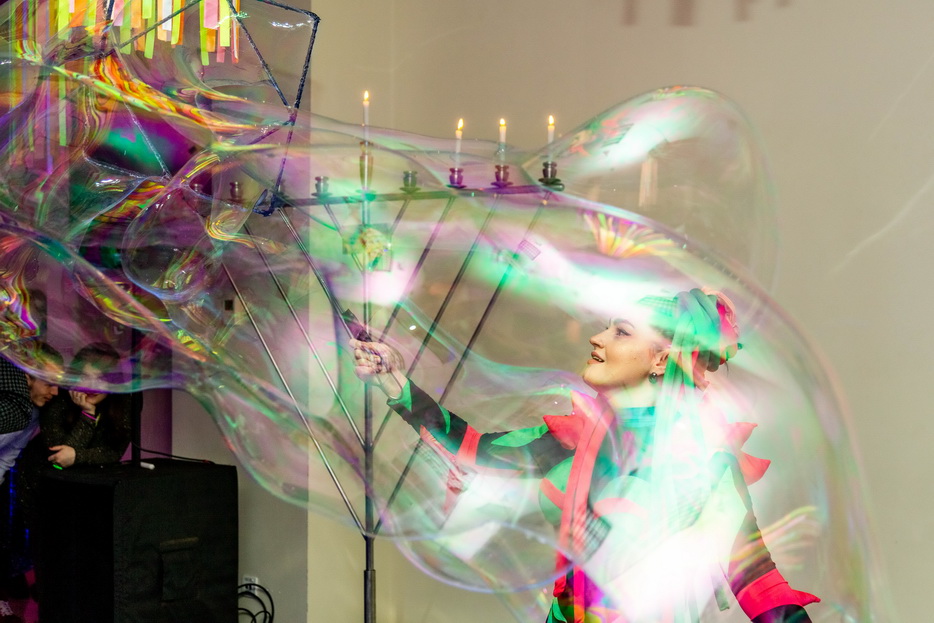 Грандиозным событием этого вечера стала Ханукальная вечеринка, в которой приняло участие 69 человек. Каждый мог сделать селфи возле неоновой фотозоны. Получились отличные снимки на добрую и долгую память. Прекрасное настроение, чарующие улыбки и море веселья объединили всех участников вечера. Так и хотелось сказать: «Поскорее зажигай». Что и сделал Залман Бухиник, который зажег Ханукию праздника!