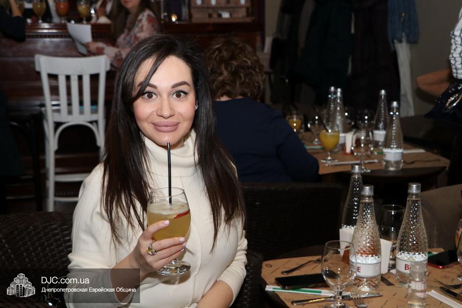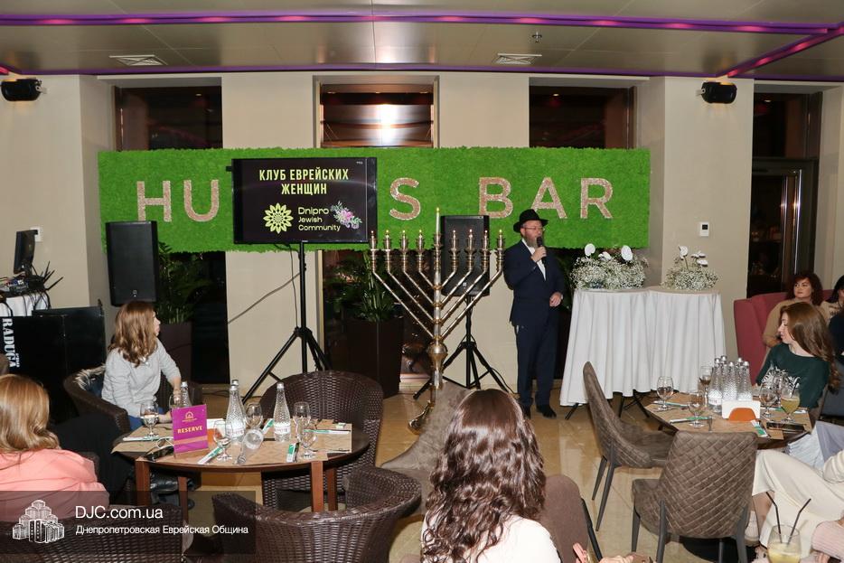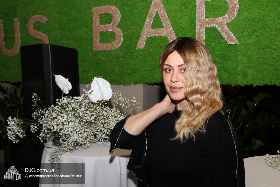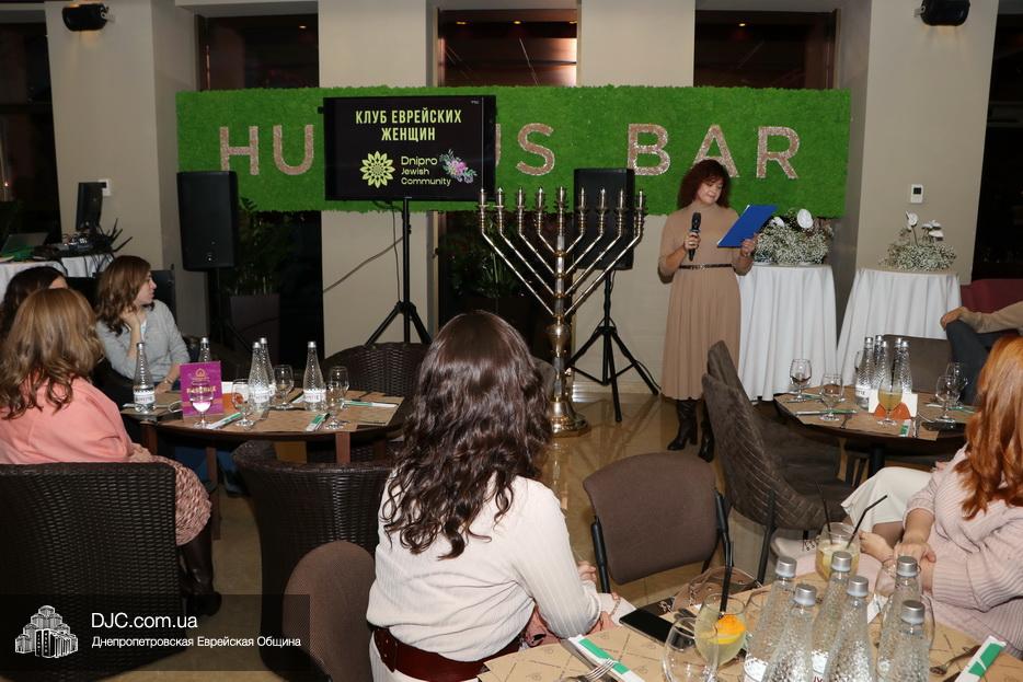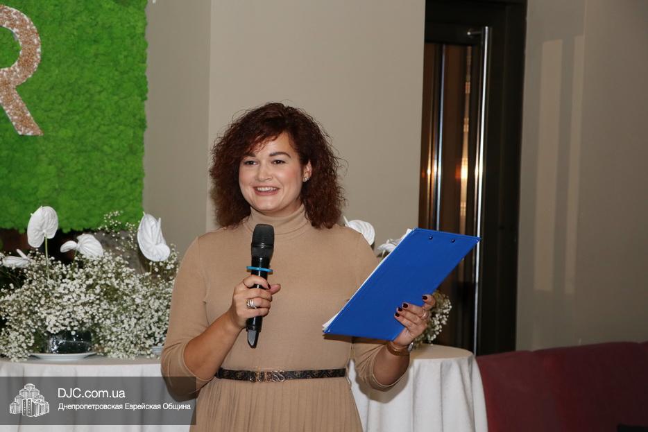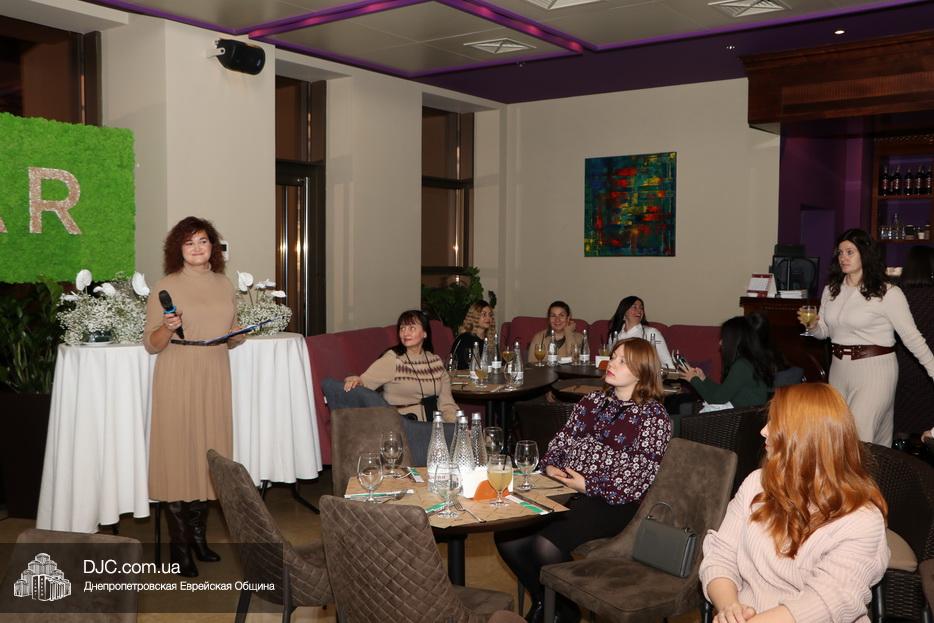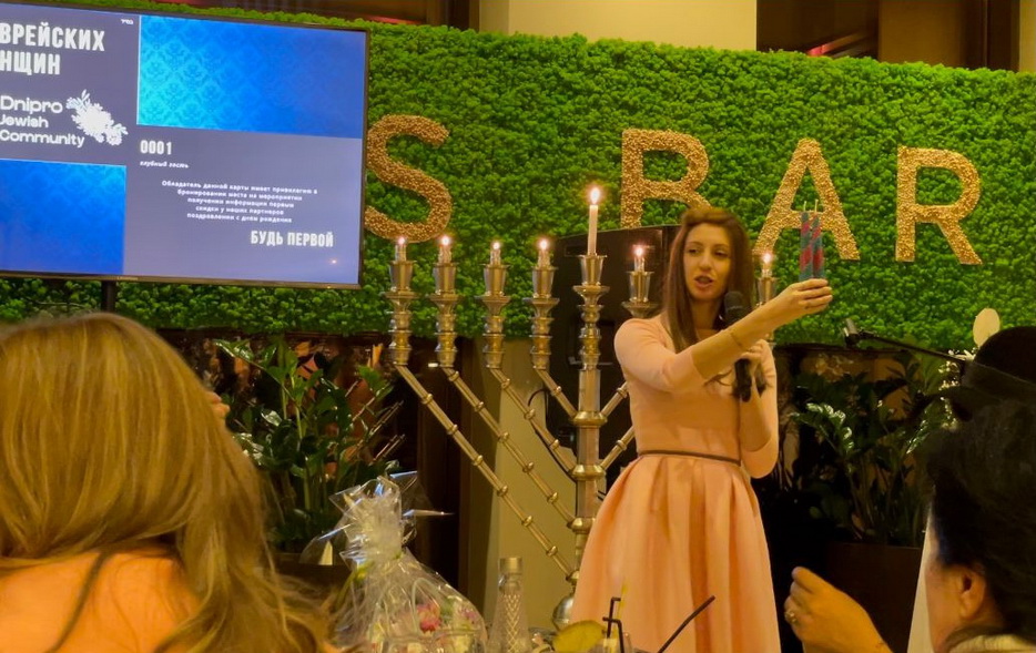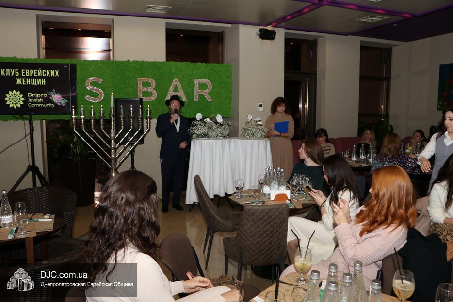 Ведущая вечера Нехама Момот пригласила всех присутствующих дам отведать ханукальные коктейли, рассказала о мероприятии, которое смогло состояться благодаря поддержке Еврейской общины Днепра и Главного раввина Шмуэля Каминецкого и ребецн Ханы Каминецкой.