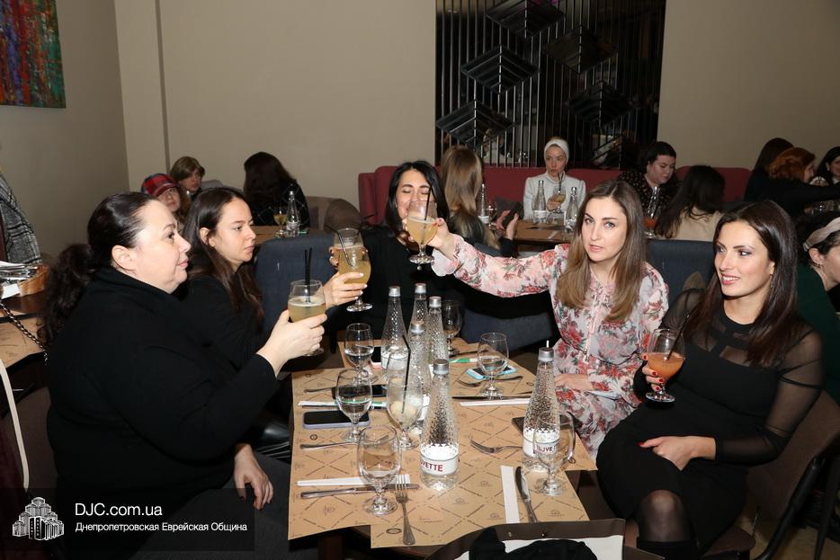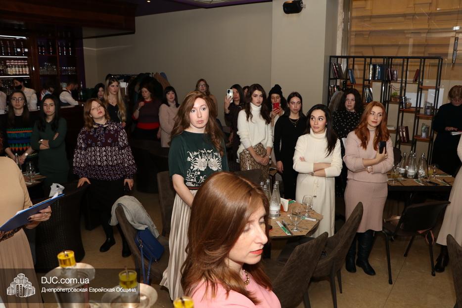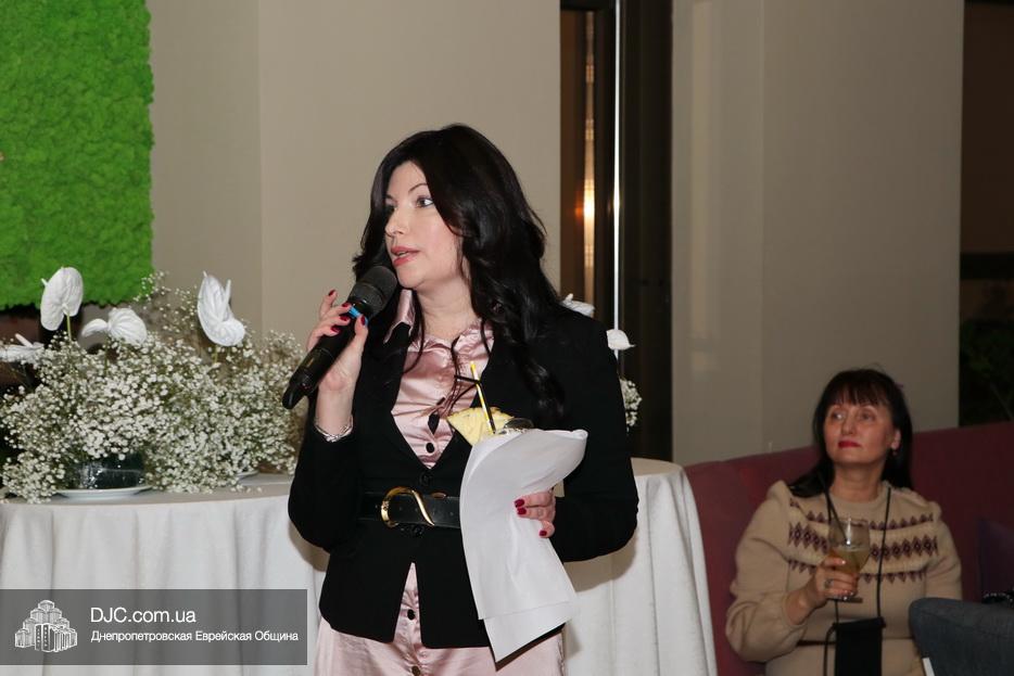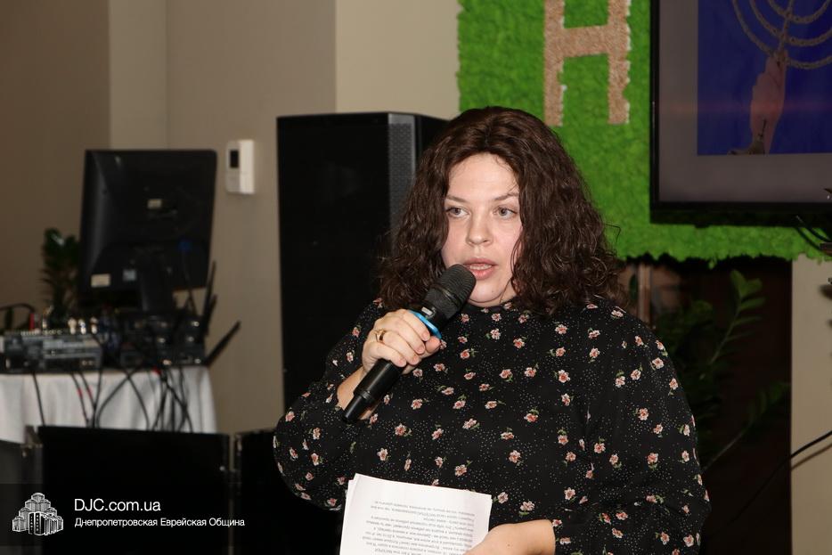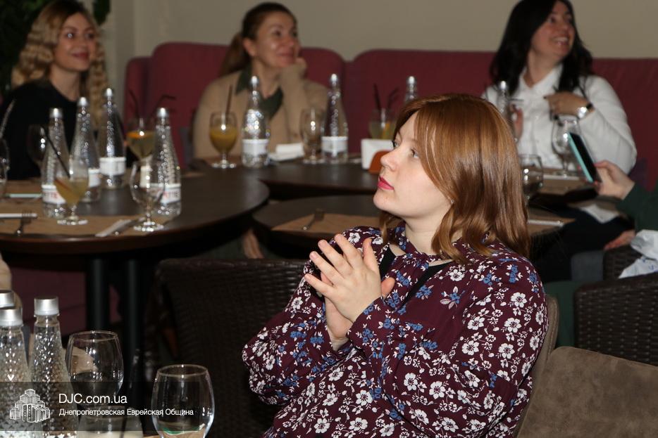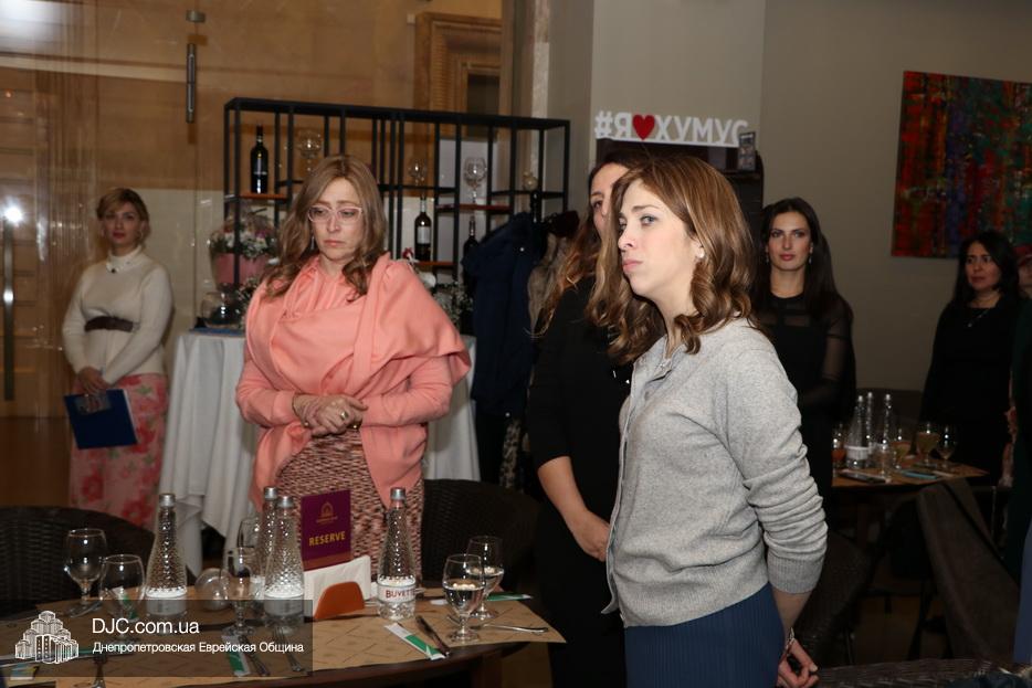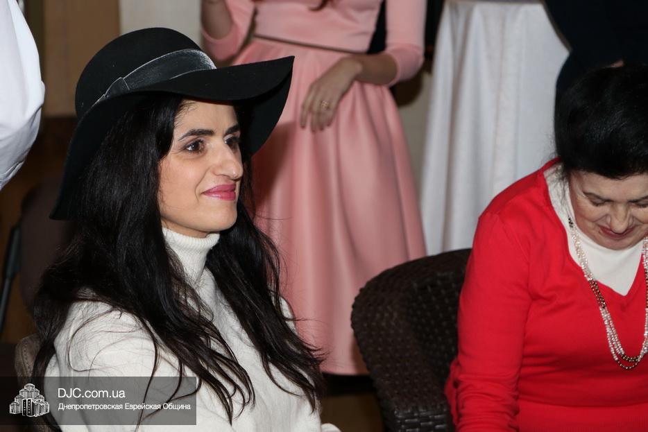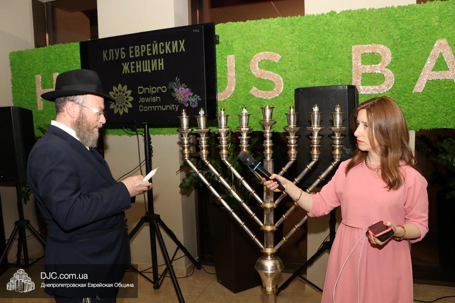 Ведущая вечера Нехама Момот пригласила всех присутствующих дам отведать ханукальные коктейли, рассказала о мероприятии, которое смогло состояться благодаря поддержке Еврейской общины Днепра и Главного раввина Шмуэля Каминецкого и ребецн Ханы Каминецкой.