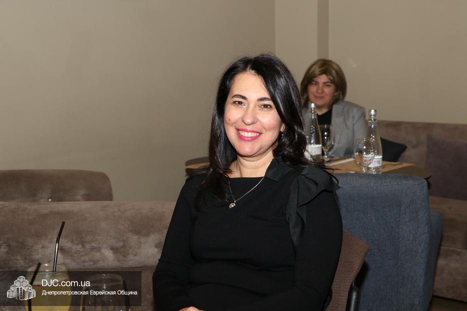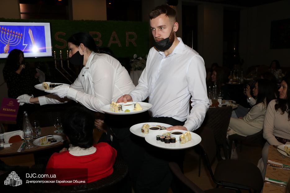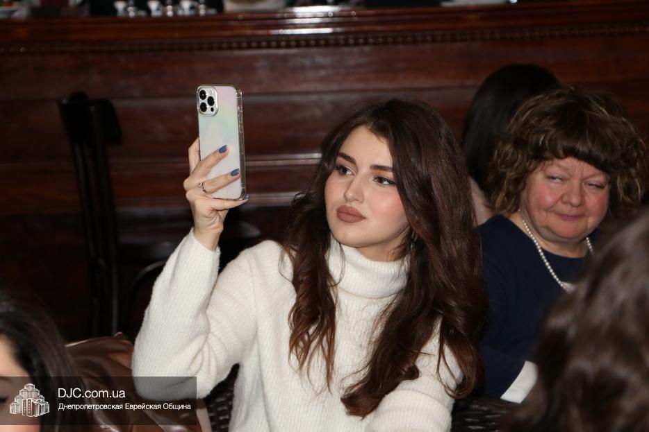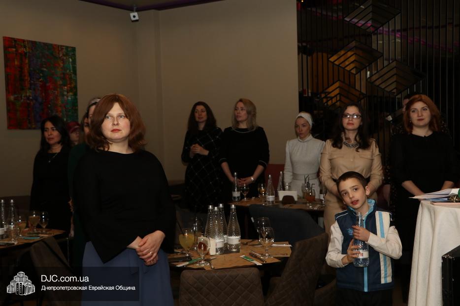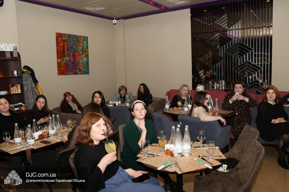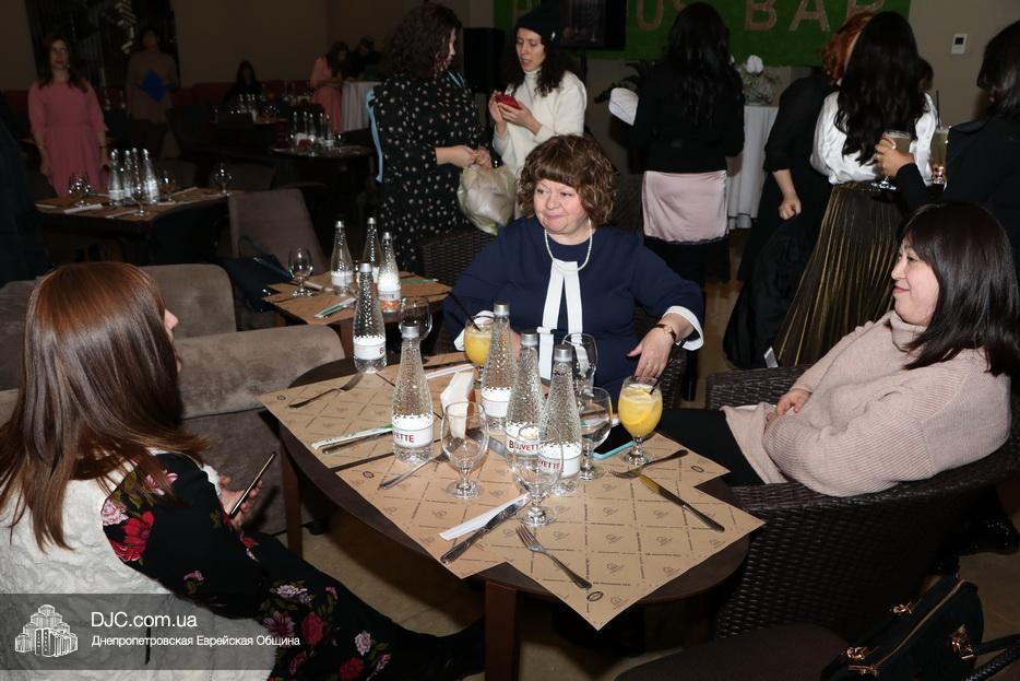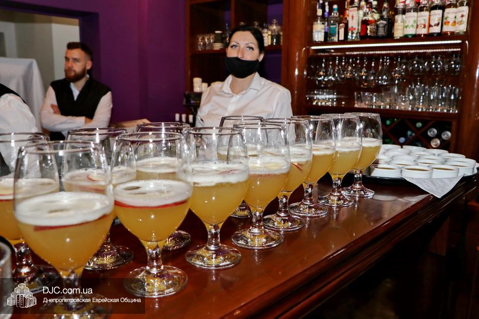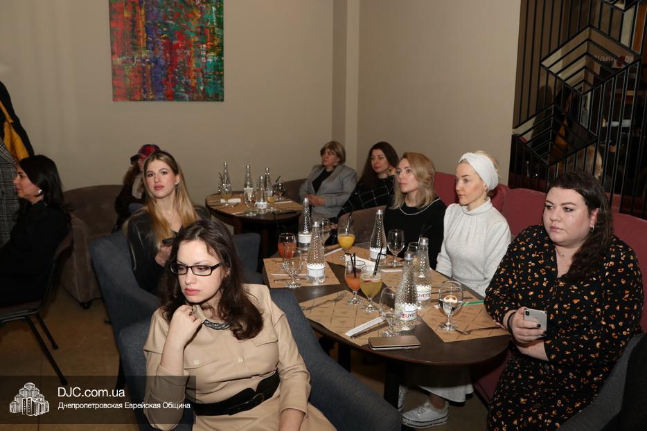 Ведущая вечера Нехама Момот пригласила всех присутствующих дам отведать ханукальные коктейли, рассказала о мероприятии, которое смогло состояться благодаря поддержке Еврейской общины Днепра и Главного раввина Шмуэля Каминецкого и ребецн Ханы Каминецкой.