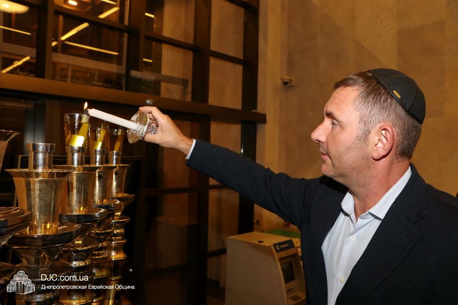 На второй серебряной ханукие в Галерее центра зажег свечи праздника директор Благотворительного фонда «Хесед Менахем» Олег Ростовцев.