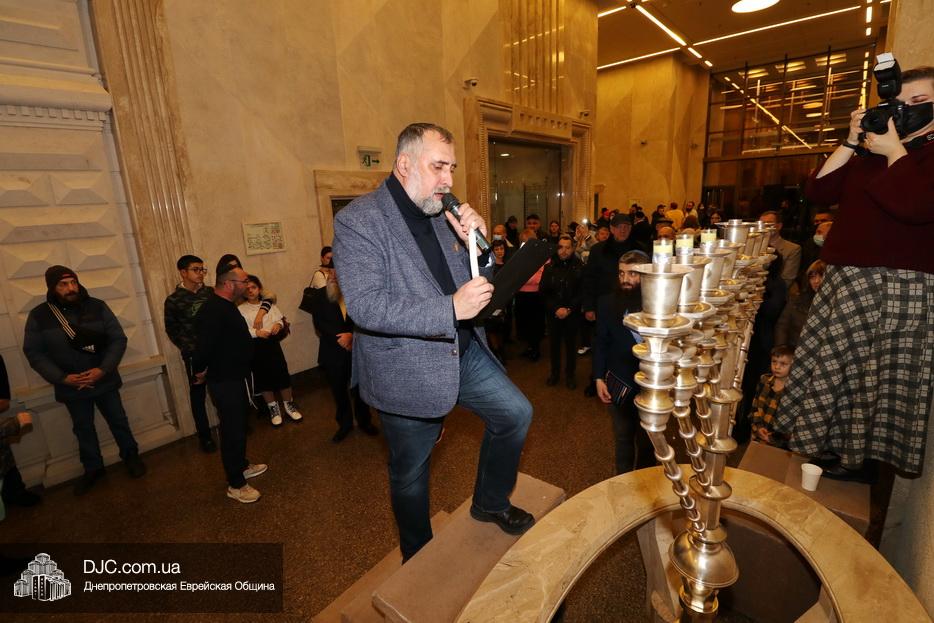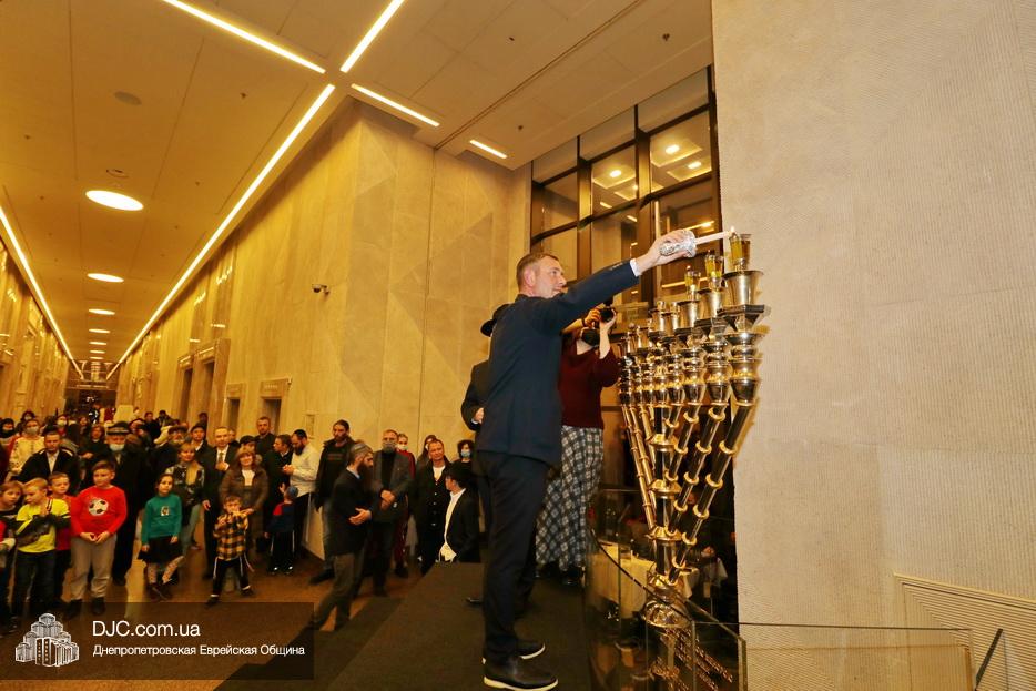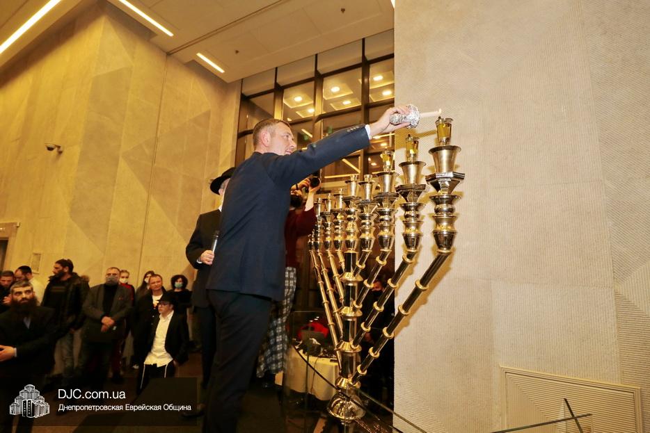 Зажжение главной ханукии в центре «Менора» проводилось в особом режиме, в связи с высоким эпидемическим риском и условиями пребывания Днепра в «красной» зоне, с минимальным присутствием публики и вся церемония транслировалась в прямом эфире на специальном аккаунте в YouTube.
