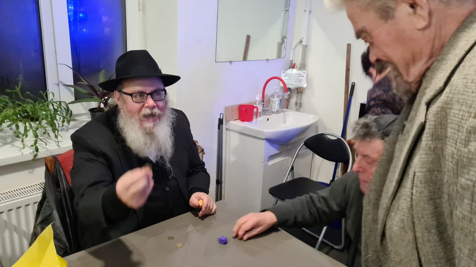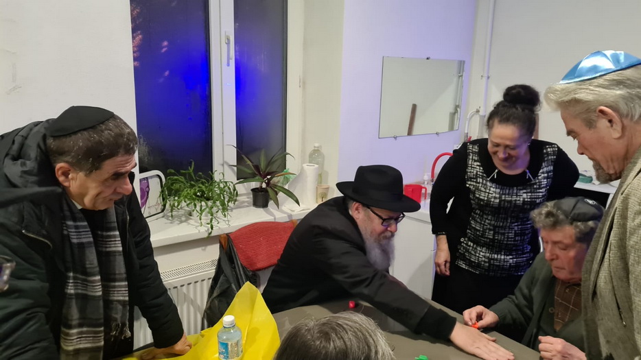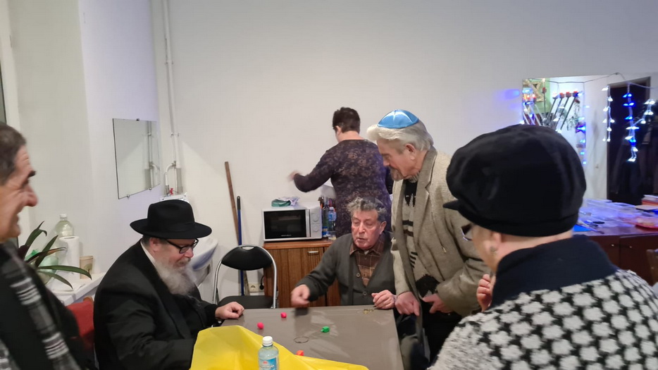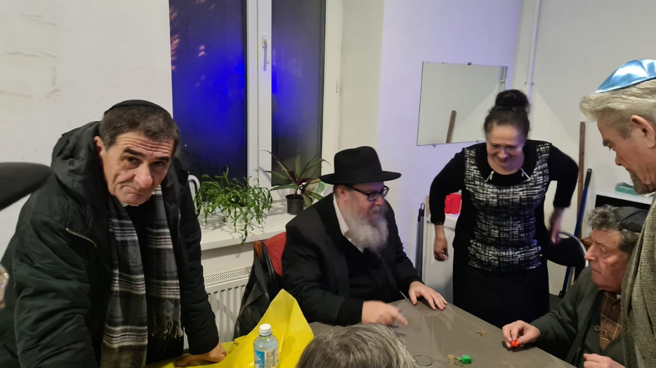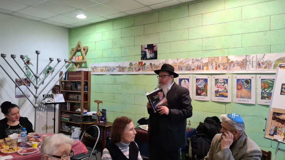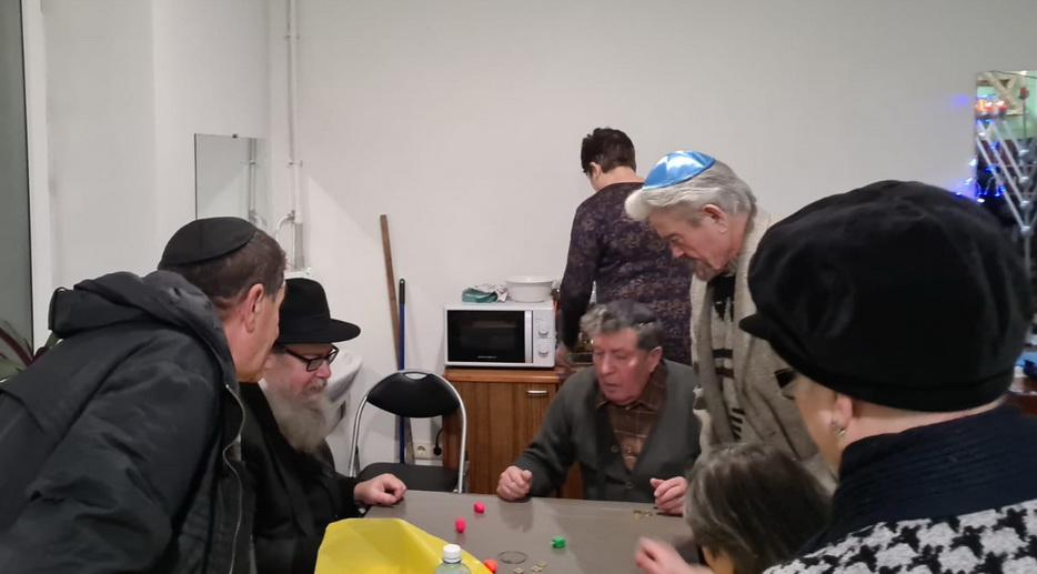 И, конечно, в помещении общины собирались все вместе в разные дни Хануки, проводили фарбренгены за накрытыми вкусной и кошерной едой столами, с «лехаимом».