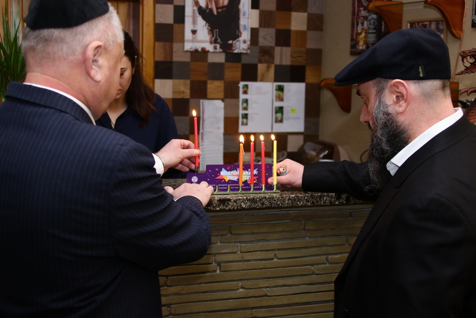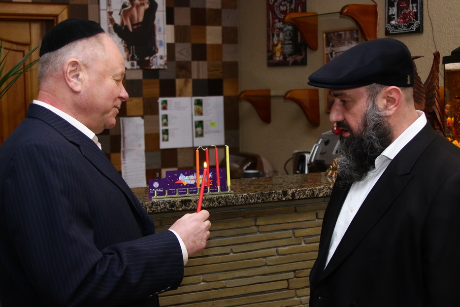 «Община собралась в вечер четвертой свечи Хануки, – рассказал нашему сайту раввин еврейской общины Новомосковска реб Залман Шикула, – честь зажечь ханукальные свечи была предоставлена старейшине общины, габаю – управляющему делами еврейской религиозной общины Новомосковска, господину Юрию Медведовскому, который прочитал благословения, зажег свечи и, обратившись к общине, пожелал всем светлого и радостного праздника Ханука.