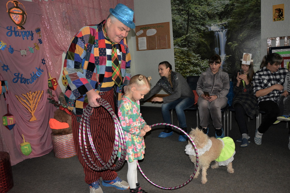 Руслан Комар – талановитий артист-ексцентрик та улюбленець дітей! Він не тільки володіє великим арсеналом різноманітних циркових технік, але й створив неповторний образ доброго чарівника, який з легкістю творить дива і якому підкоряються звірі – від собачок та голубів до кроликів та морських свинок. Кожна поява в ОРЦ цього веселого велетня викликає захоплення дітлахів. На свято Хануки він знову завітав до нашого Центру разом зі своїми хвостатими асистентами-пудельками. Руслан Комар – іще й чудовий педагог: на його шоу кожна дитина може відчути себе справжнім чарівником. Дякуємо Вам, дорогий артисте, за радість та щастя, яке Ви даруєте дітям!