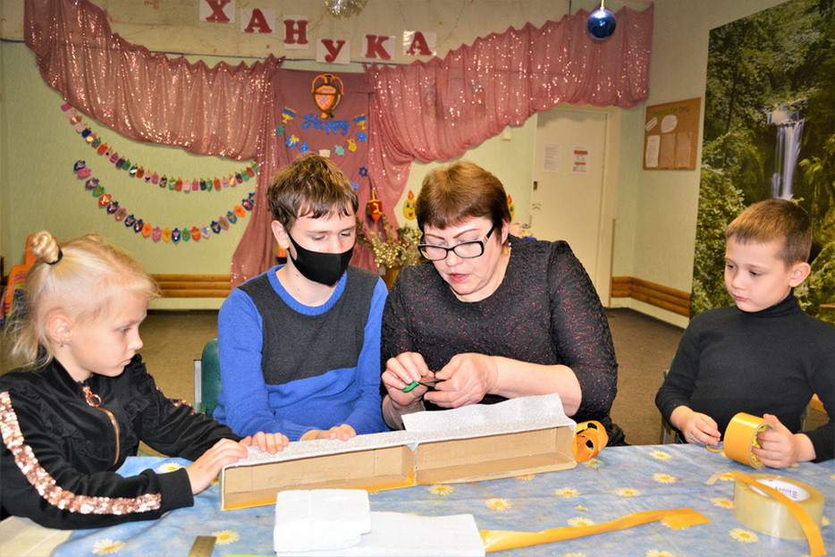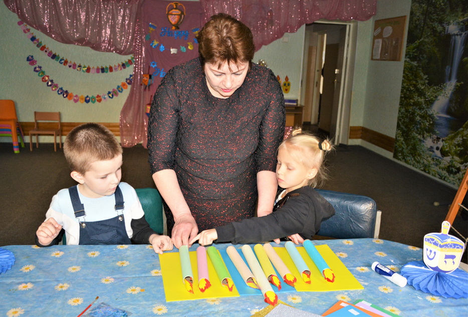 А корекційний педагог Людмила Навротська провела два заняття з арт-терапії. З кольорового паперу, картону та підручних матеріалів діти виготовили ханукальний світильник. Він вийшов дуже гарним. Наступного року він послужить наочним посібником для занять про Хануку та святковою окрасою нашого Центру».