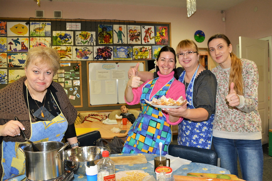 А ще у наc був кулінарний майстер-клас для мам! Традиційні ханукальні страви – це пончики, смажені в олії (суфганійот) або картопляні оладки (латкес) – звичайні драники, поширені серед євреїв-ашкеназі Східної Європи. Кулінарні заняття, які веде соціальний педагог ОРЦ Світлана Ємельянова, є дуже популярними серед мам наших учнів. Для них це і відпочинок, і приємне спілкування. Завершується такий майстер-клас чаюванням зі свіжоприготовленими ласощами.