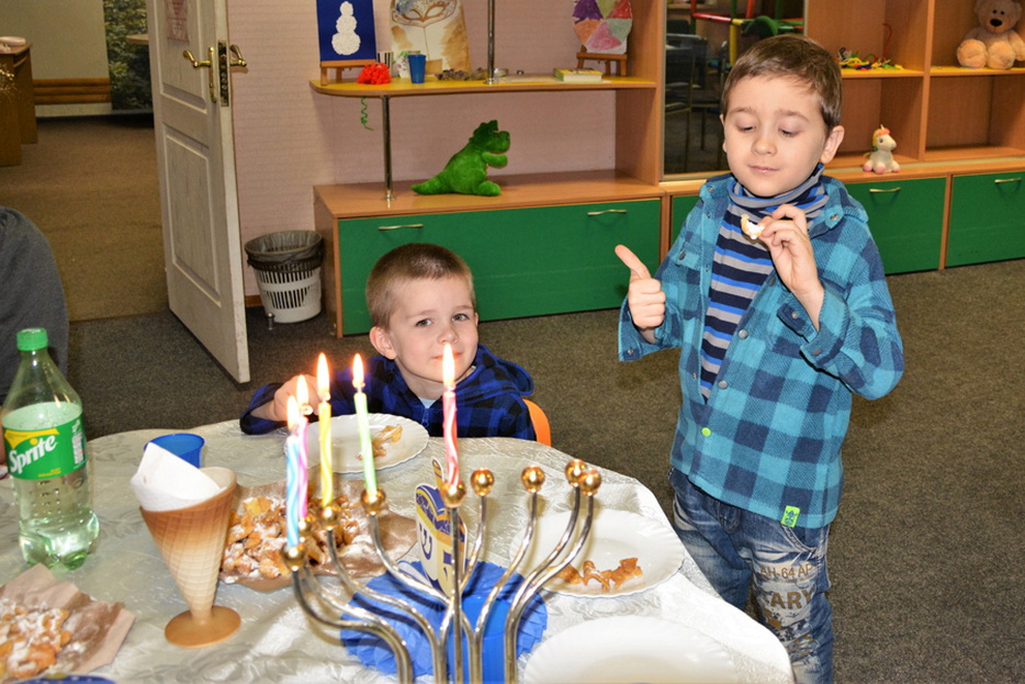 Також в ОРЦ пройшло дитяче свято «Вогні Хануки». Діти люблять розігрувати сценки, і театралізовані вистави – улюблена розвага малюків. Особливо їм подобається перевтілюватись, граючи ролі казкових персонажів – Рум’яний Пончик та сяюча Ханукія – головні герої дитячого свята. У сценарії знайшлося місце для ігор, забав, танців та пісень! І хоча в середині свята вимкнулося світло, все одно було цікаво та весело!