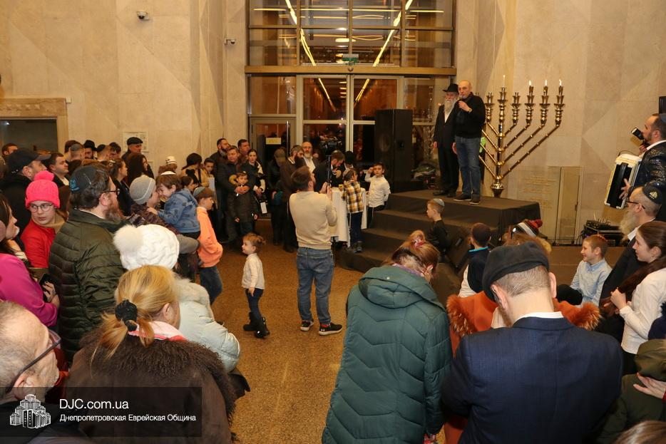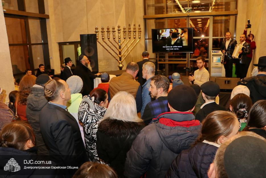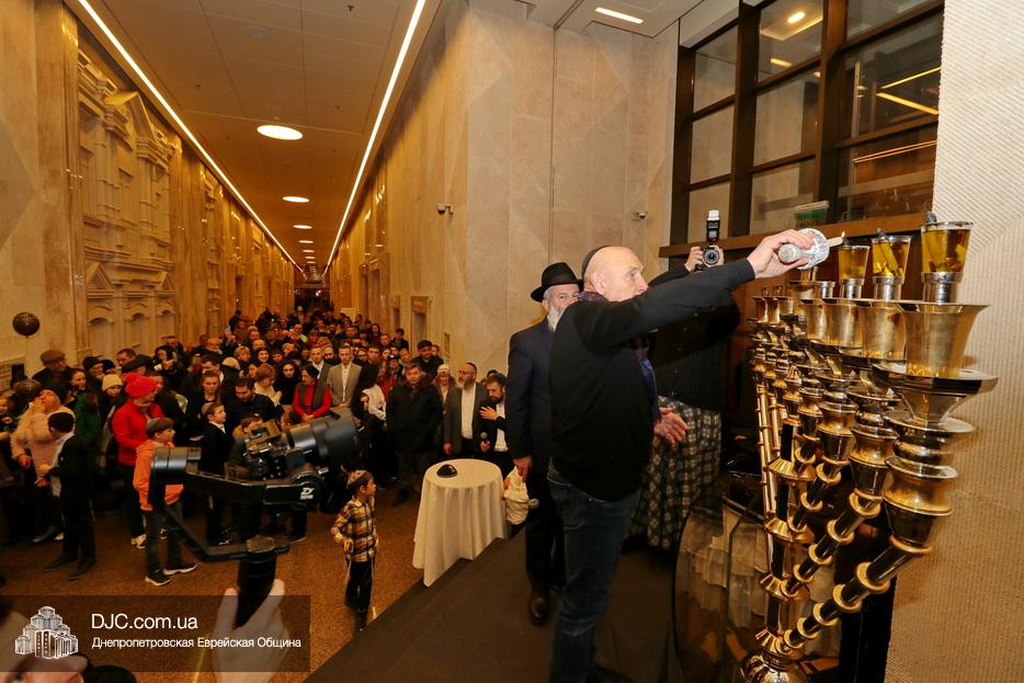 Главным событием третьего вечера праздника Ханука в Днепре стало зажжение свечей на главной ханукие города, установленной в крупнейшем в мире еврейском центре «Менора».