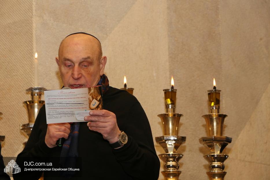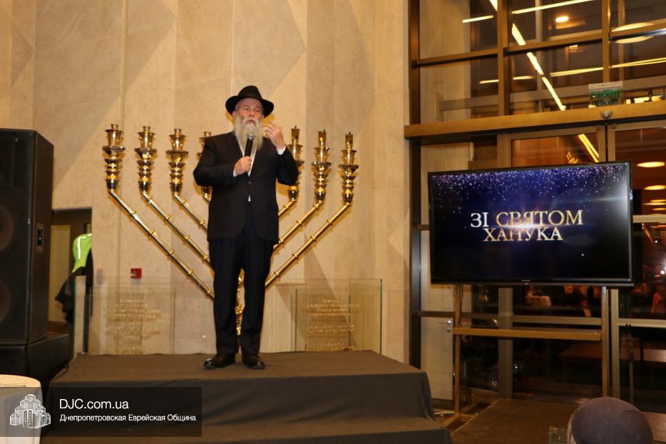 После зажжения ханукии с соответствующими благословениями, Хаим (Виталий Матвеевич) Зайднер обратился к общине, пожелал всем светлого и радостного праздника Ханука и обратил особое внимание на важность сохранения традиций еврейского народа.