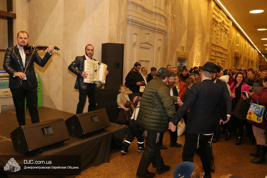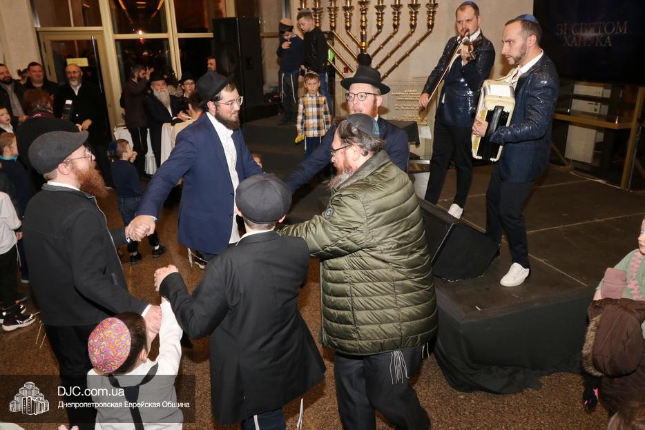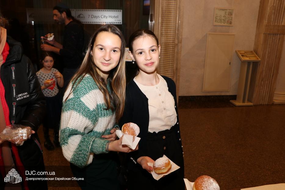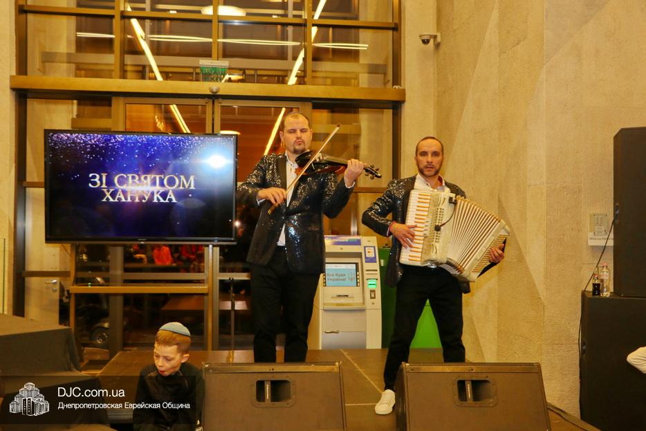 Кульминацией праздника стала еврейская концертная программа в исполнении дуэта Евгения Жилы и Кирилла Дармина с зажигательными хасидскими танцами и вкусными ханукальными пончиками – кошерными суфганийот, которые были приготовлены поварами ресторана «Menorah Grand Palace» и к которым предлагались вкусные горячие напитки.