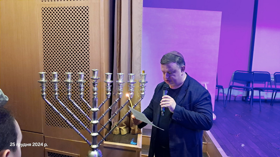 Первую свечу Хануки для еврейского лицея зажег один из родителей, Генеральный директор Еврейского медицинского центра «JMC», доктор медицинских наук, профессор Александр Родинский.