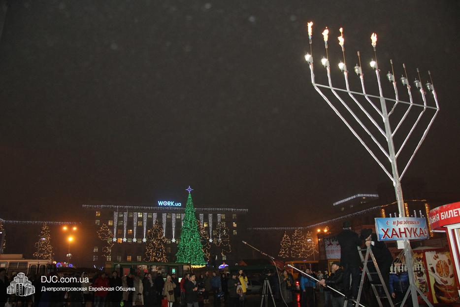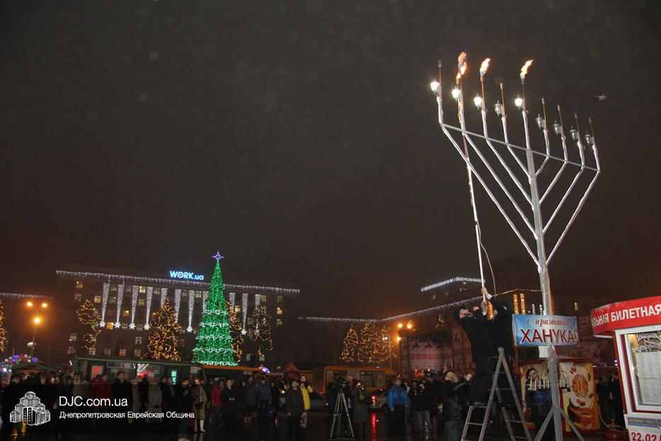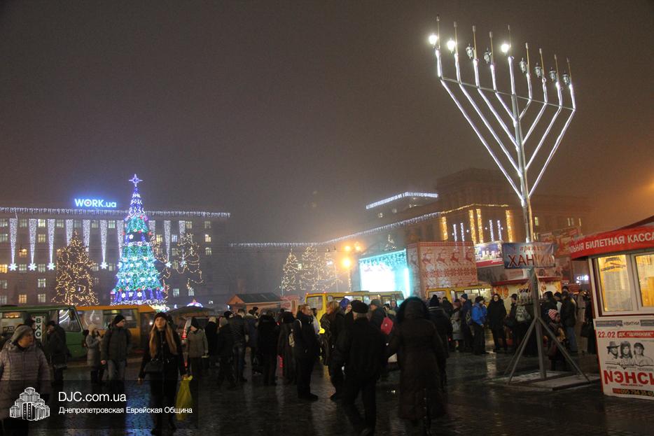На главной площади Днепра – площади Героев Майдана – состоялось торжественное празднование Хануки, с зажжением городской Ханукии и большим концертом.