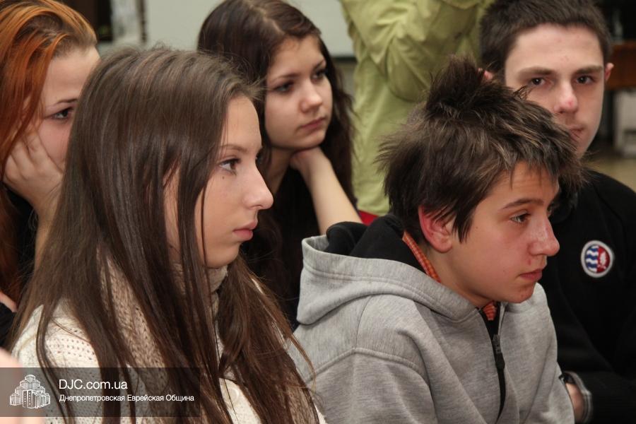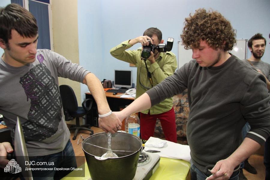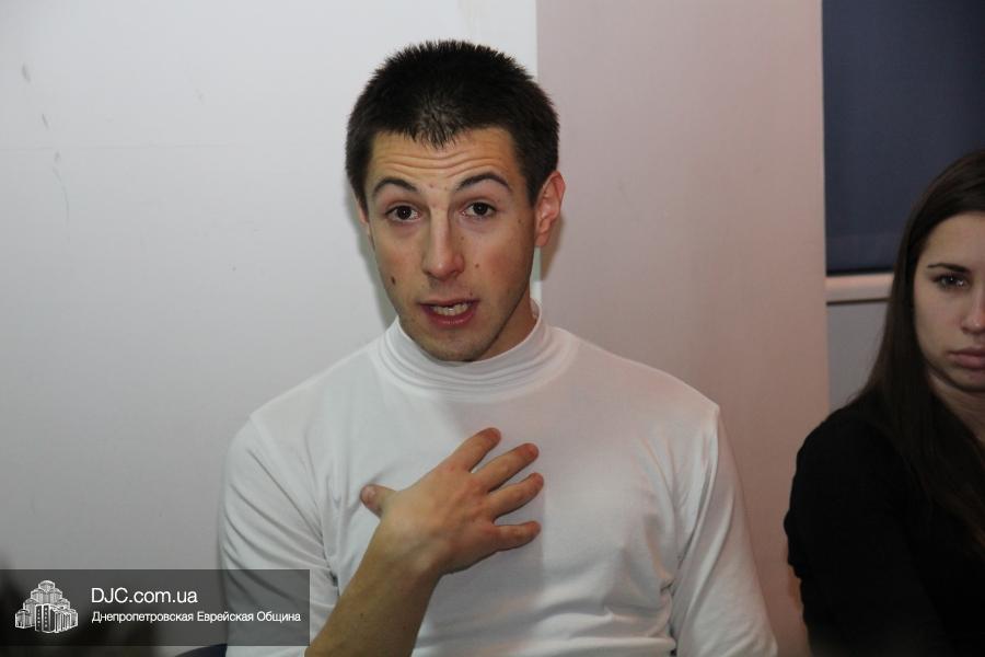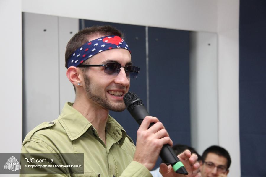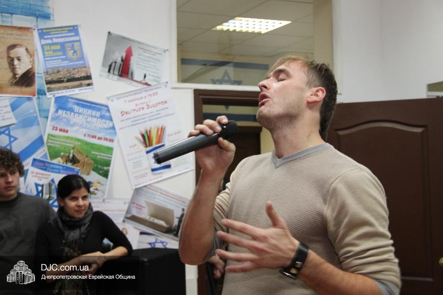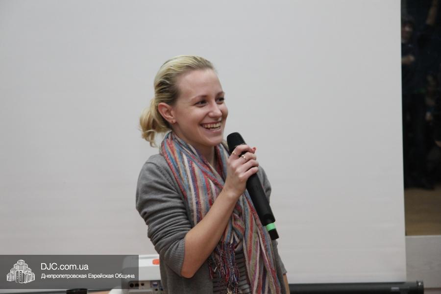 После того, как все свечи были созданы, пончики достаточно подрумянились и промаслились, все собрались в большом зале для общего мероприятия. Нели Шульман, не сдерживая эмоций, рассказала о грядущих в самом ближайшем будущем изменениях и выразила надежду, что обязательно очень надеется на встречу с каждым из тех, кто находится сейчас в зале. В завершение она представила того кто будет теперь курировать деятельность Израильского Центра из Киева — второго секретаря Посольства государства Израиль в Украине Давида Мамиствалова, который тепло поприветствовал собравшихся ребят, пообещав продолжать все культурные и академические программы, работать со сложившимся коллективом и обеспечить не только не сокращение деятельности, но и наоборот ее расцвет.