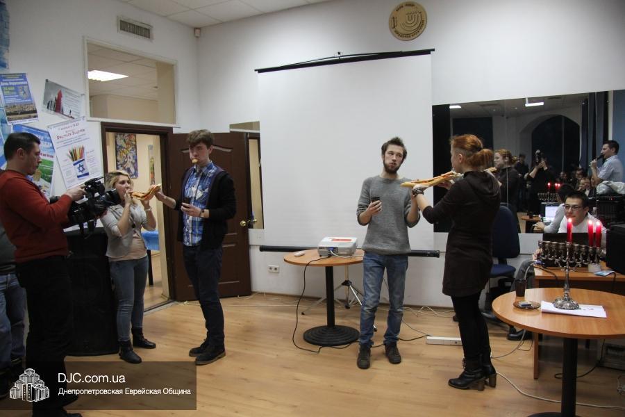 Центр Культуры Израиля организовал студенческую ханукальную вечеринку на своей территории, прервав многолетнюю традицию проводить большие мероприятия для молодежи в ночных клубах и на других внешних площадках. Нели Шульман, второй секретарь Посольства государства Израиль в Украине, завершающая свою каденцию в должности директора Центра Культуры Израиля в Днепропетровске, подчеркнула, что это было концептуальное решение, ибо Ханука праздник домашний, а все участники программ ИЦК стали большой семьей, к тому же это последняя возможность встретиться в этих стенах и в этом формате работы Центра, вспомнить то, что было раньше и сказать друг другу то, что надо сказать.