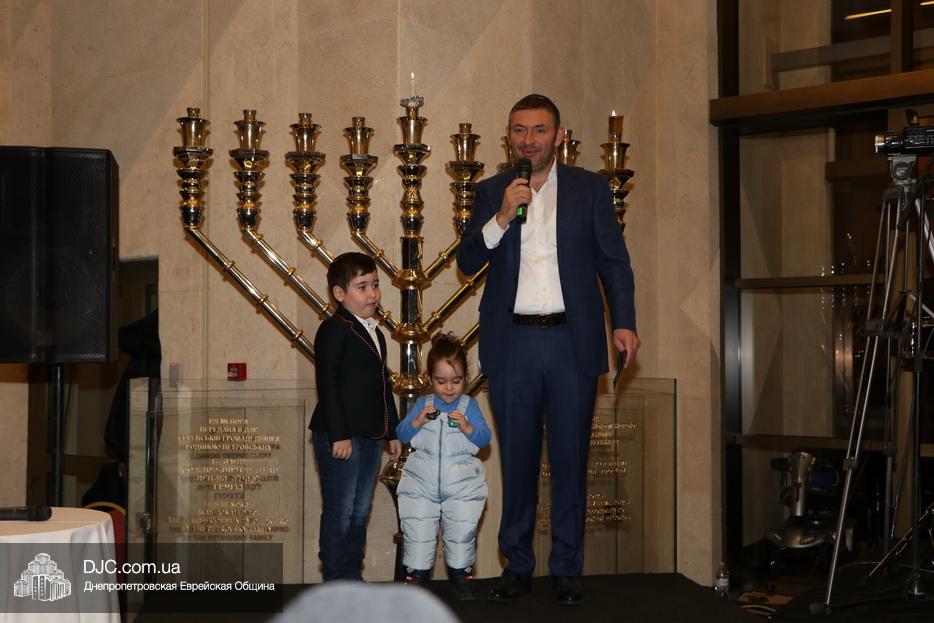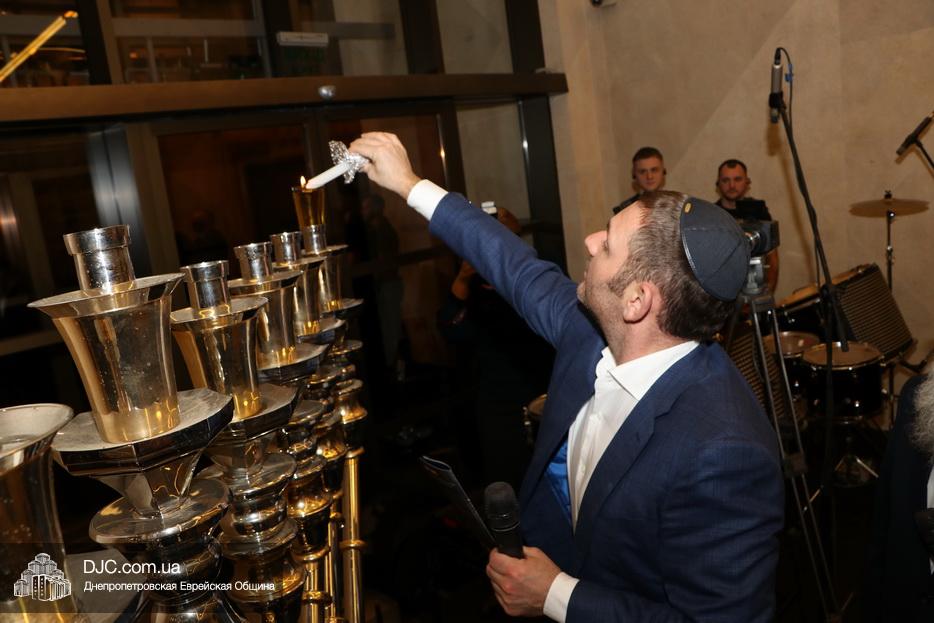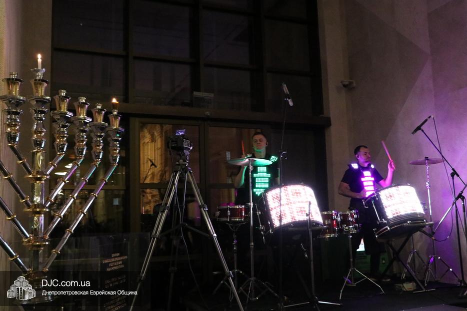 После произнесения соответствующих благословений и зажжения свечей, ведущий церемонии Шломо Терешкевич пригласил дать ханукальный урок председателя правления «Шиурей Тора Любавич» Дана Макогона, а затем выступил дуэт барабанщиков «Drum Power show».
