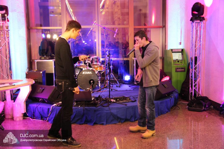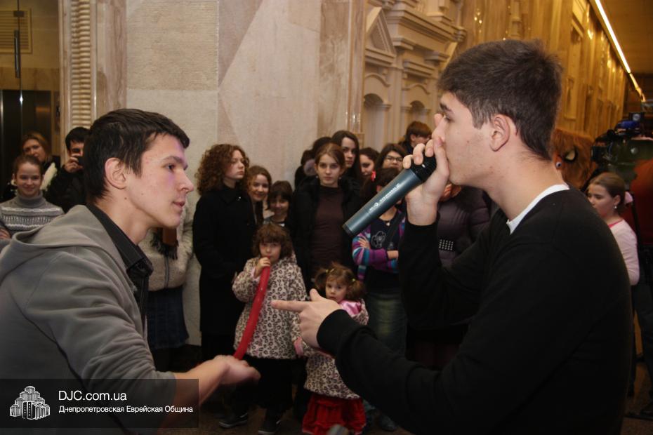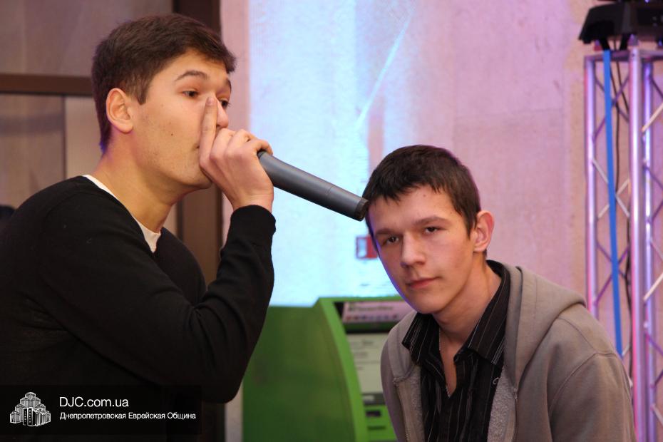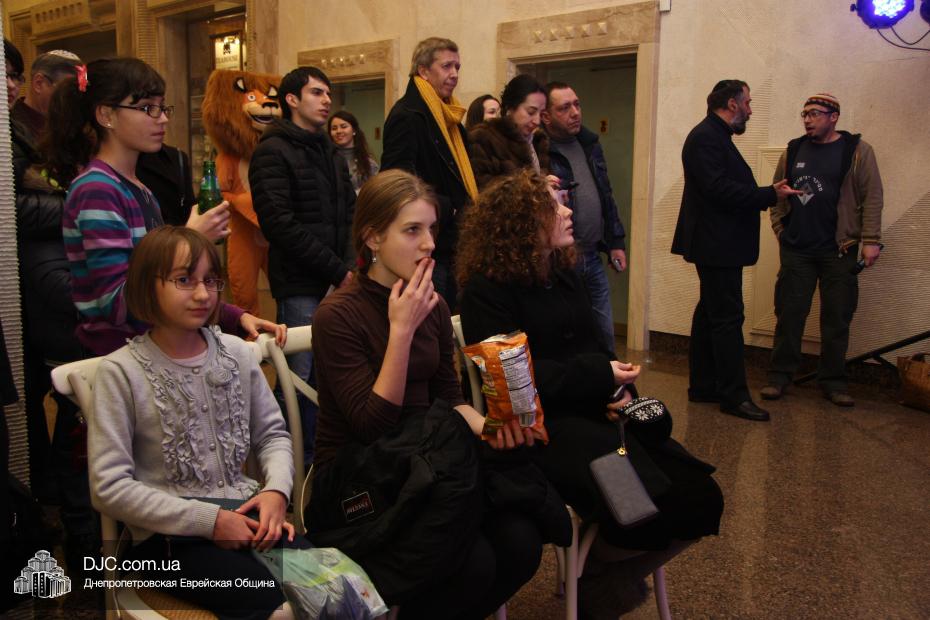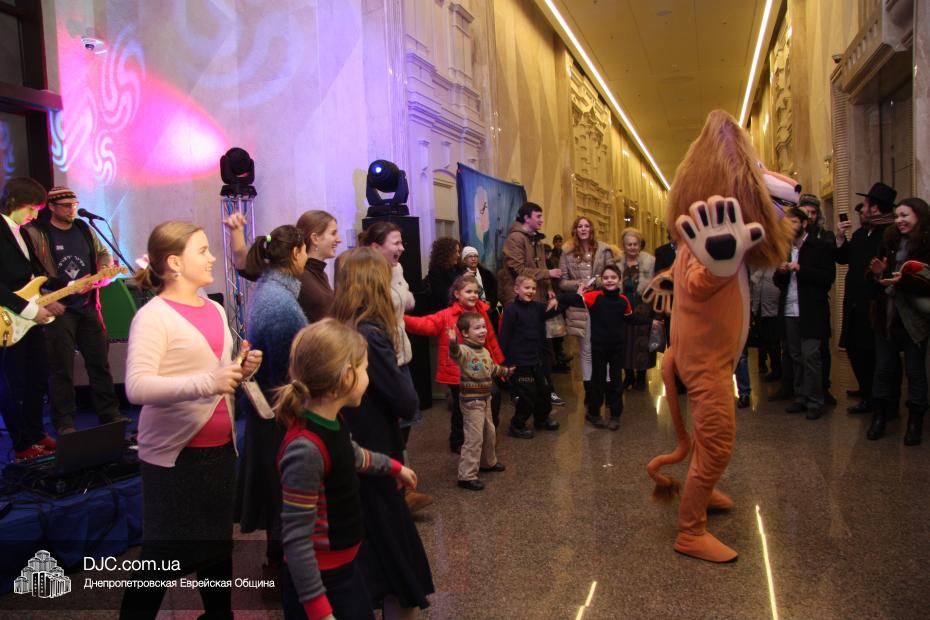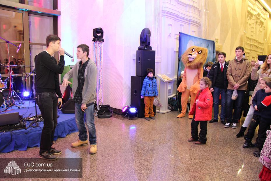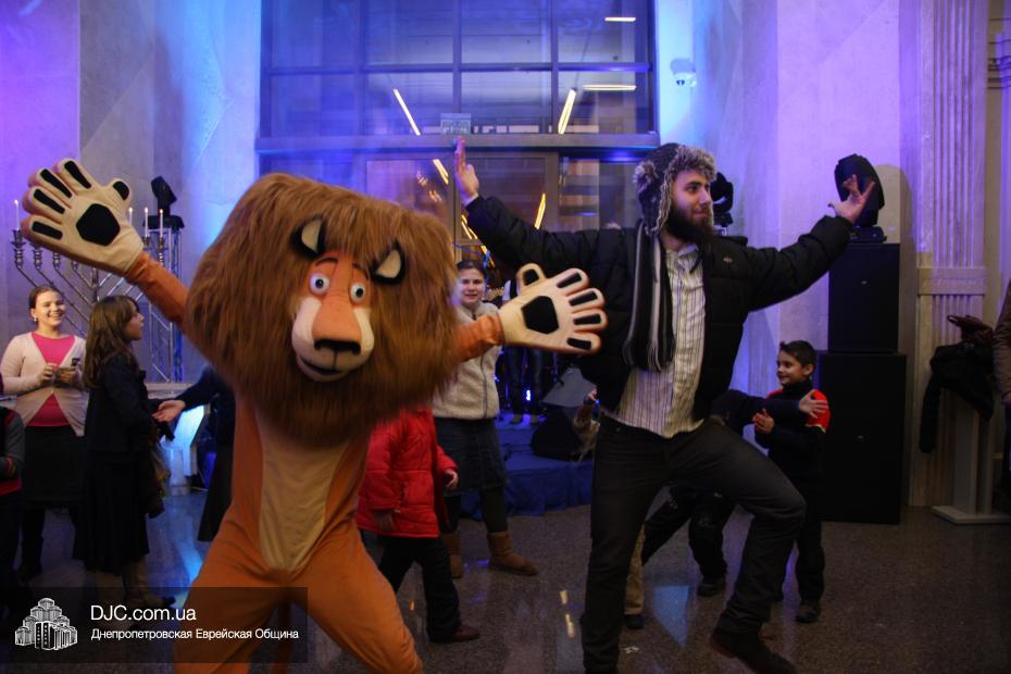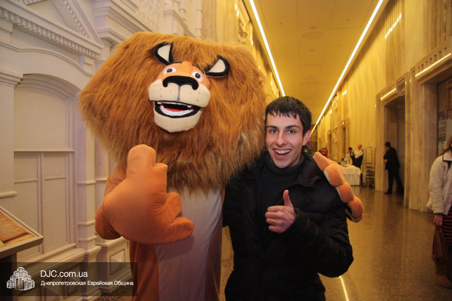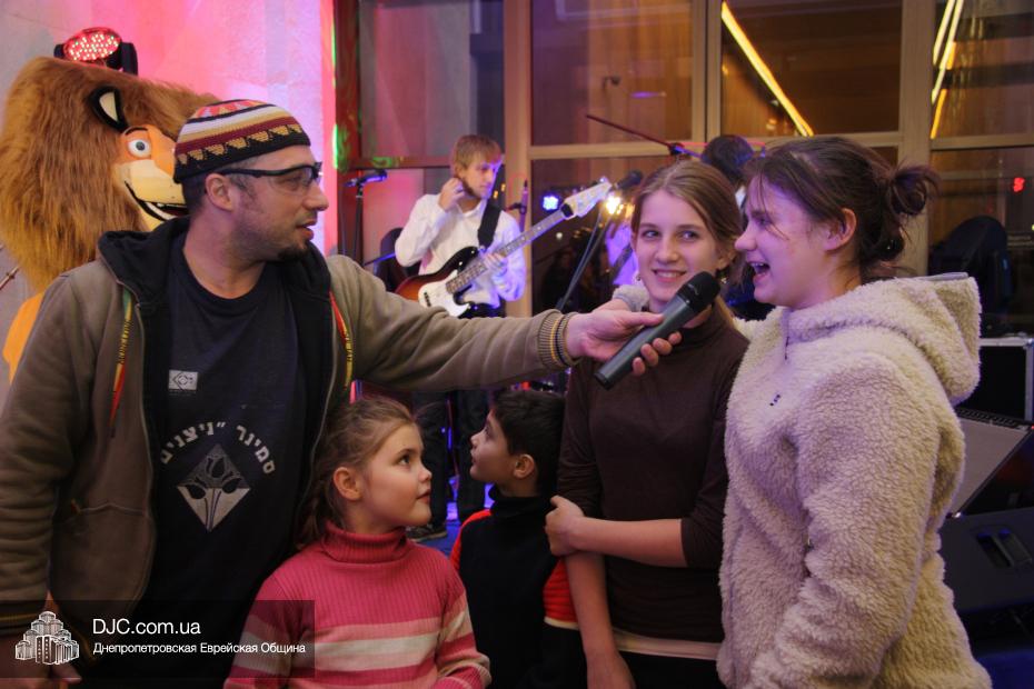 Следующим отделением стали разнообразные конкурсы, которые для детей и молодежи провел бессменный ведущий всех вечеров «Хануки в Меноре» Павел Дацковский, его помощником в проведении некоторых конкурсов стал персонаж популярного мультфильм «Мадагаскар».