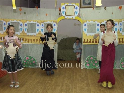Затем наступило время главного ханукального события – ханукального спектакля, основой для которого послужила сказка «Теремок», разумеется, сильно переделанная на еврейский манер. Автором современной редакции «Теремка» стала Анат Пикельная, она же выступила как режиссер спектакля, а к участию в постановке привлекла всех воспитанниц, от самых маленьких до самых больших.