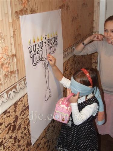 Перед ханукальным представлением был организован конкурс «Укрась пончик», и все желающие наполняли пончики цветными сахарными начинками и шоколадом при помощи кондитерских шприцов. После этого в коридорах и комнатах пансиона было организовано множество веселых конкурсов на ловкость и смекалку, многие из заданий которых выполнить было очень непросто, попробуйте, например, сами с завязанными глазами правильно установить шамаш в ханукию.
