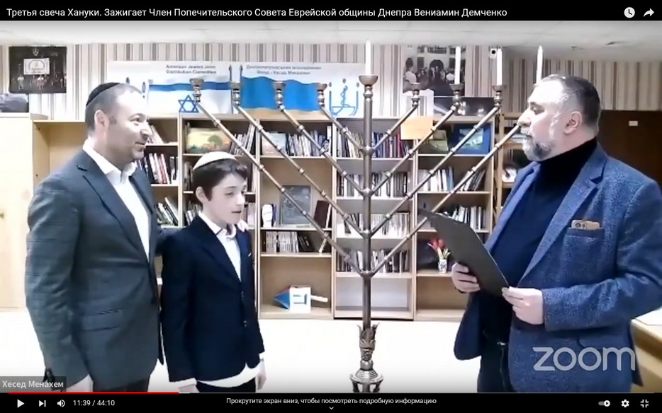«К празднику Ханука была подготовлена целая серия мероприятий, – рассказывает директор клуба «Фрейлахс» Виктория Опаленко, – например, благодаря помощи «Джоинт» и «Claims Conference», некоторые категории наших подопечных получили подарки к празднику – ханукии со свечами, еврейские календари, баночку с арахисовым маслом и набор термобелья. Для участников наших клубных программ, а также программ «Дневной центр», «Заботливая связь» и ряда других, мы организовали ханукальный марафон онлайн – каждый вечер Хануки к нам приходили гости, зажигали свечи и мы транслировали это мероприятие в наших Zoom-конференциях и на нашем канале в Youtube. А после зажжения мы проводили время возле горящих свечей в творческой атмосфере – читали стихи, пели песни и слушали замечательные музыкальные номера, которые нам подарили учащиеся шестой музыкальной школы имени Владимира Скуратовского».