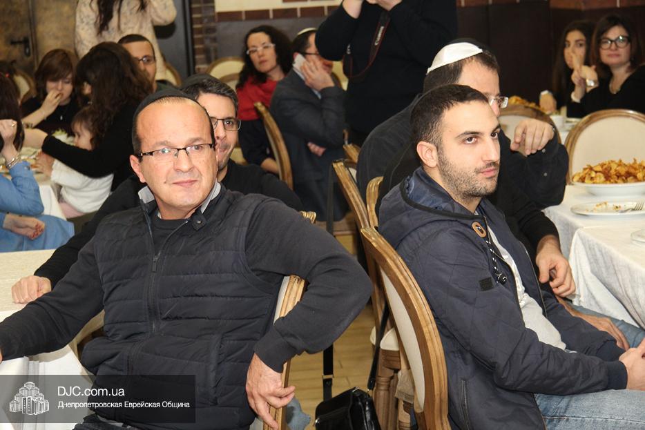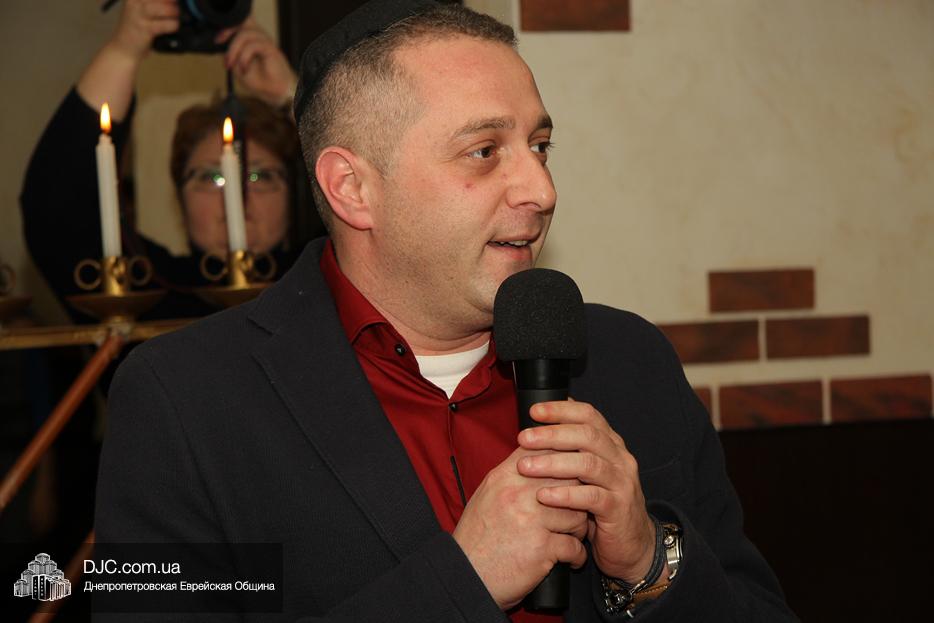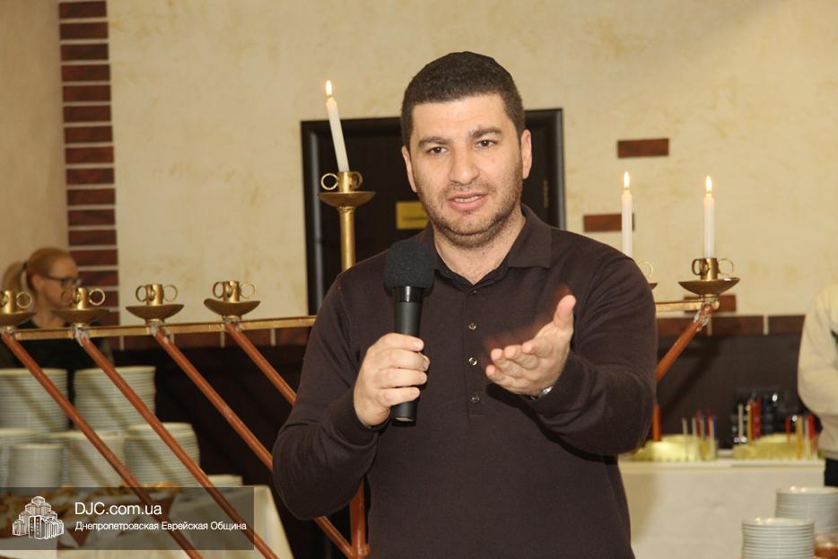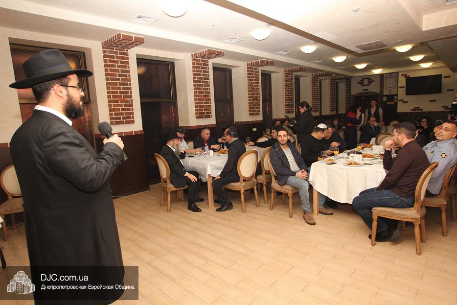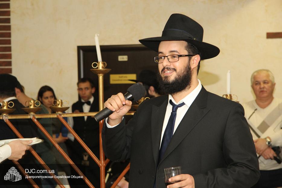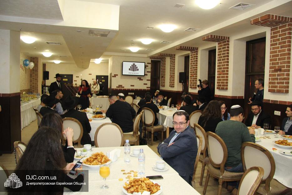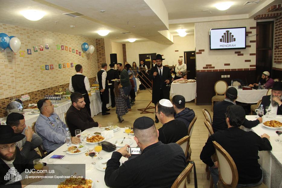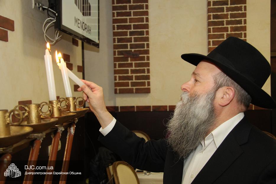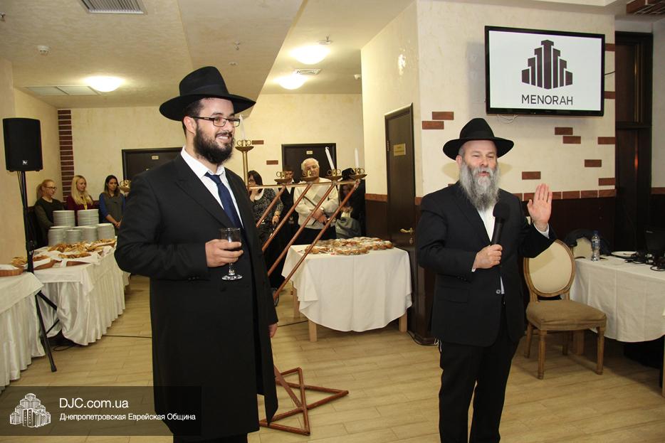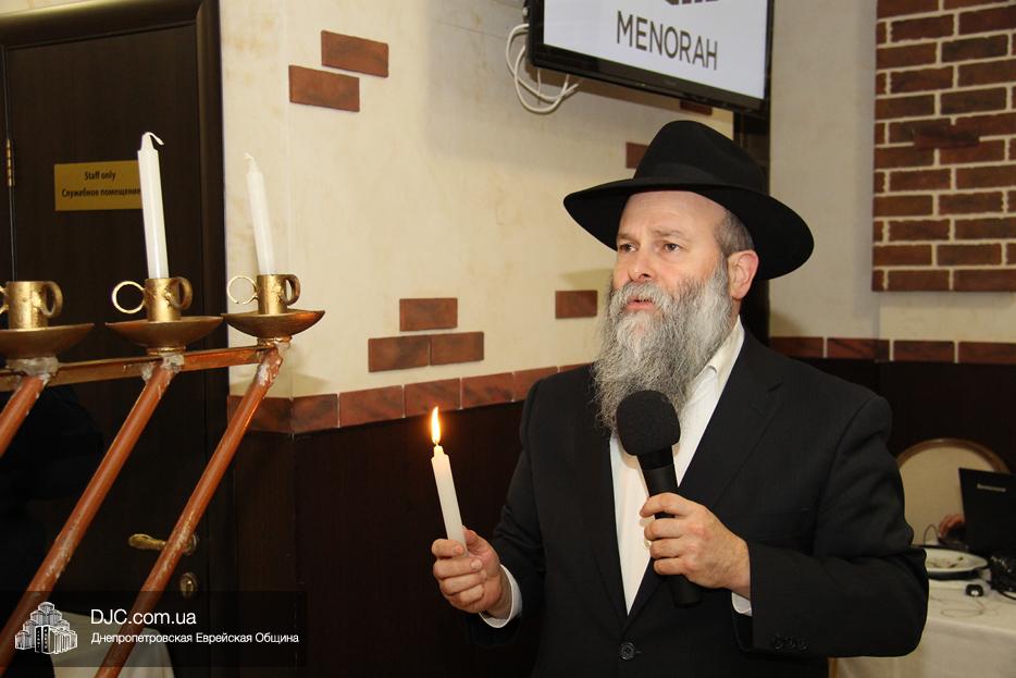 Мероприятие прошло в зале «Menorah cafe». Тепло поздравил присутствующих с праздником, и, прочитав благословения, зажег свечи на ханукие Главный раввин Днепра и региона Шмуэль Каминецкий. Затем собравшихся с праздником поздравили второй секретарь Посольства государства Израиль в Украине, директор Израильского Культурного Центра в Днепре Вячеслав Смоткин; Глава представительства и руководитель филиала «Сохнут-Украина» в Днепре Натали Набитовски и известный бизнесмен и активист многих программ общины Днепра Шмуэль Кацев.