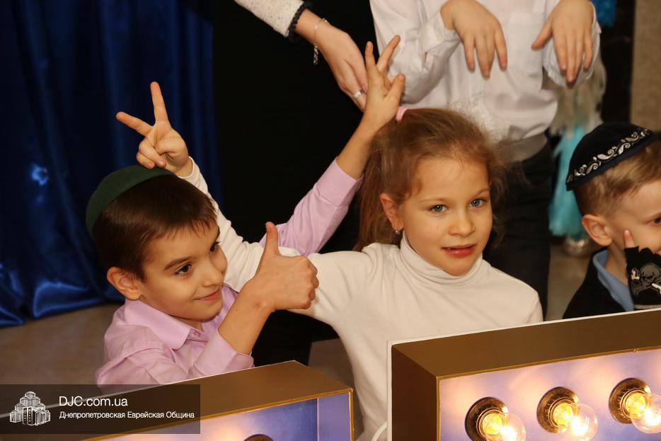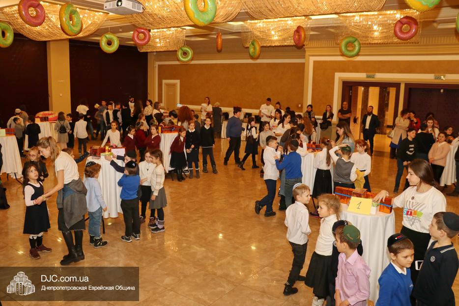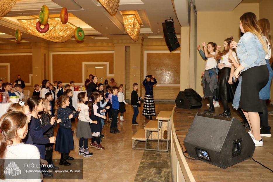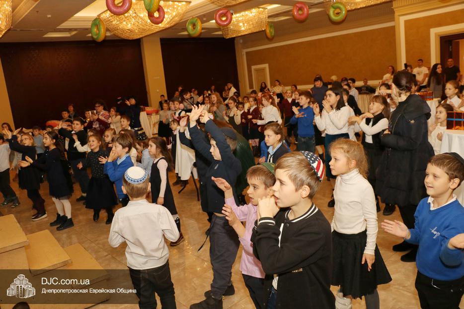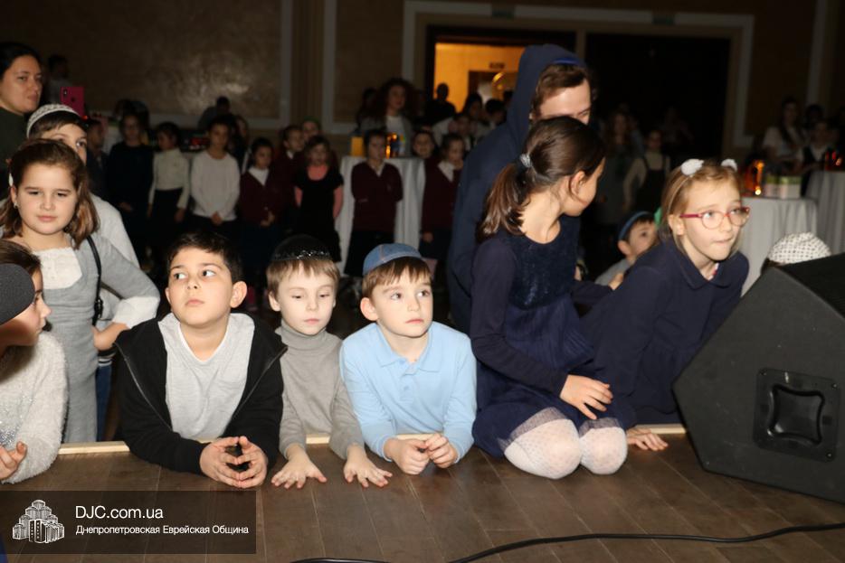 Детей тепло поздравил Глава Днепровского представительства STL Элиша Павлоцкий и зажег главную ханукию на сцене. Затем, как рассказала нашему сайту Наоми Куц, дети смогли угоститься праздничными пончиками.