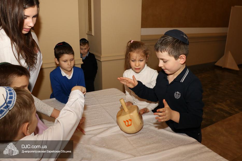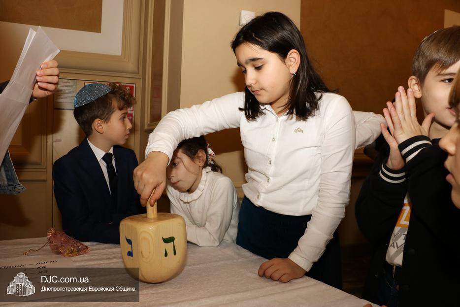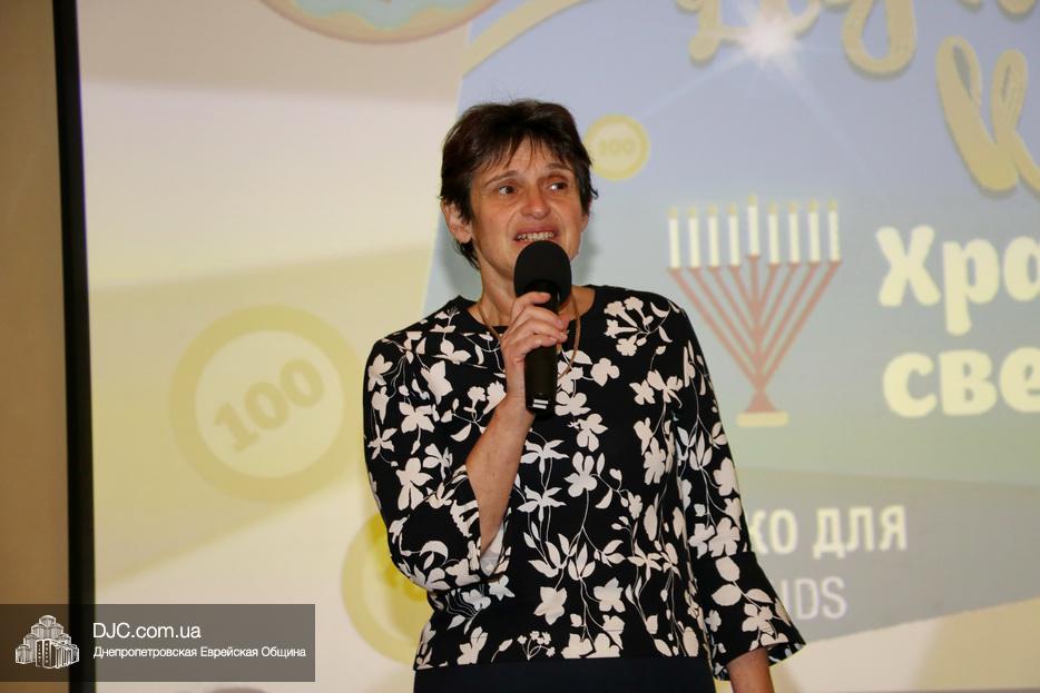 Вначале детей тепло поздравила с наступившим праздником Ханука директор еврейской школы Днепра Елена Краснова, а затем вниманию детей был предложен ханукальный мультфильм.