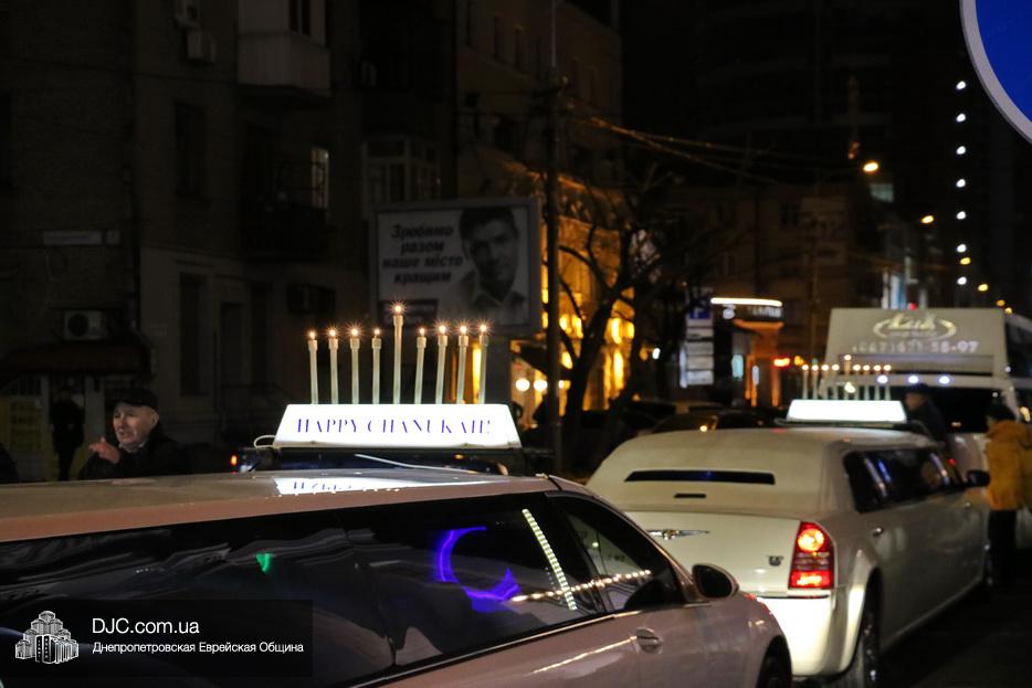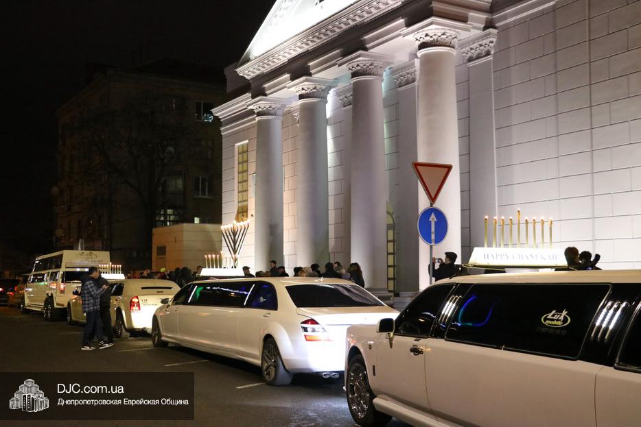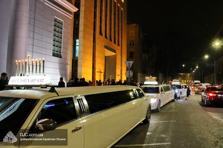 В завершающий вечер Хануки 5780, в вечер, когда зажигаются все восемь свечей праздника, в Днепре состоялся большой традиционный ханукальный парад лимузинов, к которому присоединились многие члены общины, украсившие свои автомобили электрическими ханукиями.